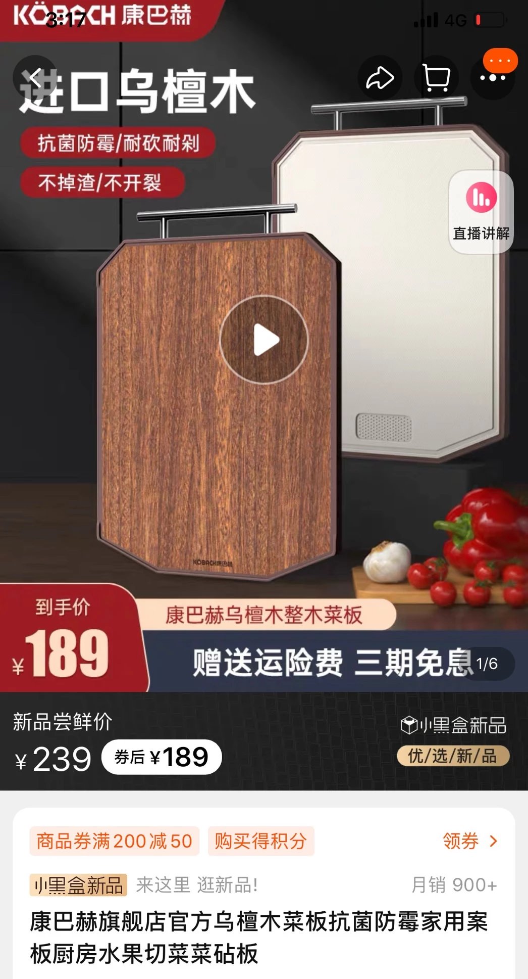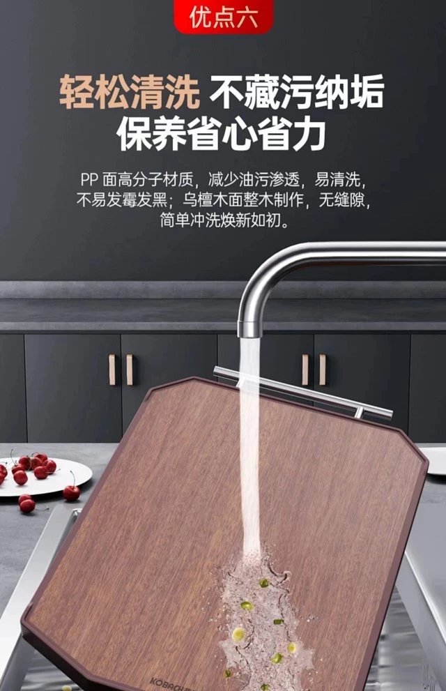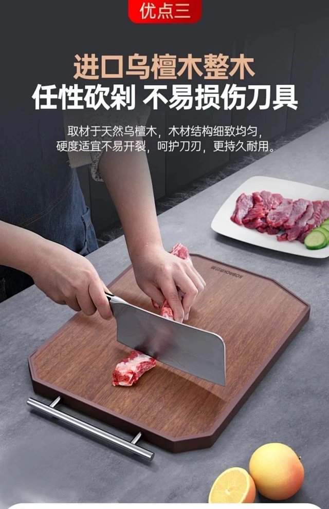 康巴赫乌檀木双面菜板 双面使用, 好用不串味,砍剁不伤刀 耐腐、耐磨、不开裂
