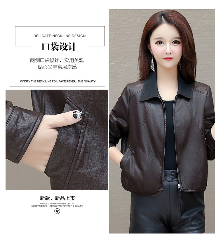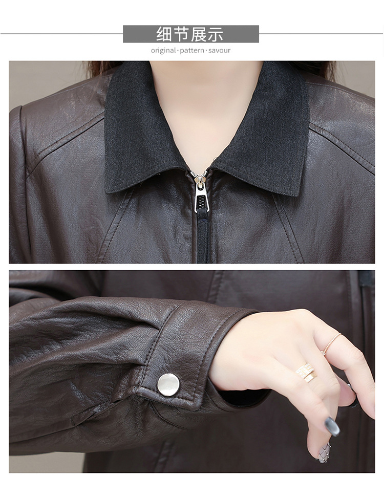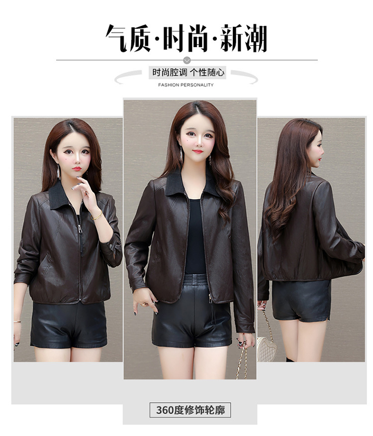 QYM SD58827-Y时尚皮衣外套洋气显瘦皮夹克拼接上衣 商品图4