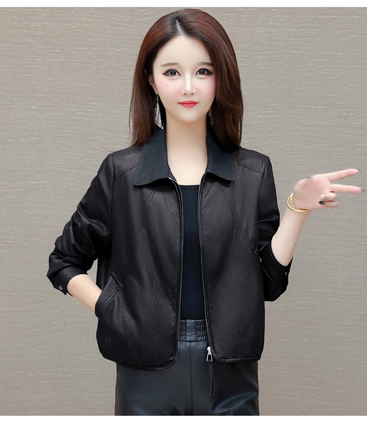 QYM SD58827-Y时尚皮衣外套洋气显瘦皮夹克拼接上衣 商品图2