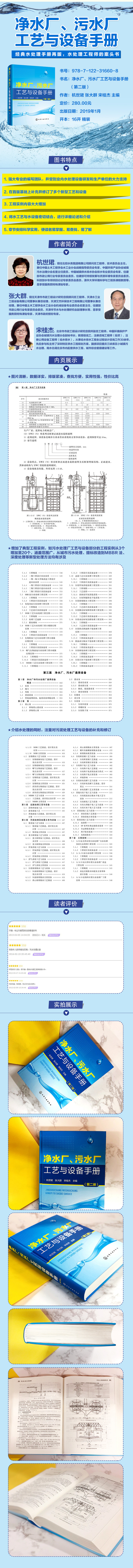 在净水厂和污水处理厂中,工艺是先导、设备是依托,工艺是龙头、设备是基础,工艺是实现总体要求的途径,设备是实现总体目标的保证。设备服从于工艺,设备为工艺服务,设备的发展,反过来又促进工艺的提高和部分新工艺的诞生,给新工艺的实现提供了机遇和路径。本书就是秉承这一思路,将水工艺与水设备两大学科密切结合在一起进行论述和介绍。将几十种不同设计流程、不同的建(构)筑物所采用的工艺描述、计算与设备选型、校核全部融合起来,又分别放在按序固定的章节中。既可使读者做到易掌握、易查找、易了解工艺设备的结合状况,又易通晓全厂的技术分布。