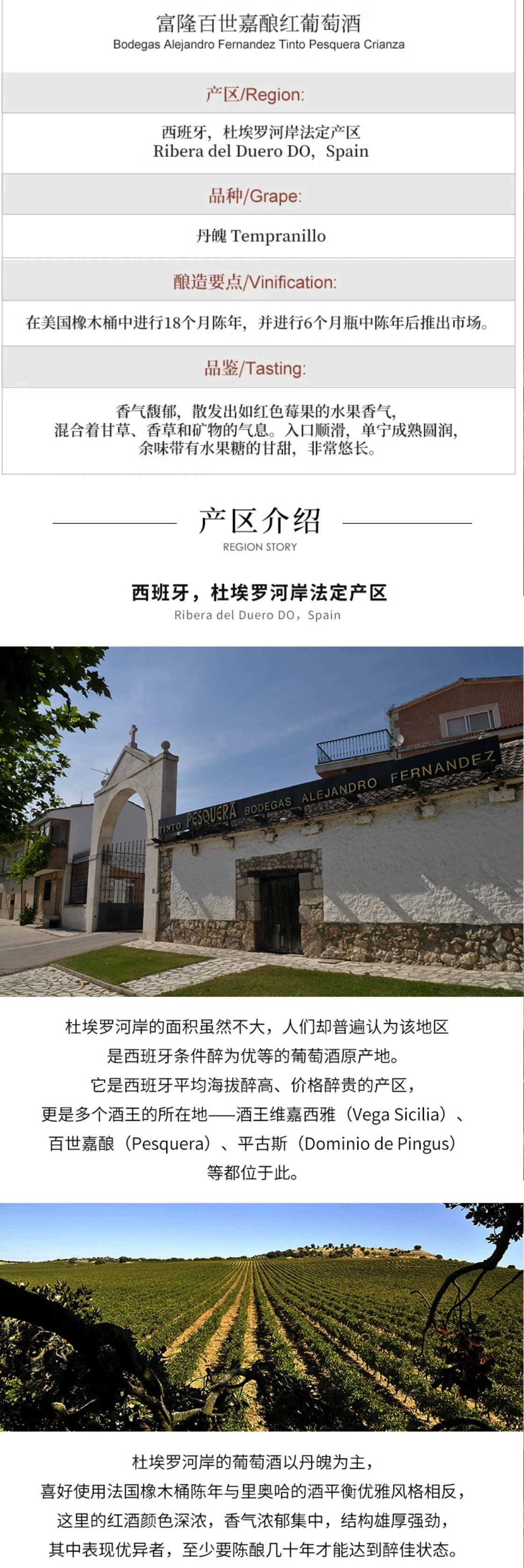 富隆百世嘉酿红葡萄酒Bodegas Alejandro Fernández Ribera del Duero Tinto Pesquera