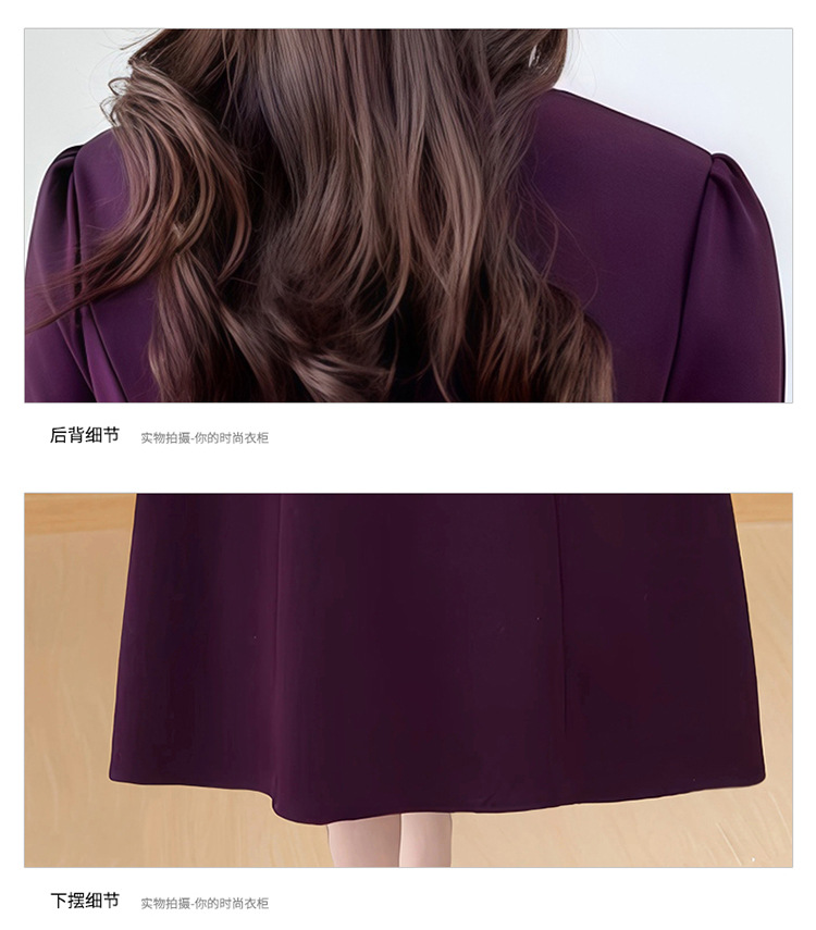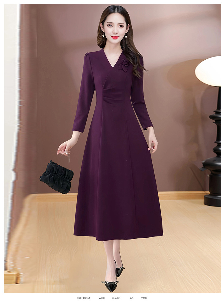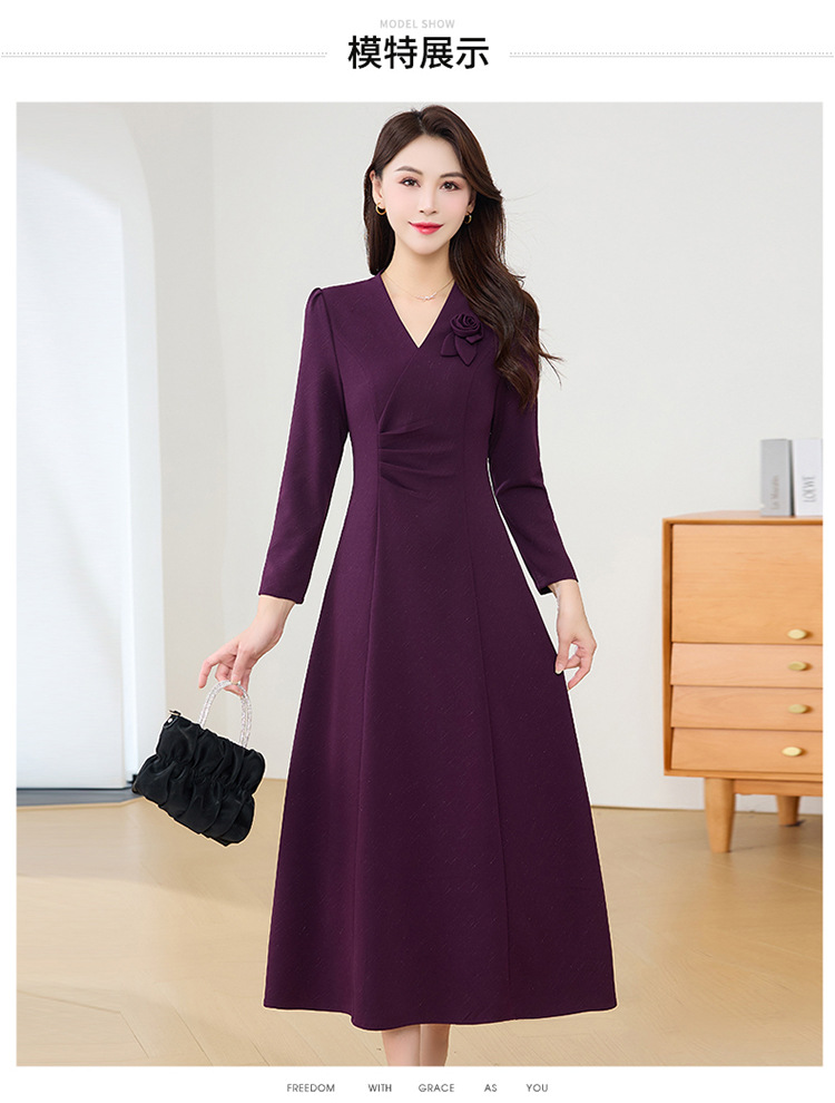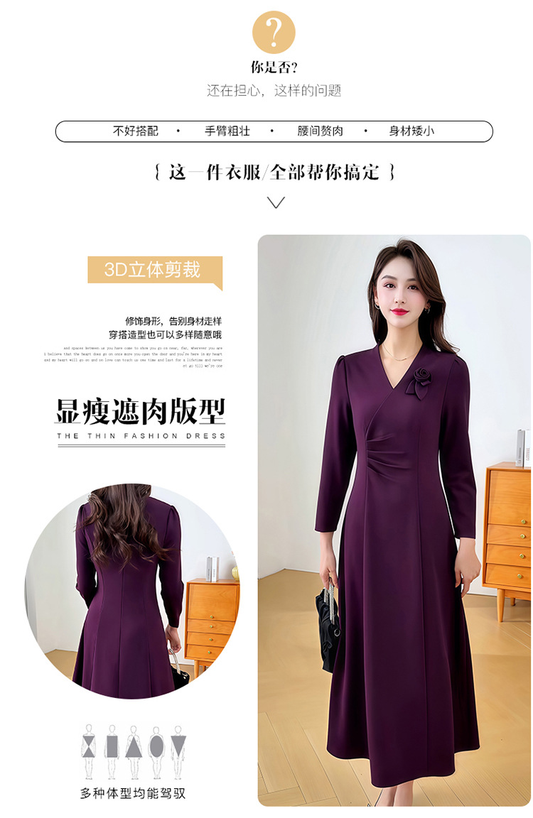 QYMXYKL-26805-Y连衣裙女2025年新款中年妈妈装长袖V领中长款紫色A字裙 商品图4