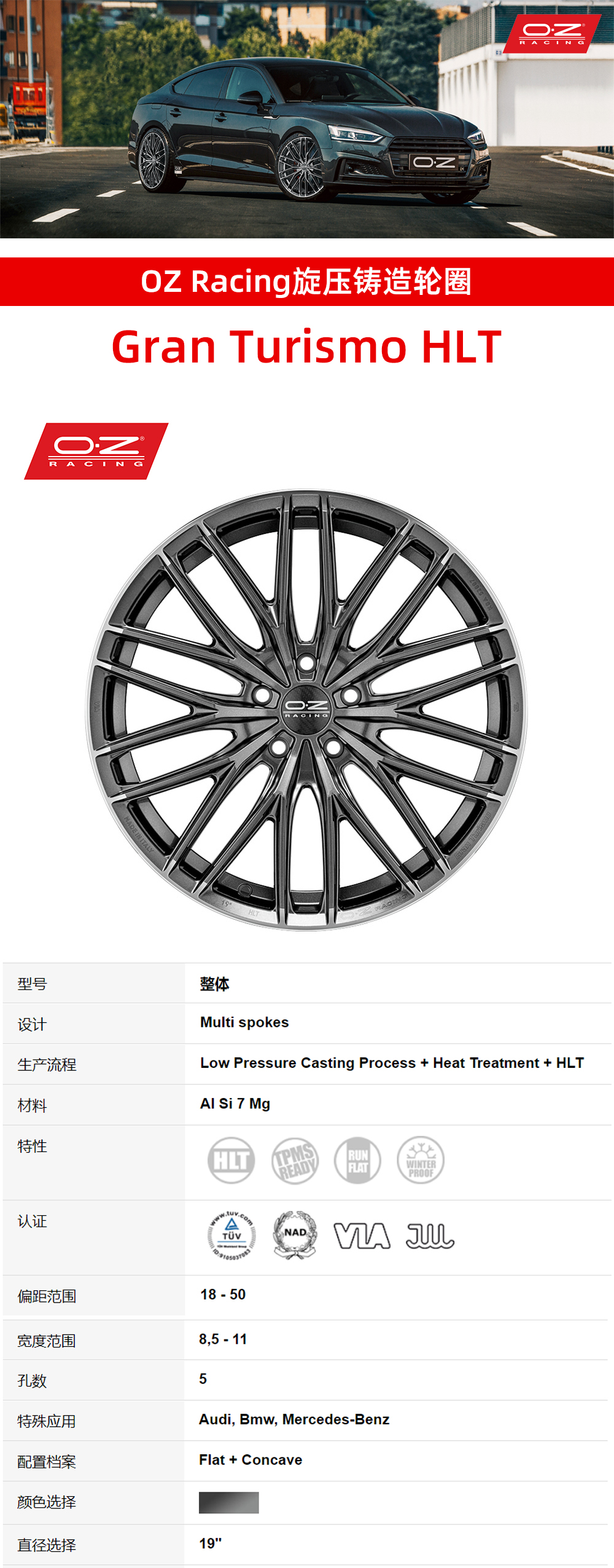 意大利进口OZ Racing旋压铸造 Gran Turismo HLT 19/20寸