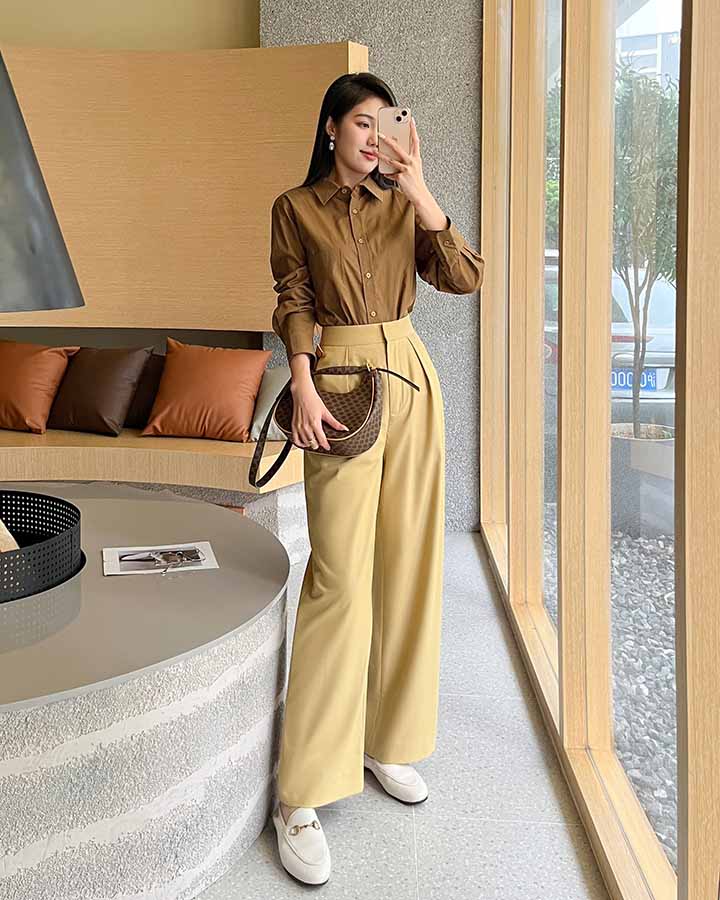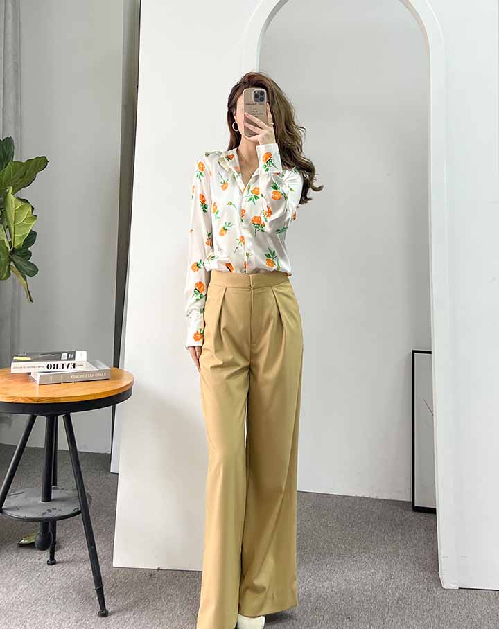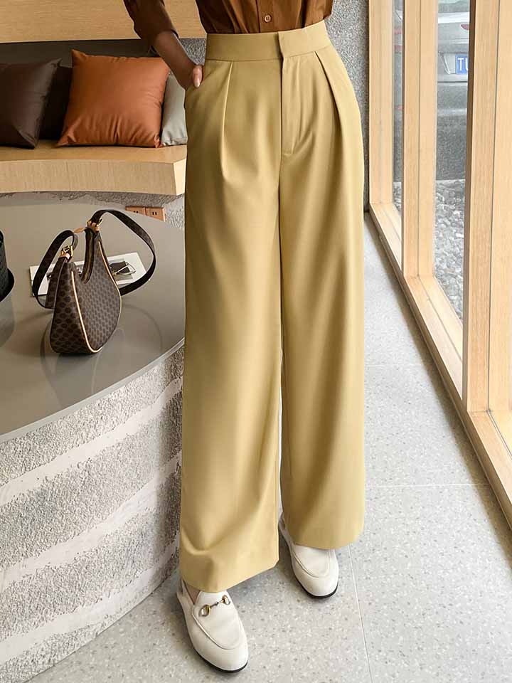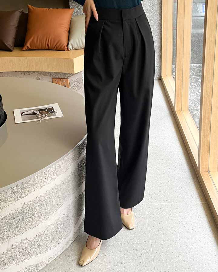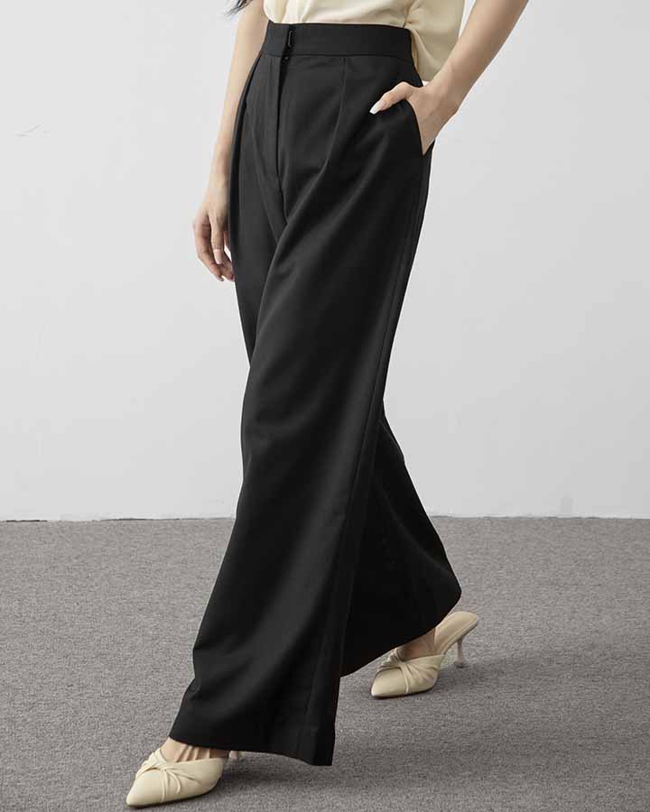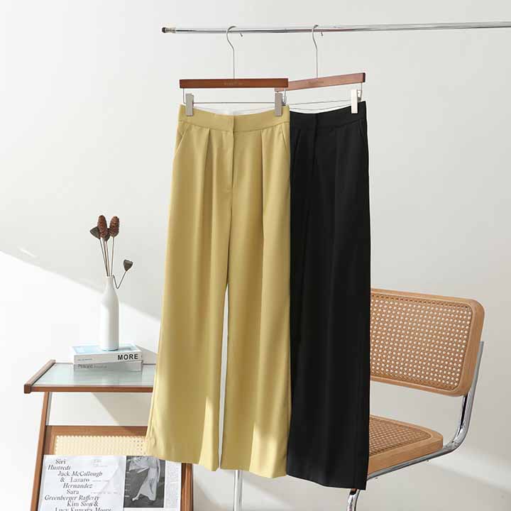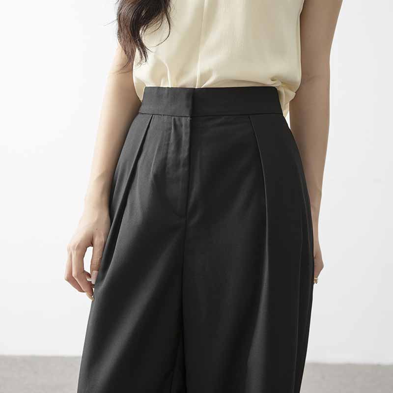 顺丰包邮洛诗琳85729春季新款立裁高腰显瘦褶皱阔腿西装裤11180