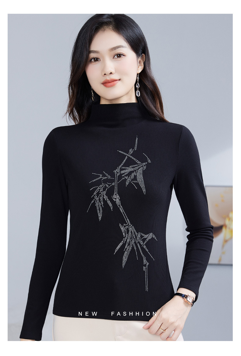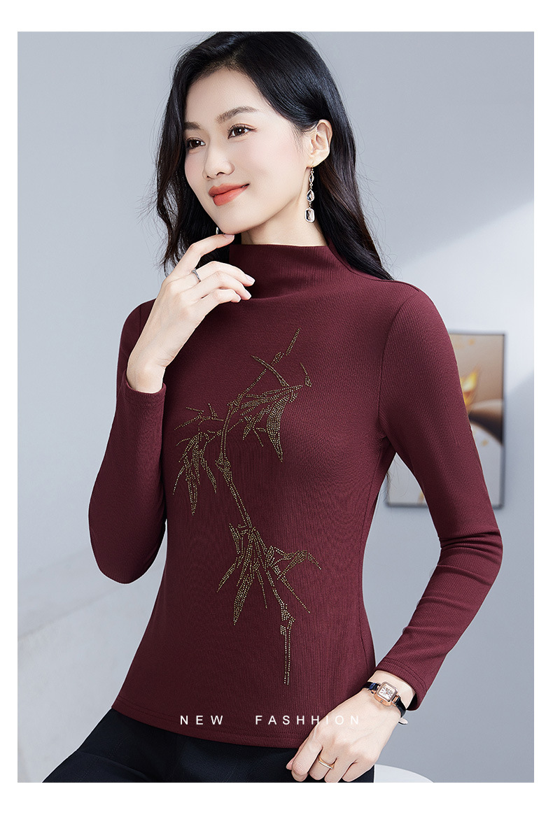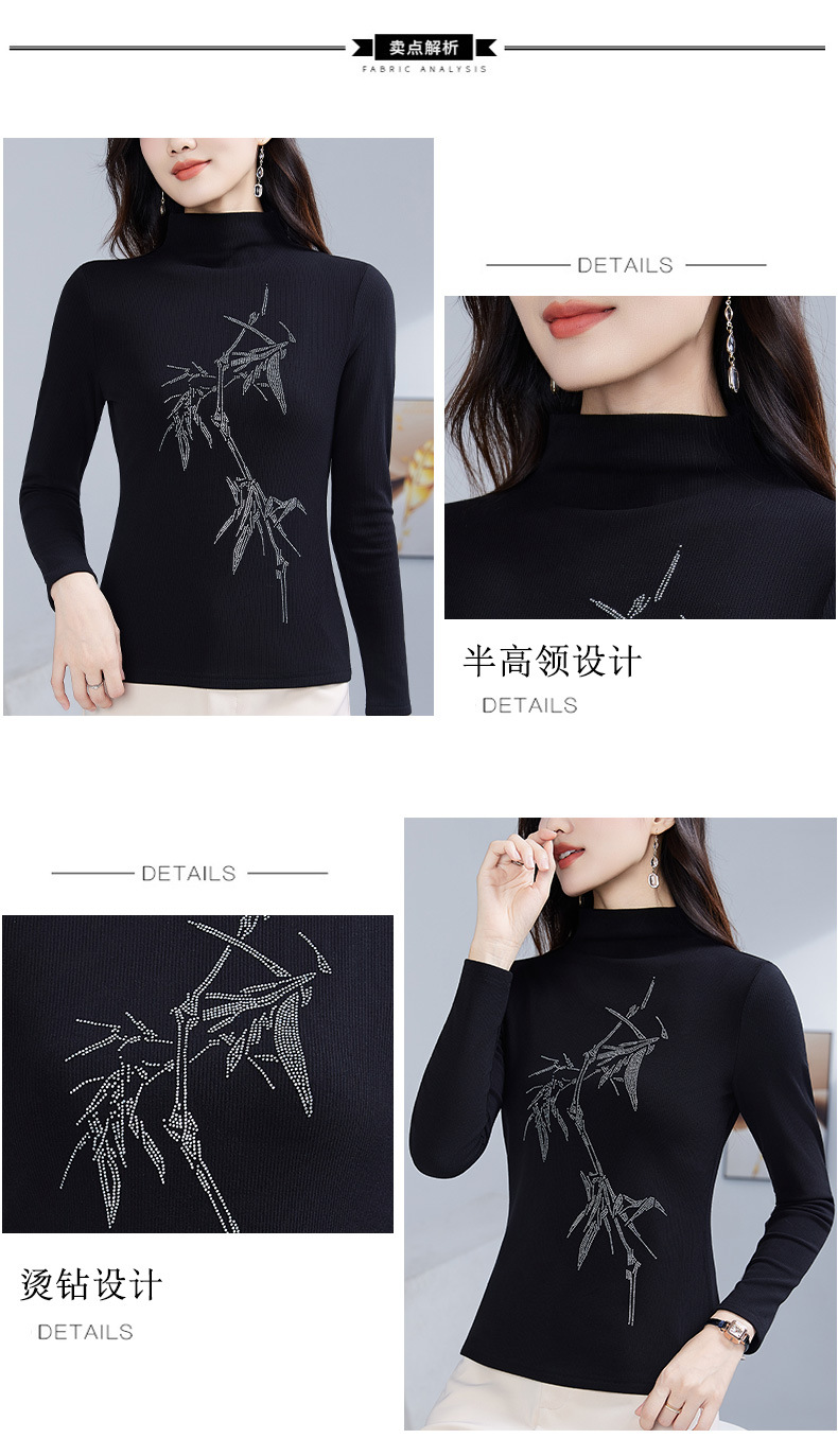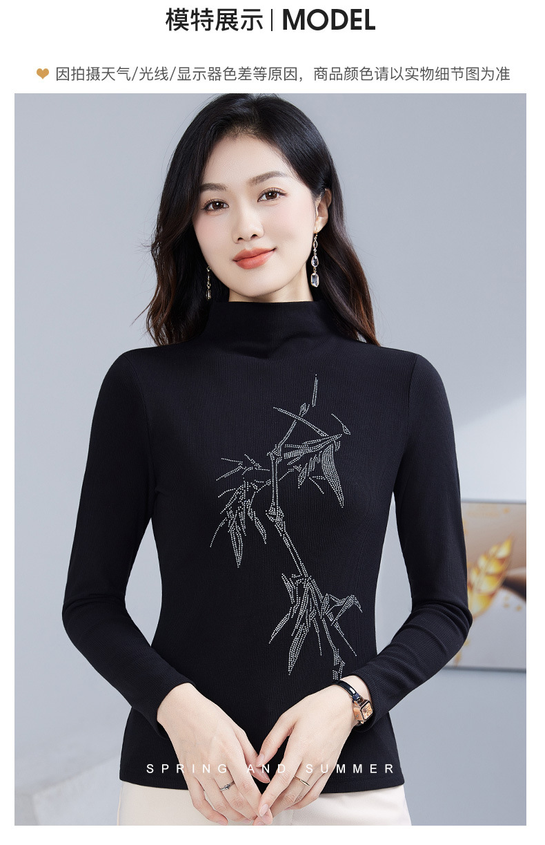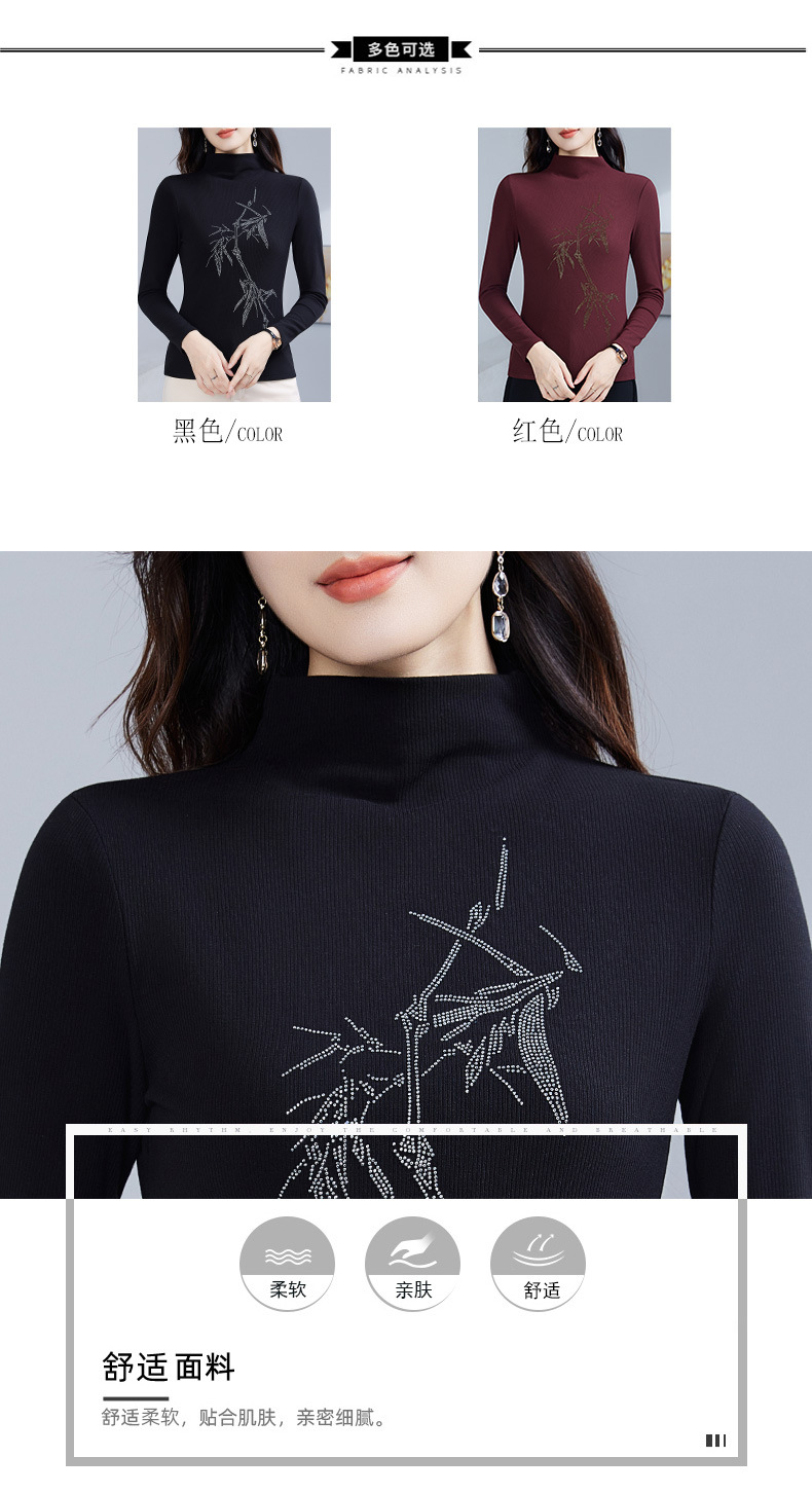 丁摩 加绒保暖打底衫女洋气镶钻半高领一体绒T恤LR58127