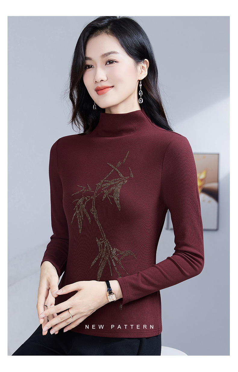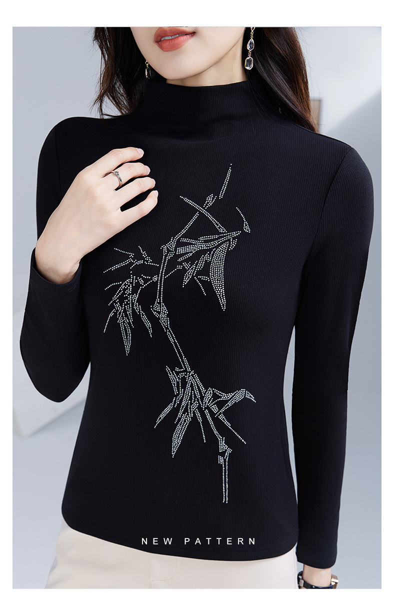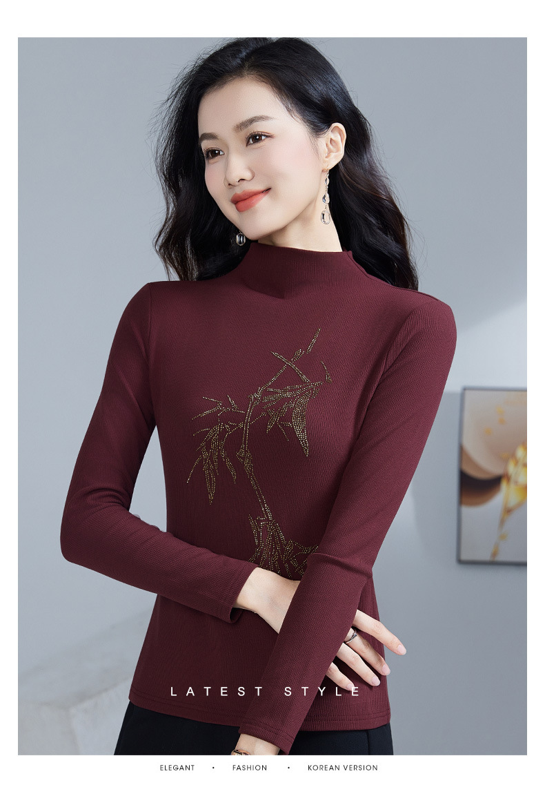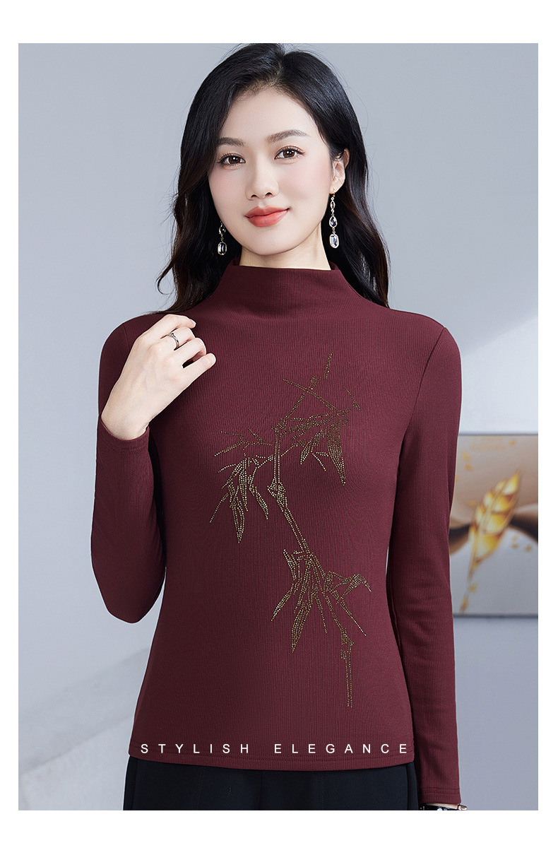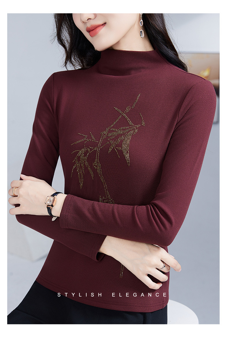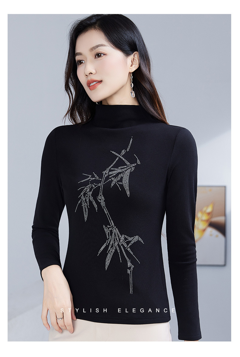 丁摩 加绒保暖打底衫女洋气镶钻半高领一体绒T恤LR58127