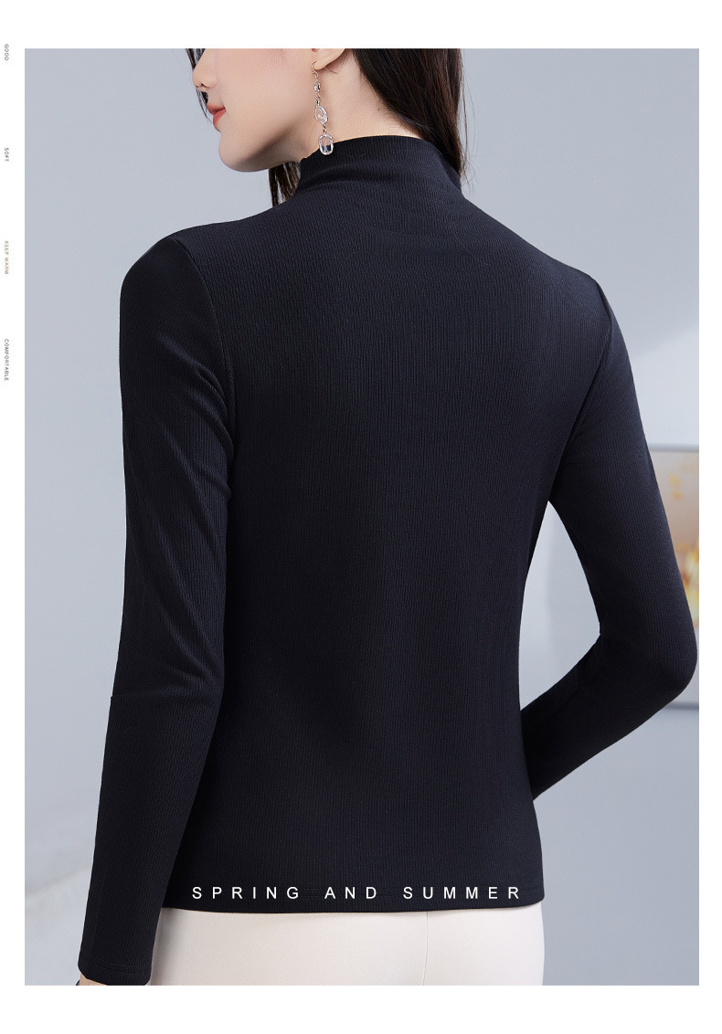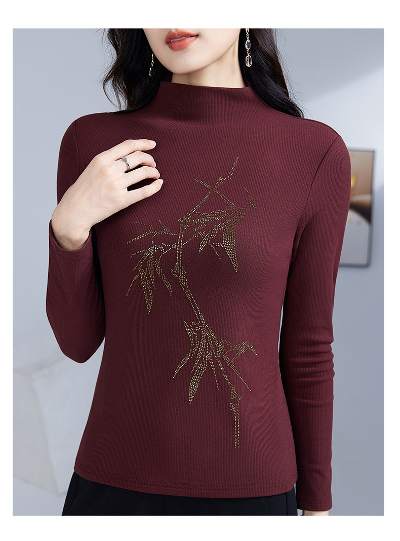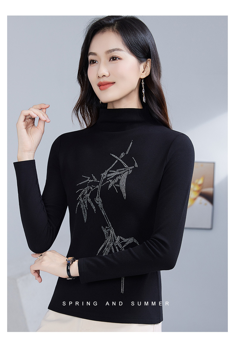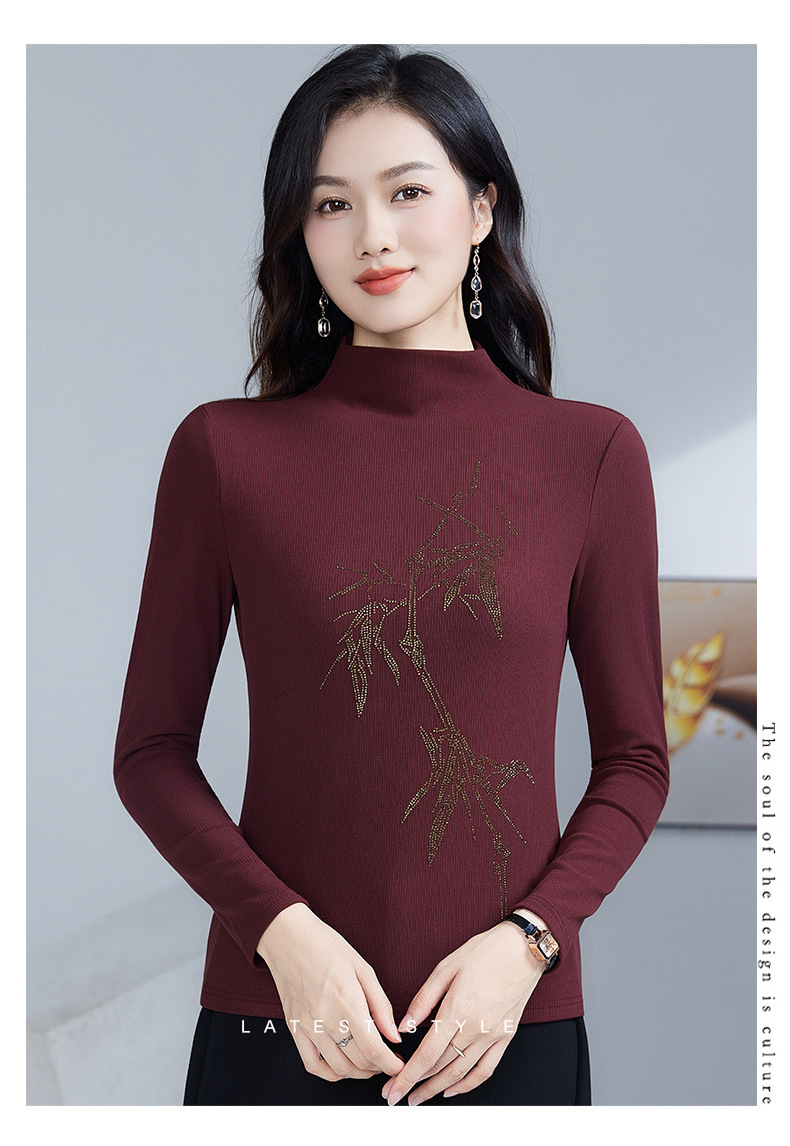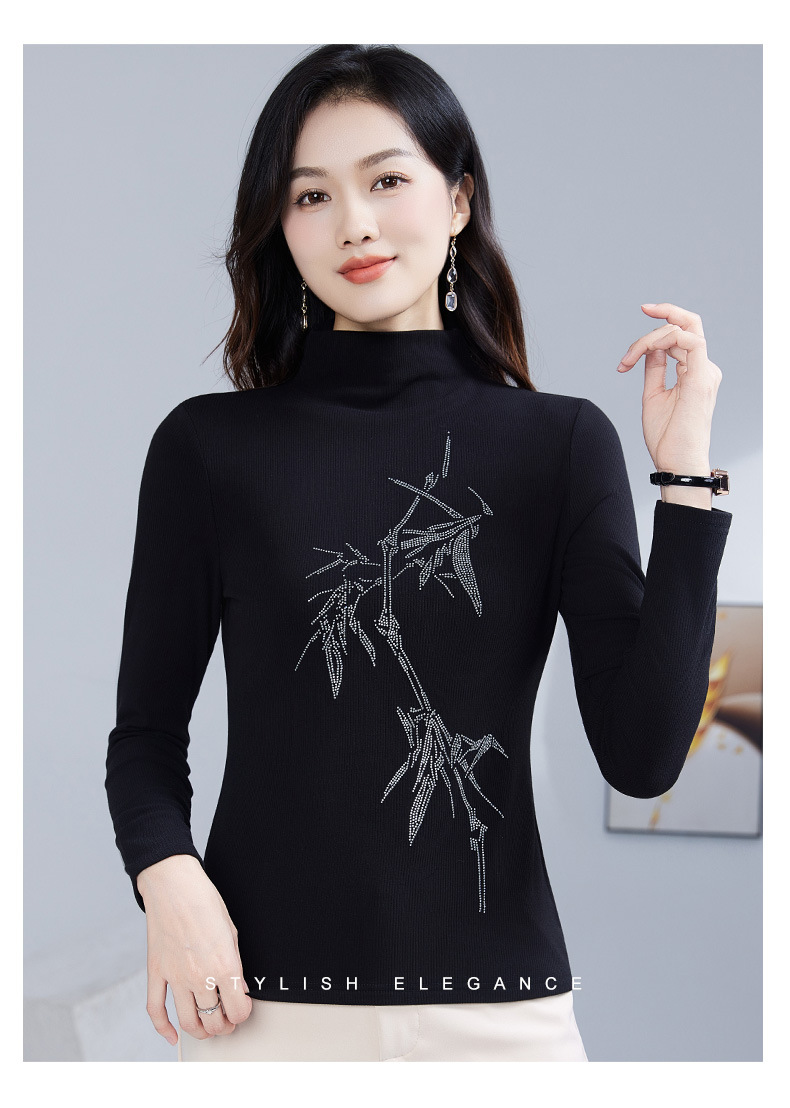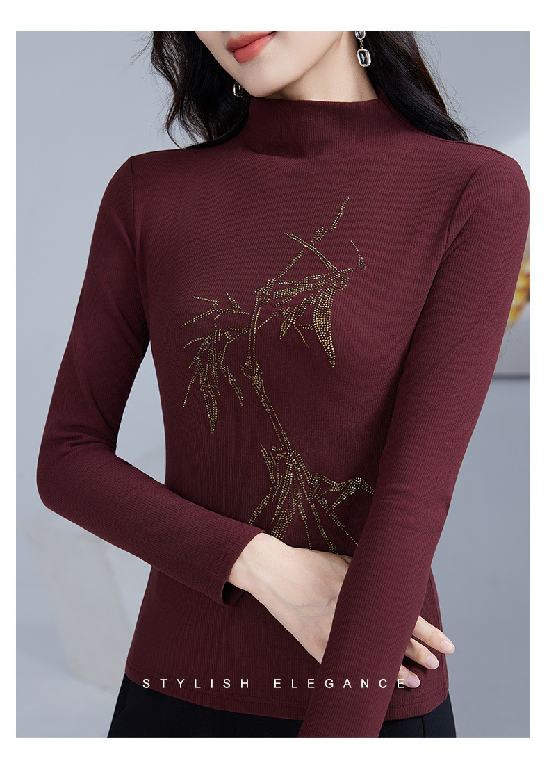 丁摩 加绒保暖打底衫女洋气镶钻半高领一体绒T恤LR58127