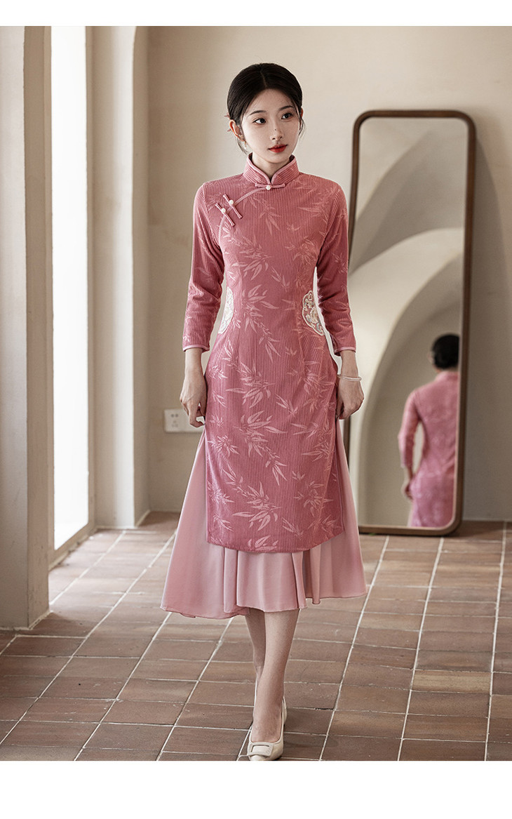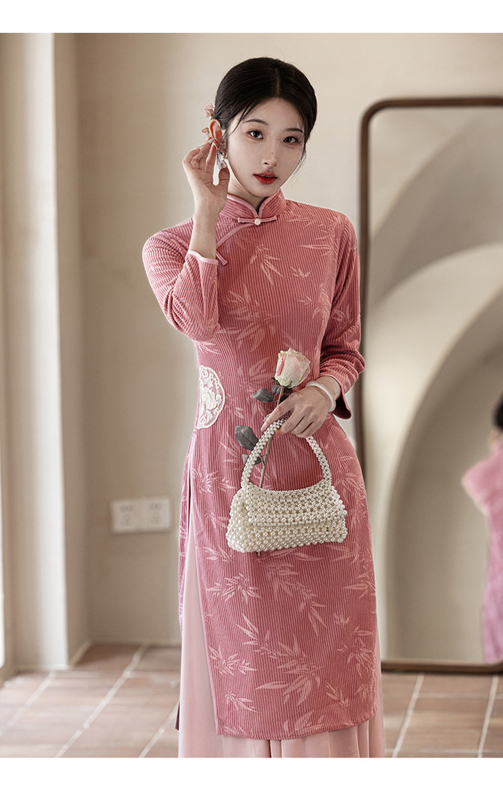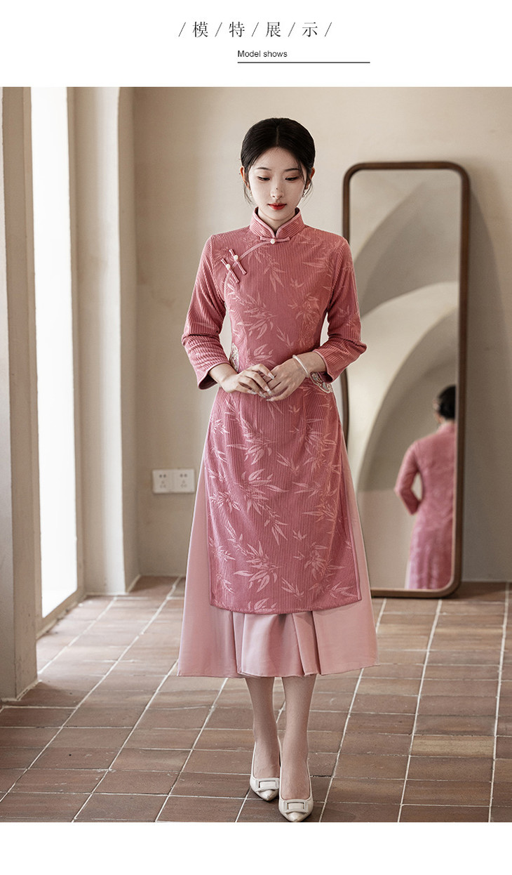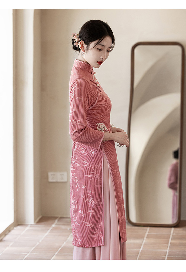 2024新款秋冬季长袖改良年轻款新中式日常可穿气质奥黛旗袍LBS&3143