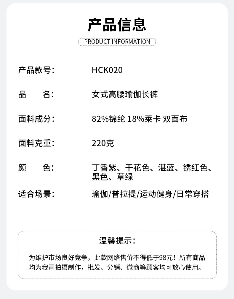 跃牌【瑞幸系列】莱卡高腰收腹裸感瑜伽裤无痕随意裁剪无T紧身健身裤运动打底裤HCK020