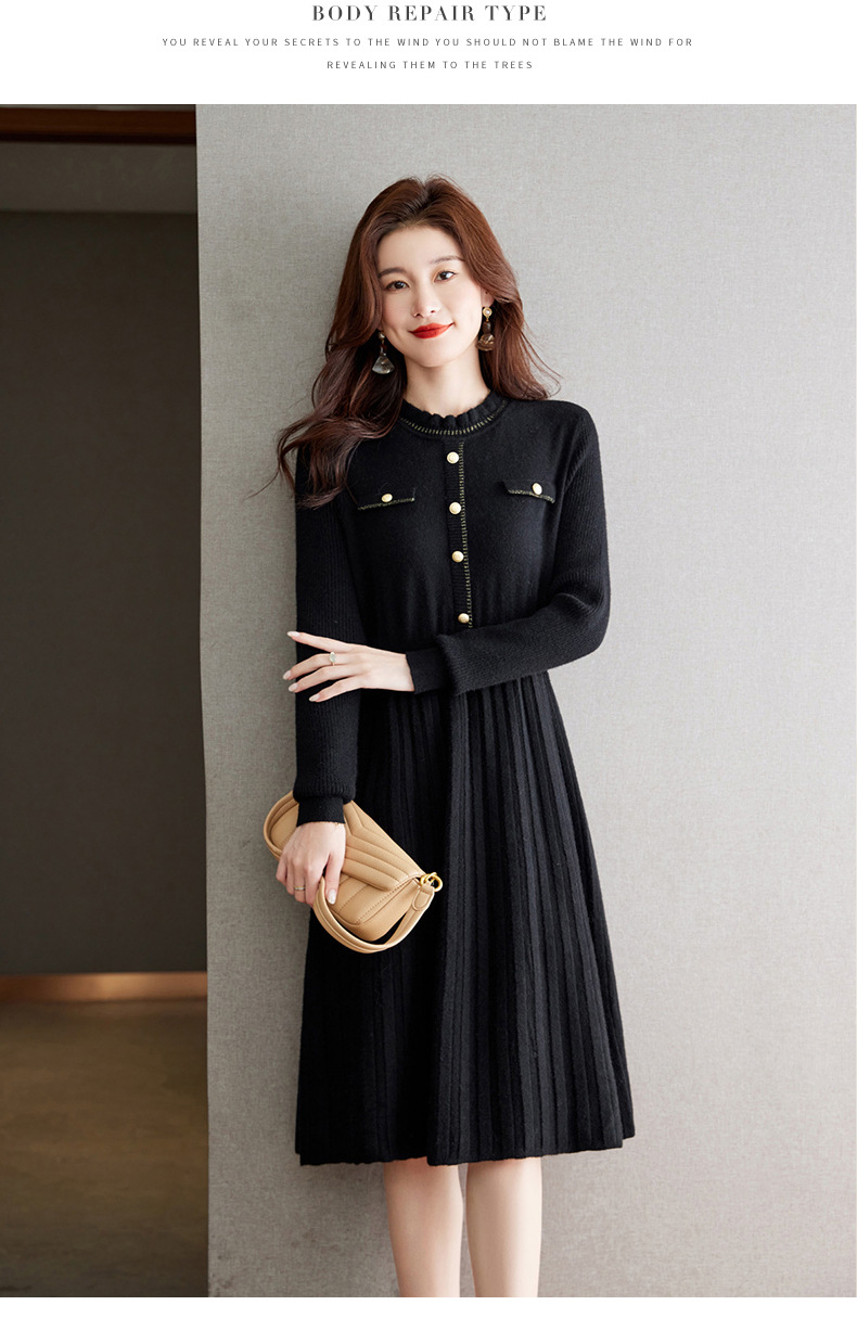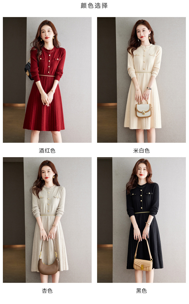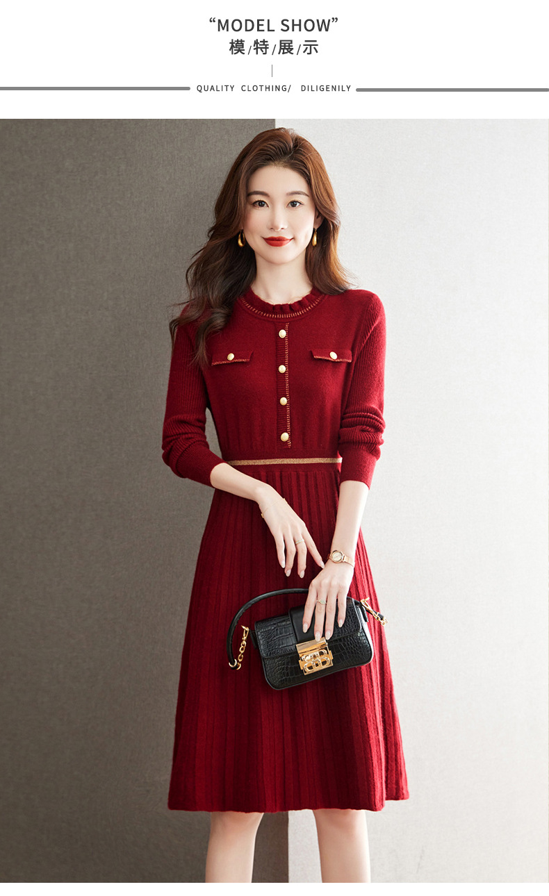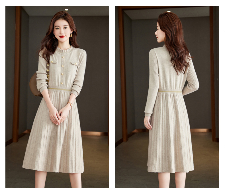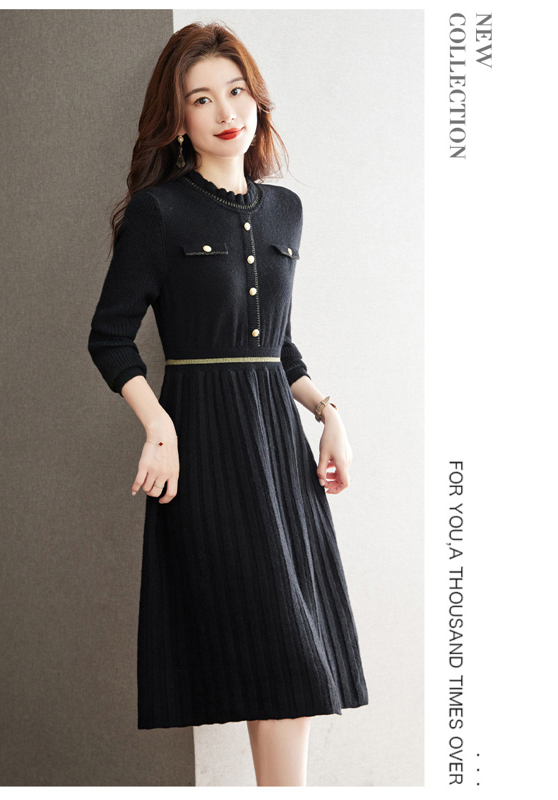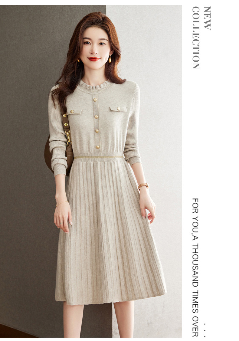 雀说木耳领百褶毛衣裙女打底衫女减龄长款针织连衣裙AL6772