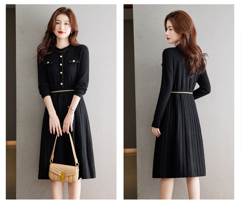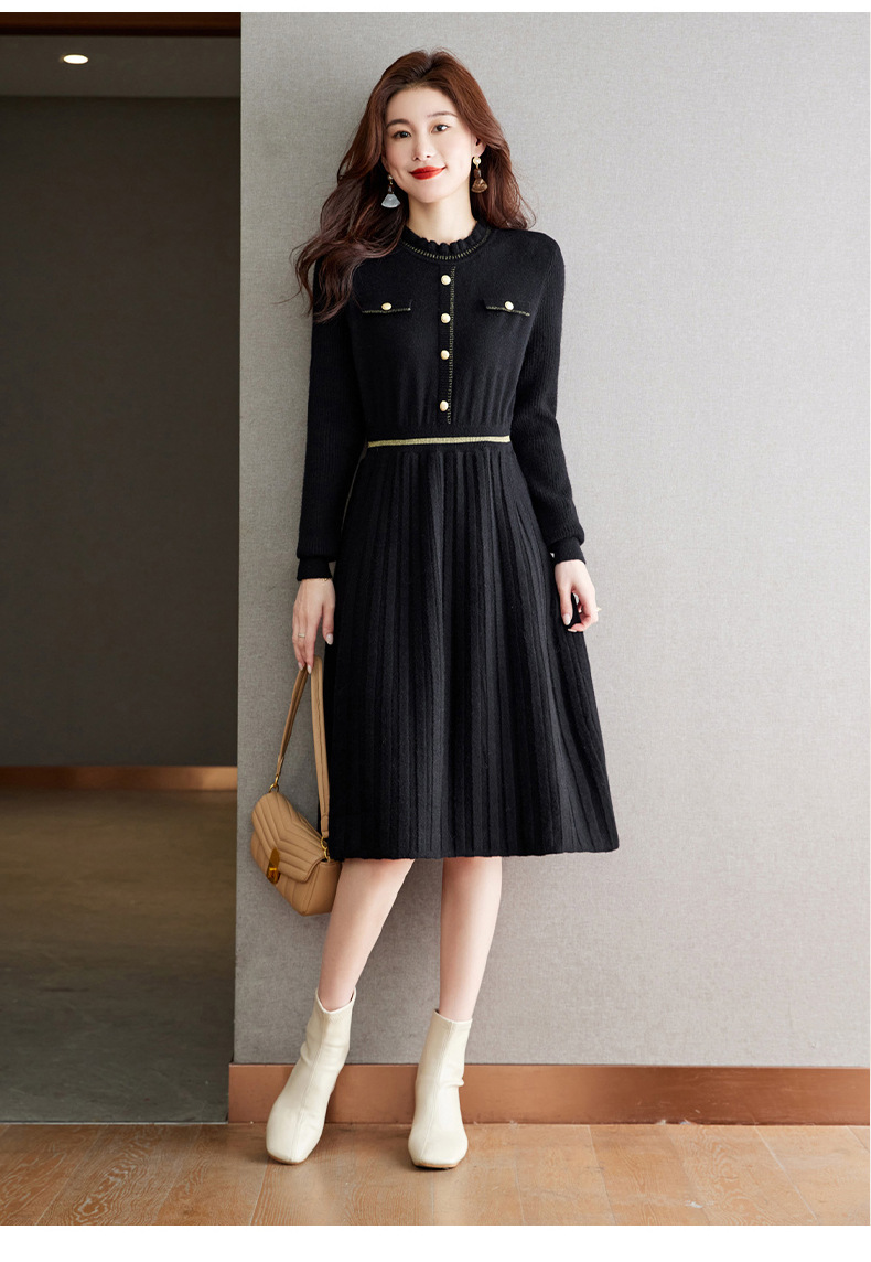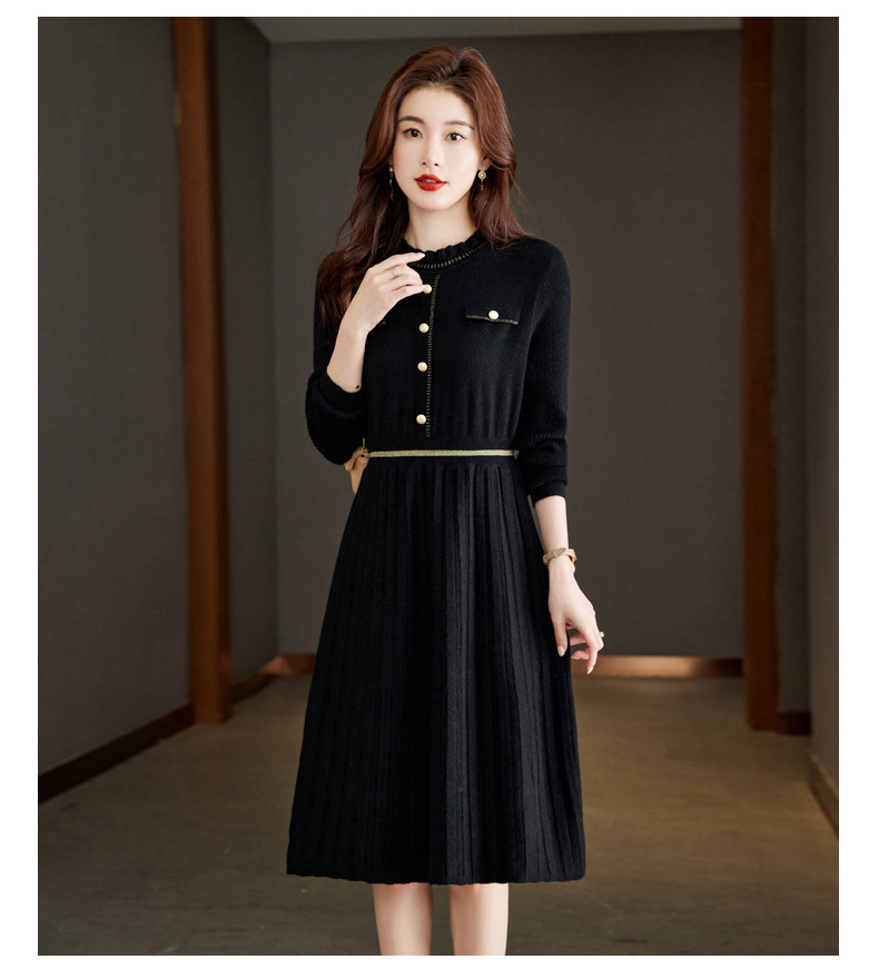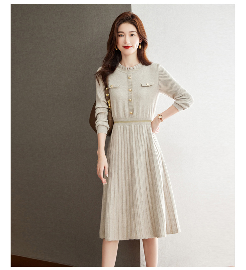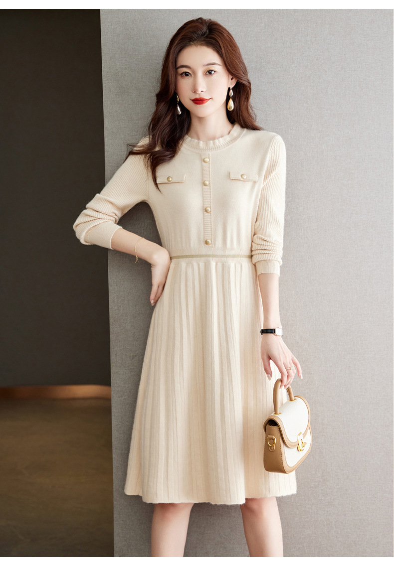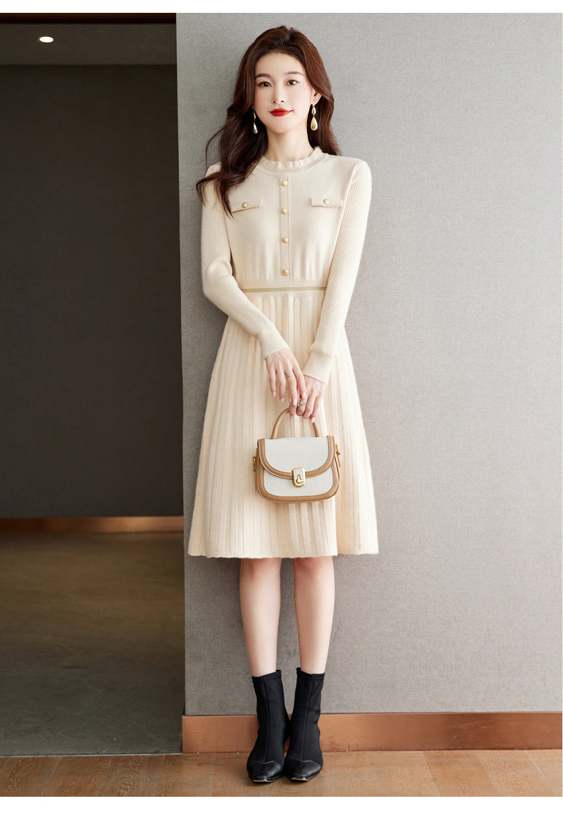 雀说木耳领百褶毛衣裙女打底衫女减龄长款针织连衣裙AL6772