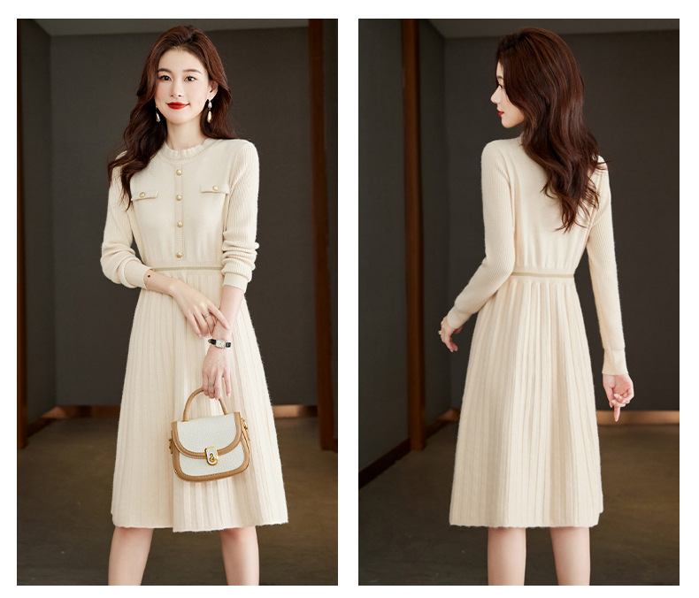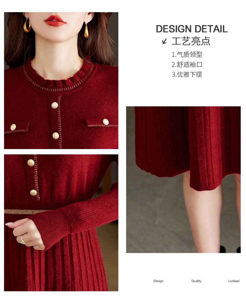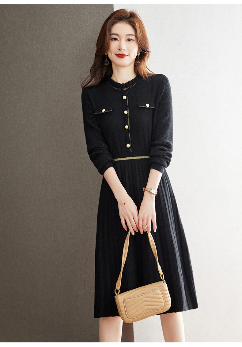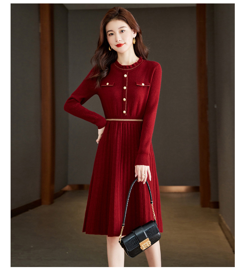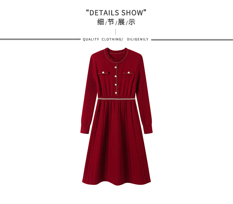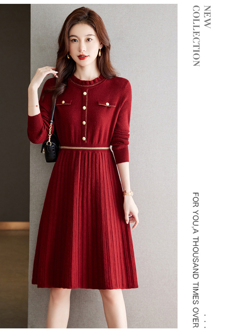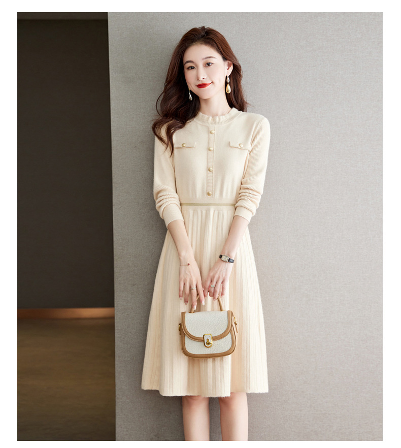 雀说木耳领百褶毛衣裙女打底衫女减龄长款针织连衣裙AL6772