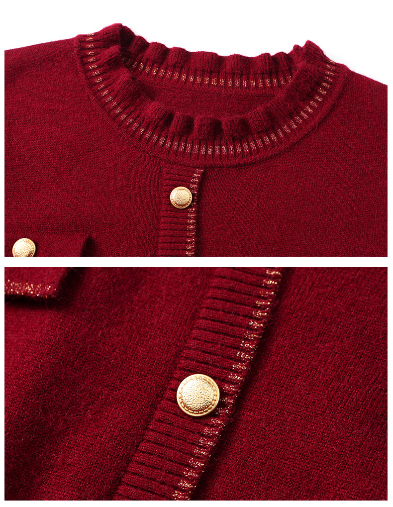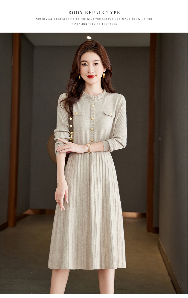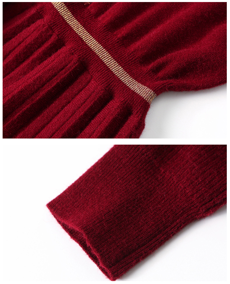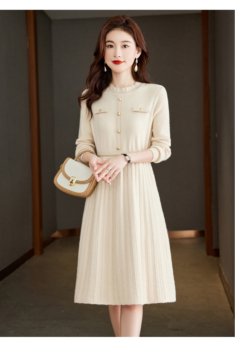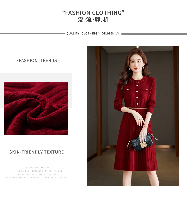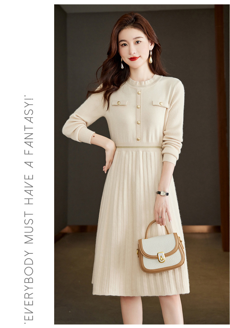 雀说木耳领百褶毛衣裙女打底衫女减龄长款针织连衣裙AL6772