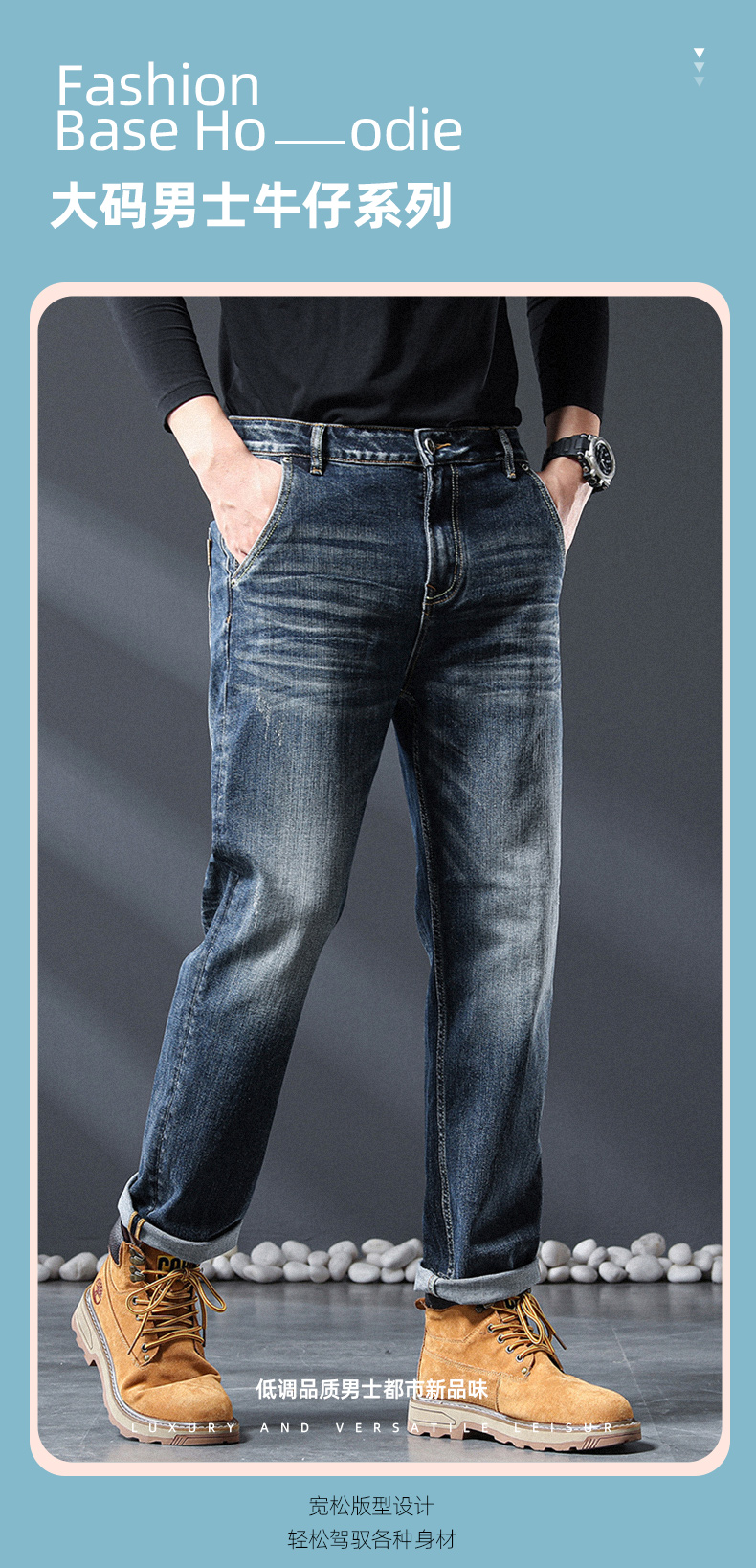 【新款DQ】大依优型大码男装牛仔裤直筒加肥加大号肥佬宽松大号休闲长裤百搭