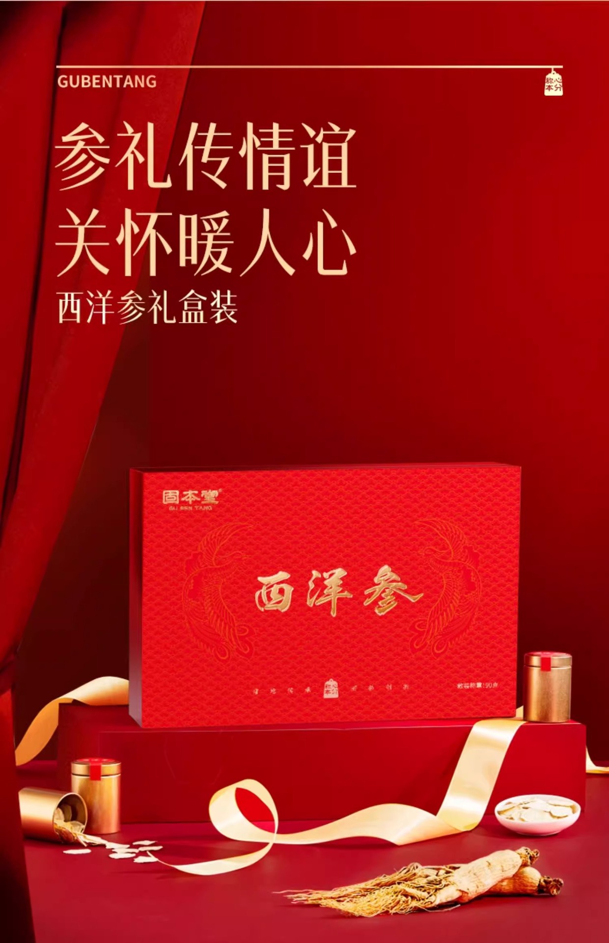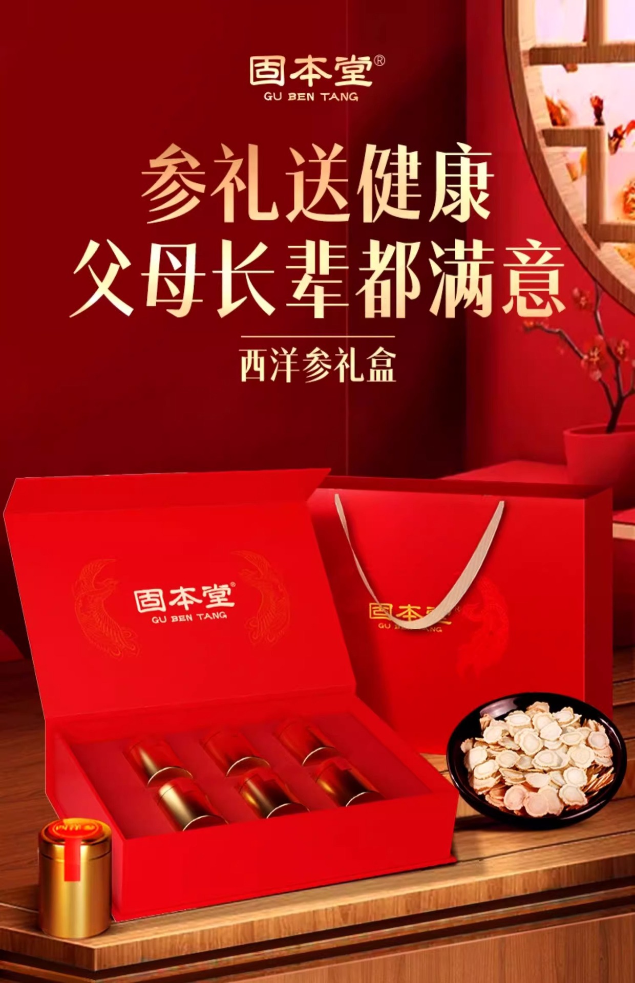 固本堂西洋参补品西洋参片传统滋补品送父母礼盒装礼品实用中秋节