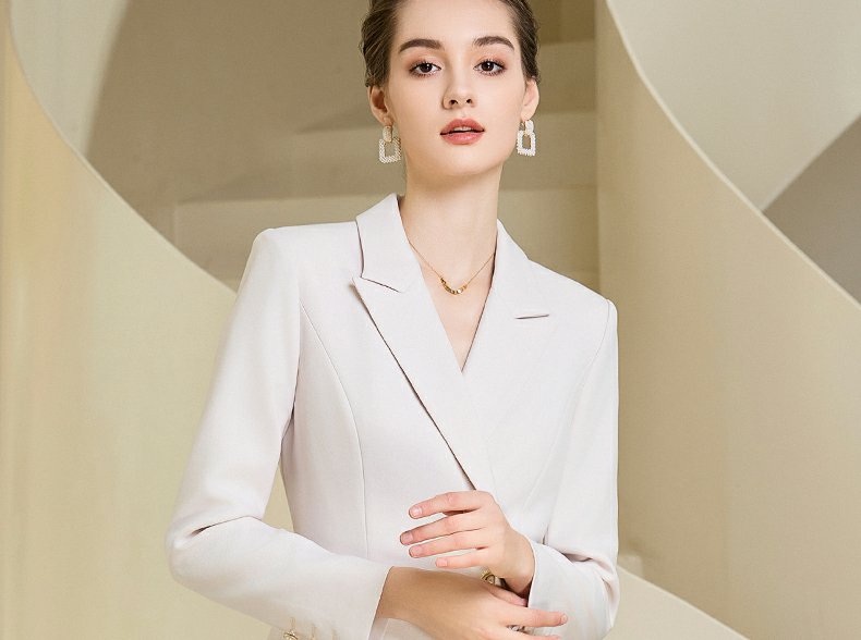 IWY/高端杏色连衣裙女西装裙气质时尚女装主持人礼服通勤装233023Q1