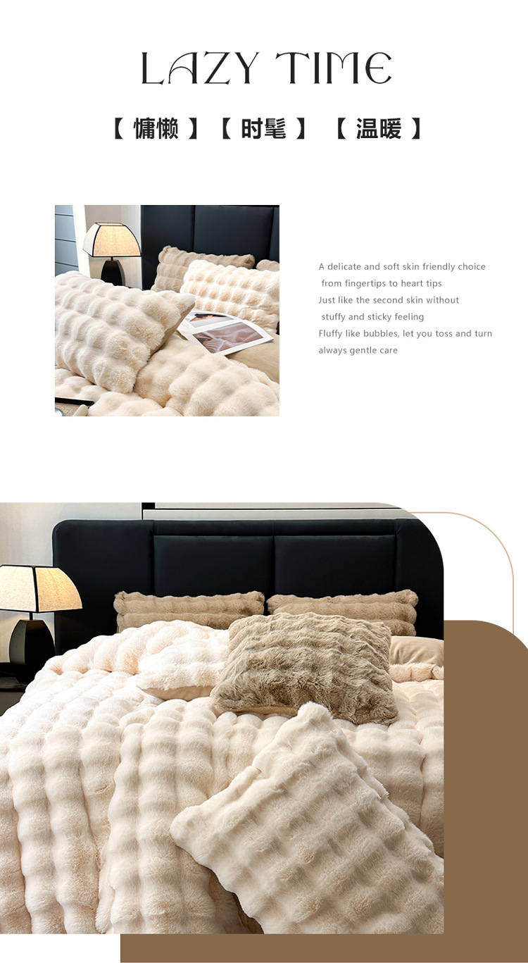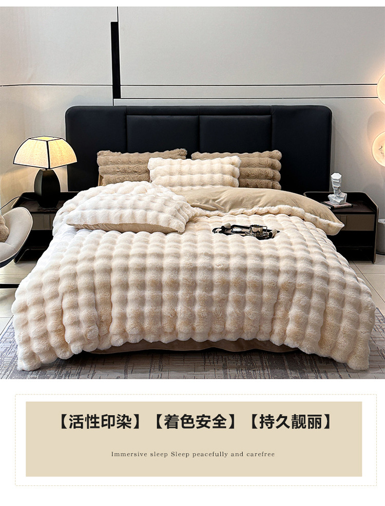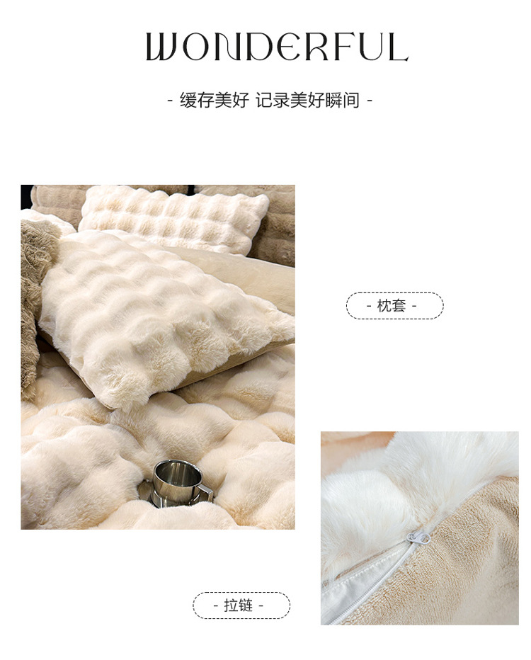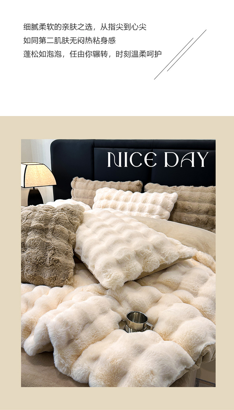 【兔毛绒四件套】兔毛绒四件套秋冬保暖绒布套件泡芙格长毛绒加厚床品