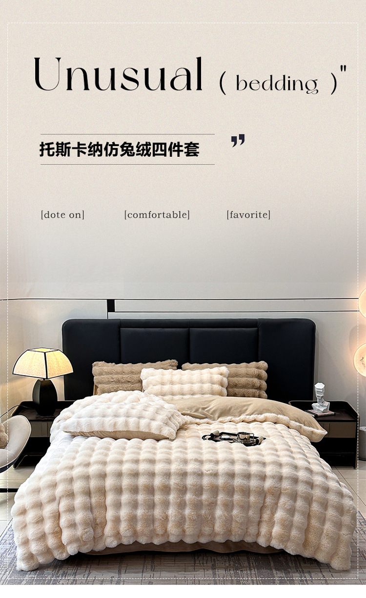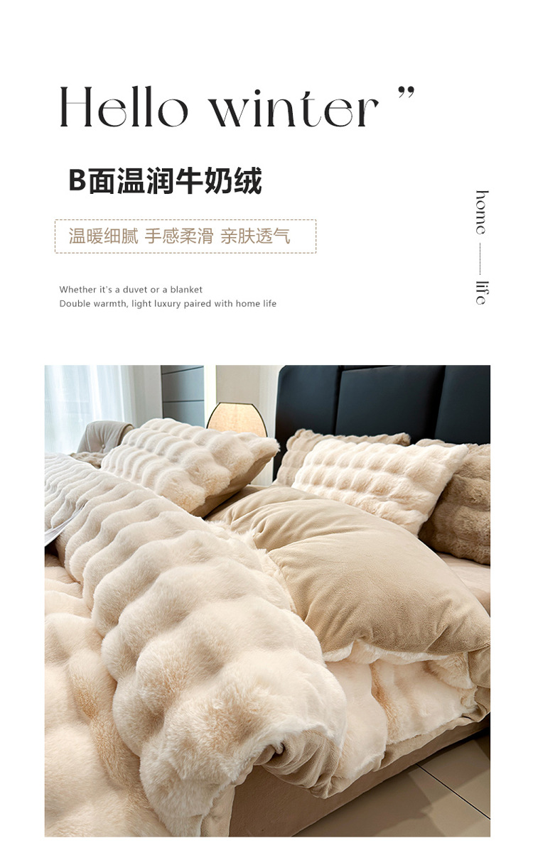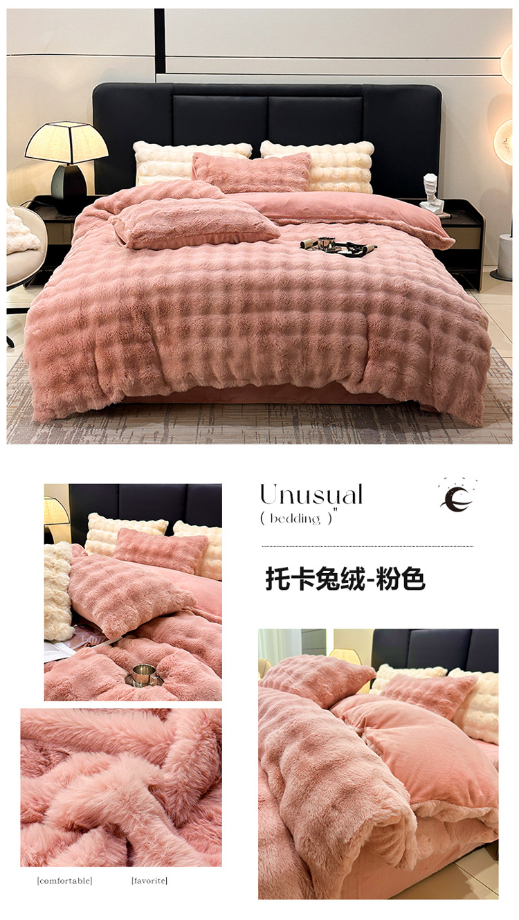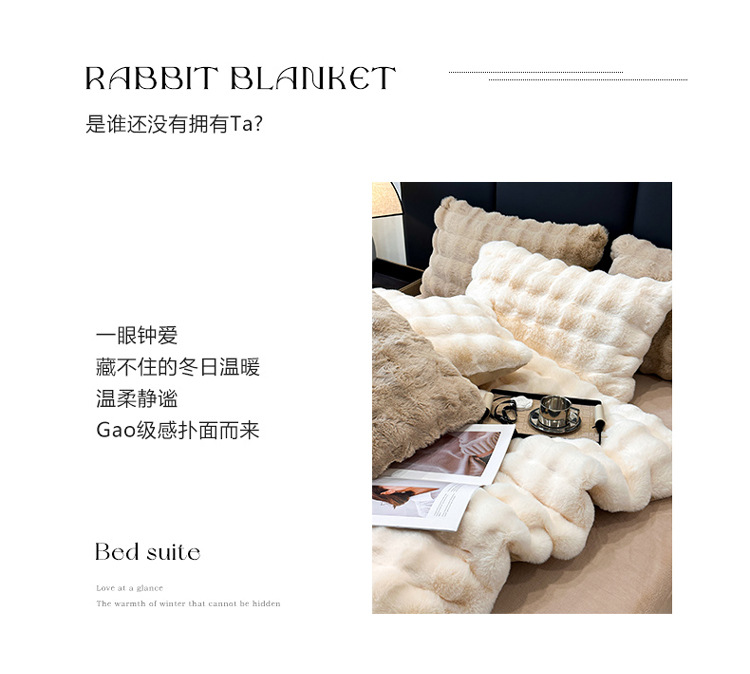 【兔毛绒四件套】兔毛绒四件套秋冬保暖绒布套件泡芙格长毛绒加厚床品
