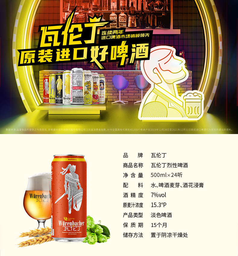 【1件包邮 24瓶整箱装】瓦伦丁烈性500ml*24 口感强劲浓烈 甘肃/青海/内蒙古/新疆/西藏/宁夏/海南/港澳台不发货