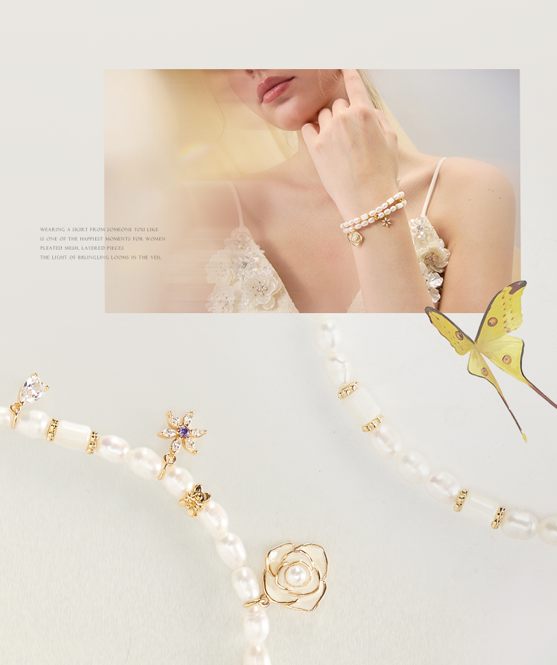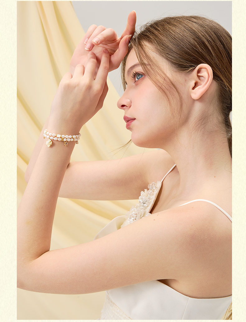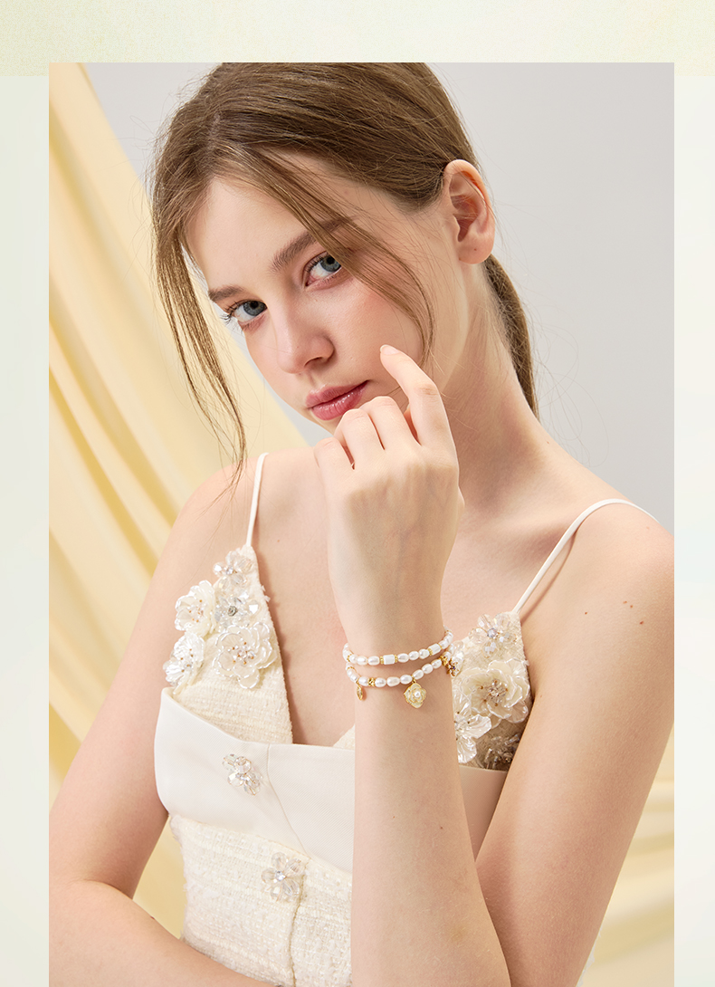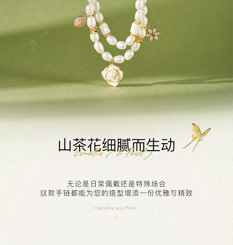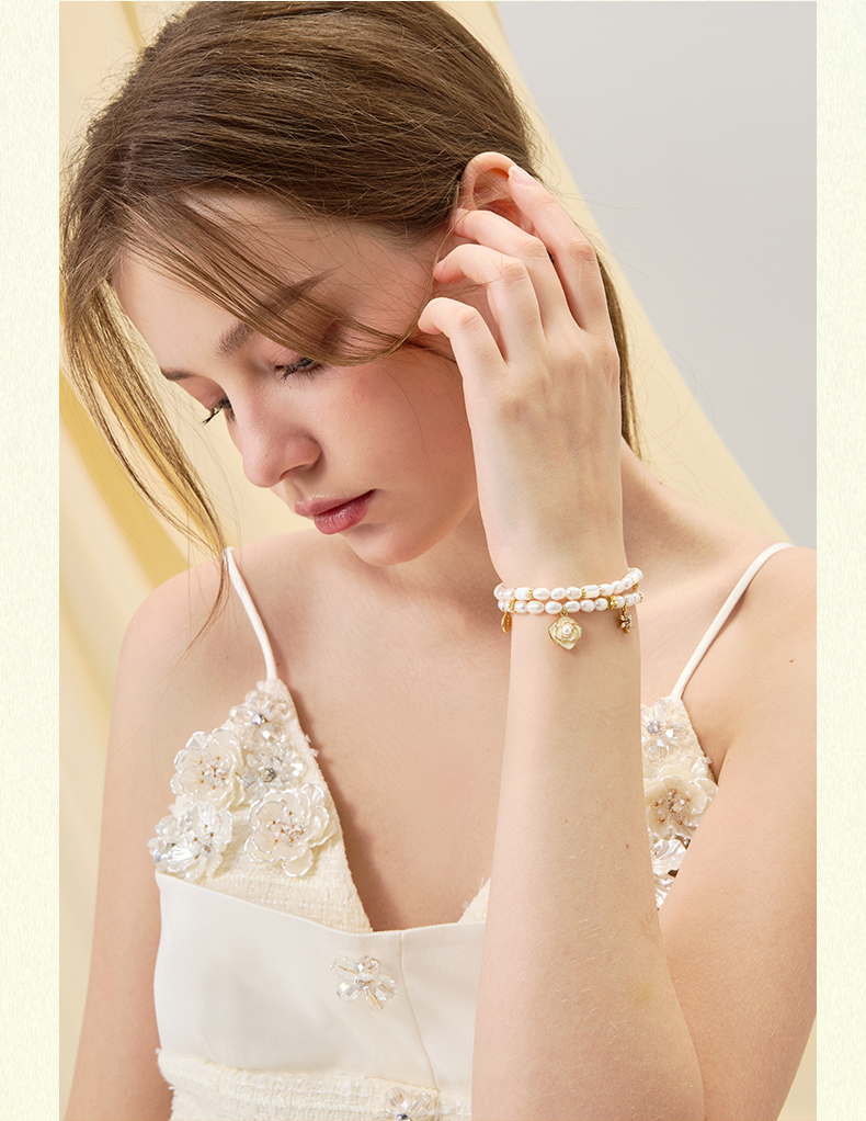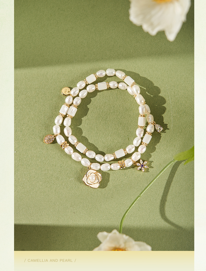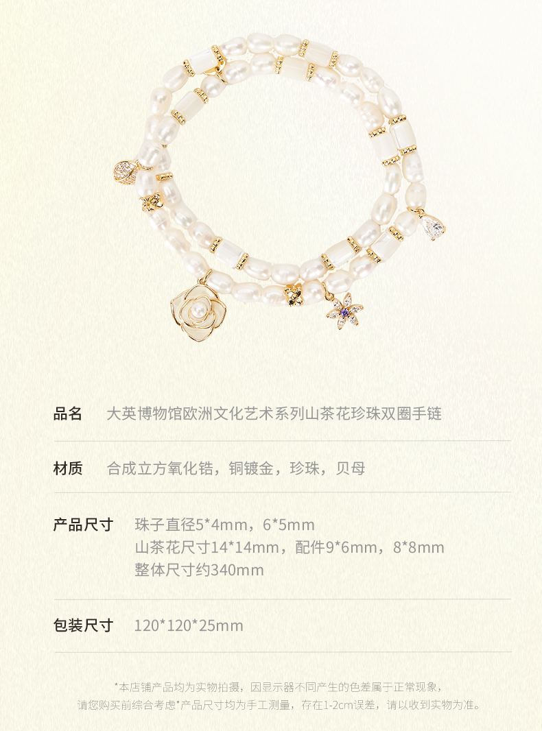 大英博物馆欧洲文化艺术系列山茶花珍珠双圈手链