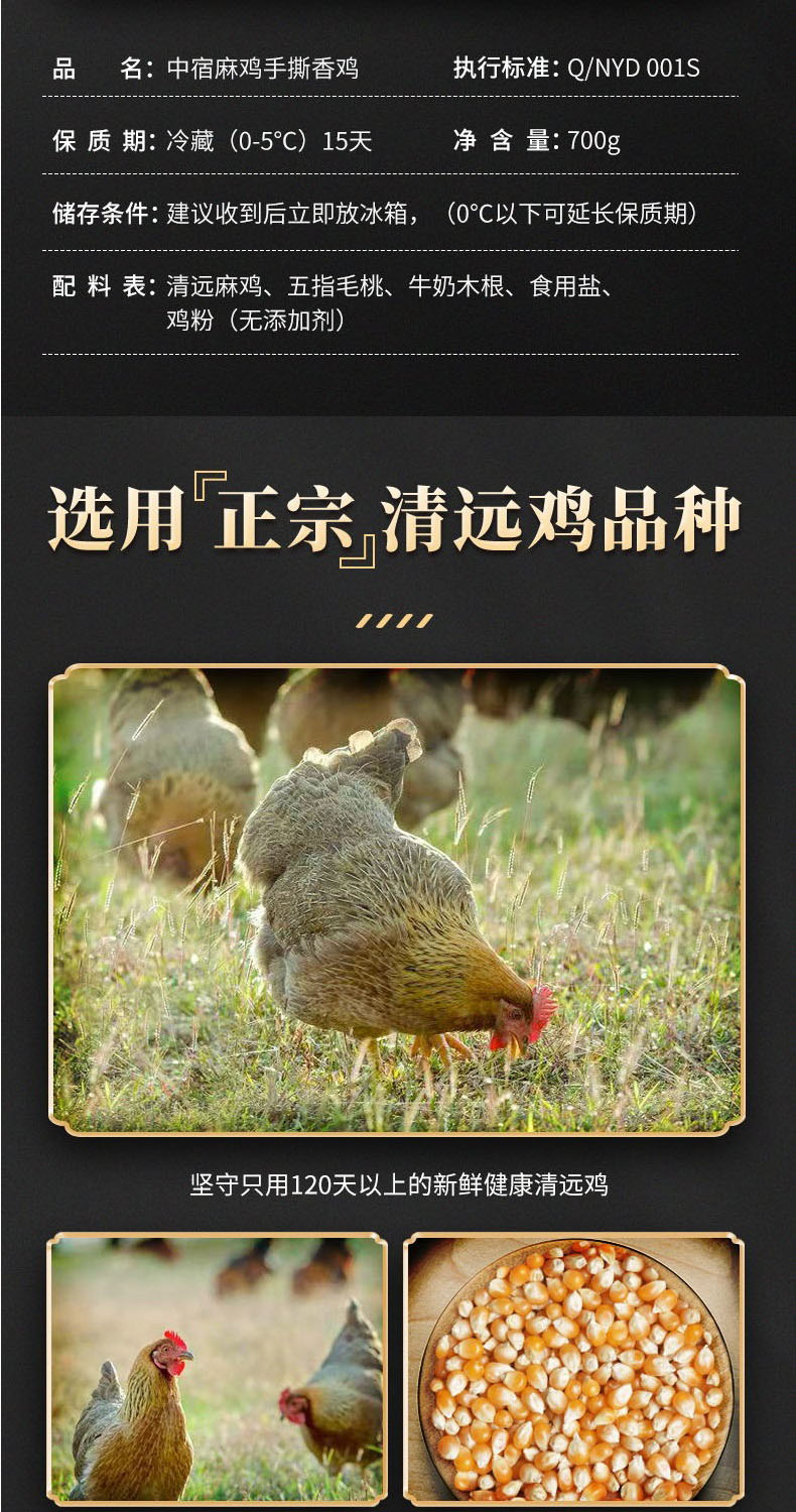 中宿麻鸡五指毛桃手撕香鸡 清远走地鸡原汁原味