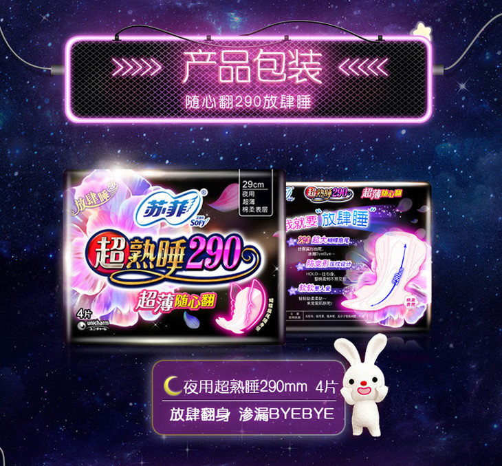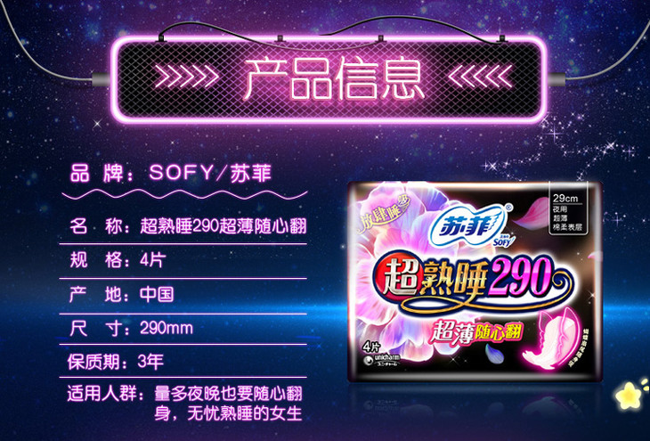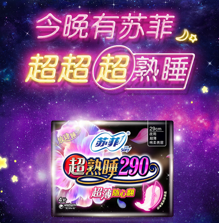 苏菲超熟睡超薄随心翻290 棉质丝薄夜用 洁翼型 4片