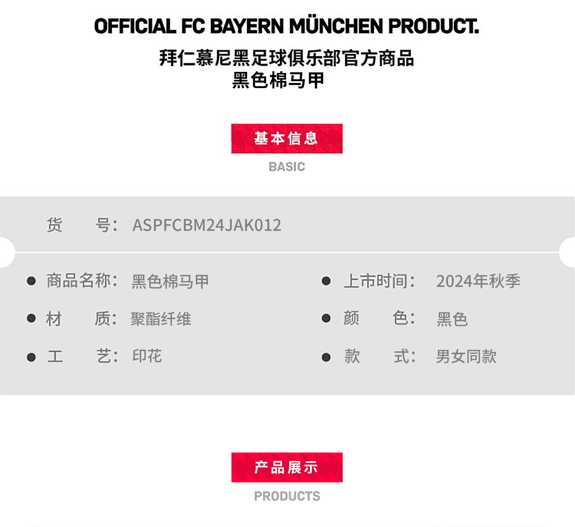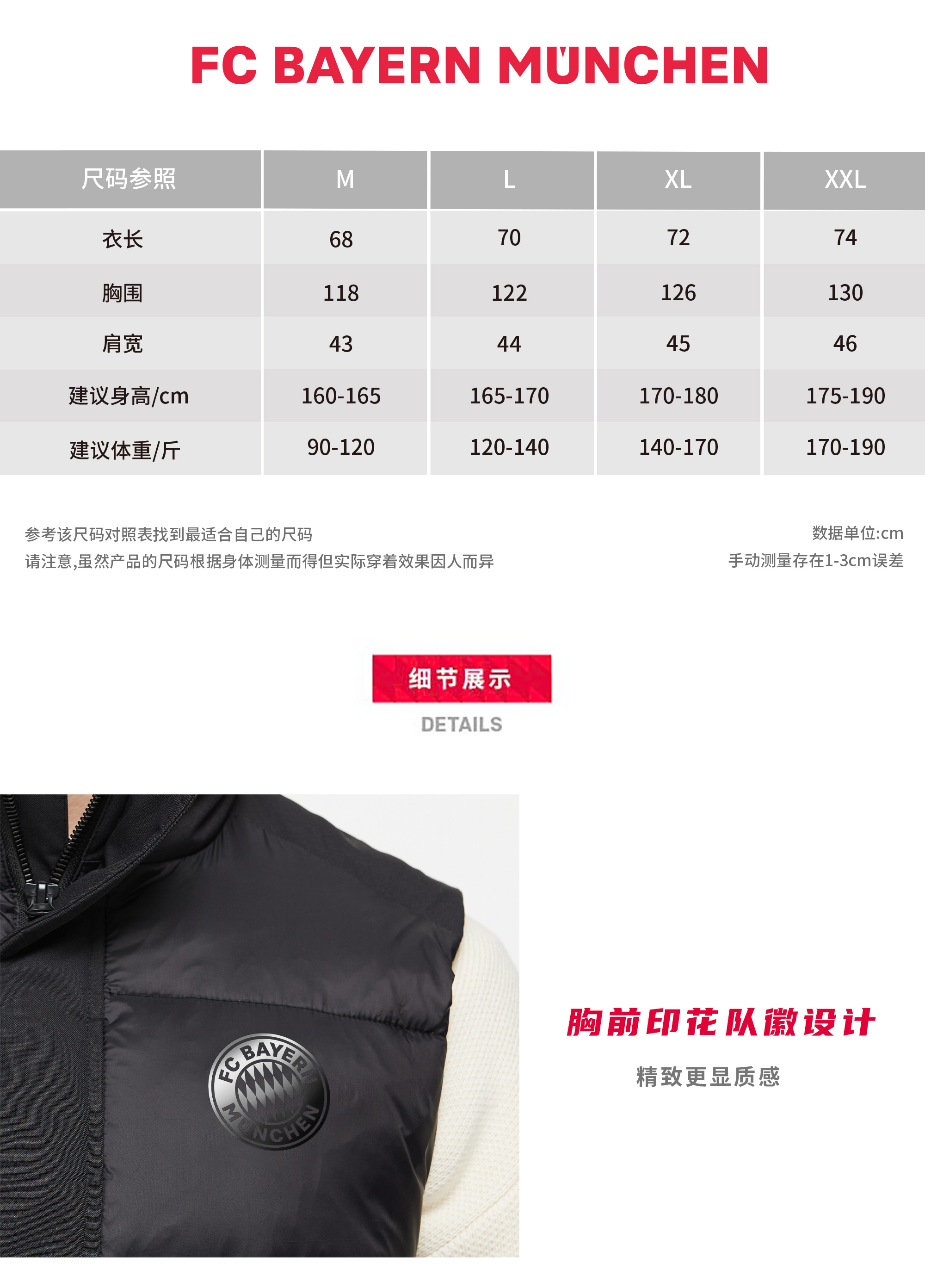 【官方正版】拜仁慕尼黑足球俱乐部 | 黑棉马甲秋冬保暖球迷