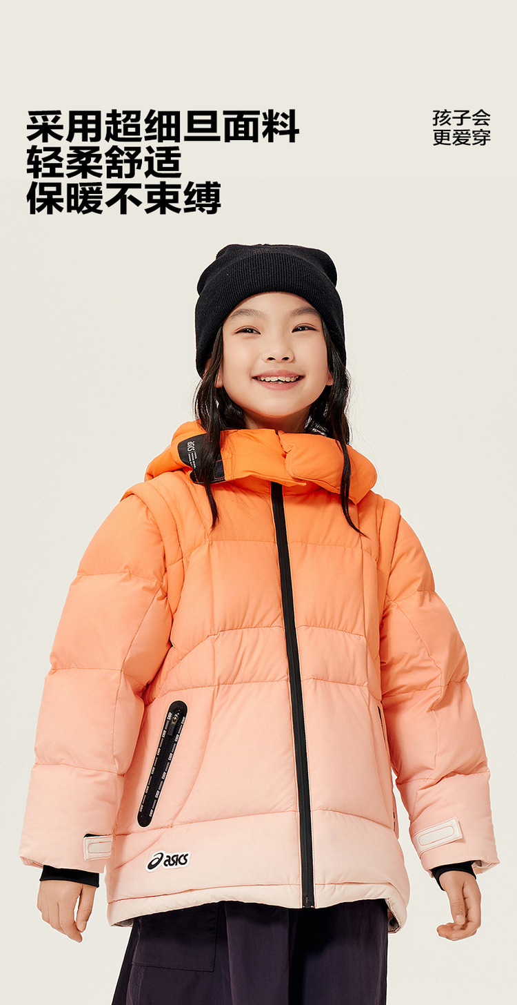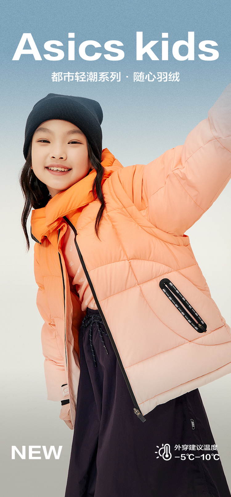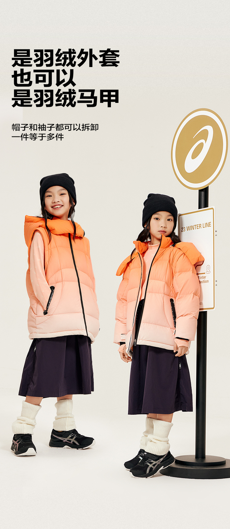 ASICS/亚瑟士童装2023年秋冬男女儿童宽松时尚设计感梭织羽绒服