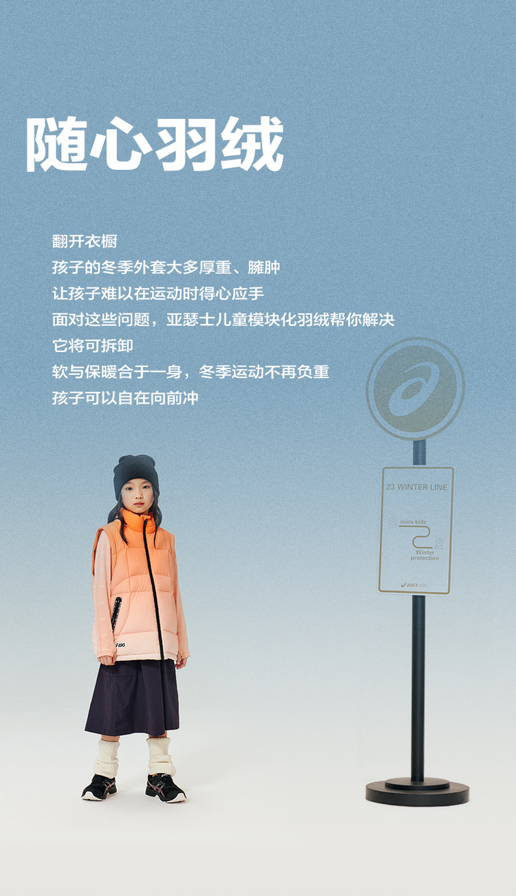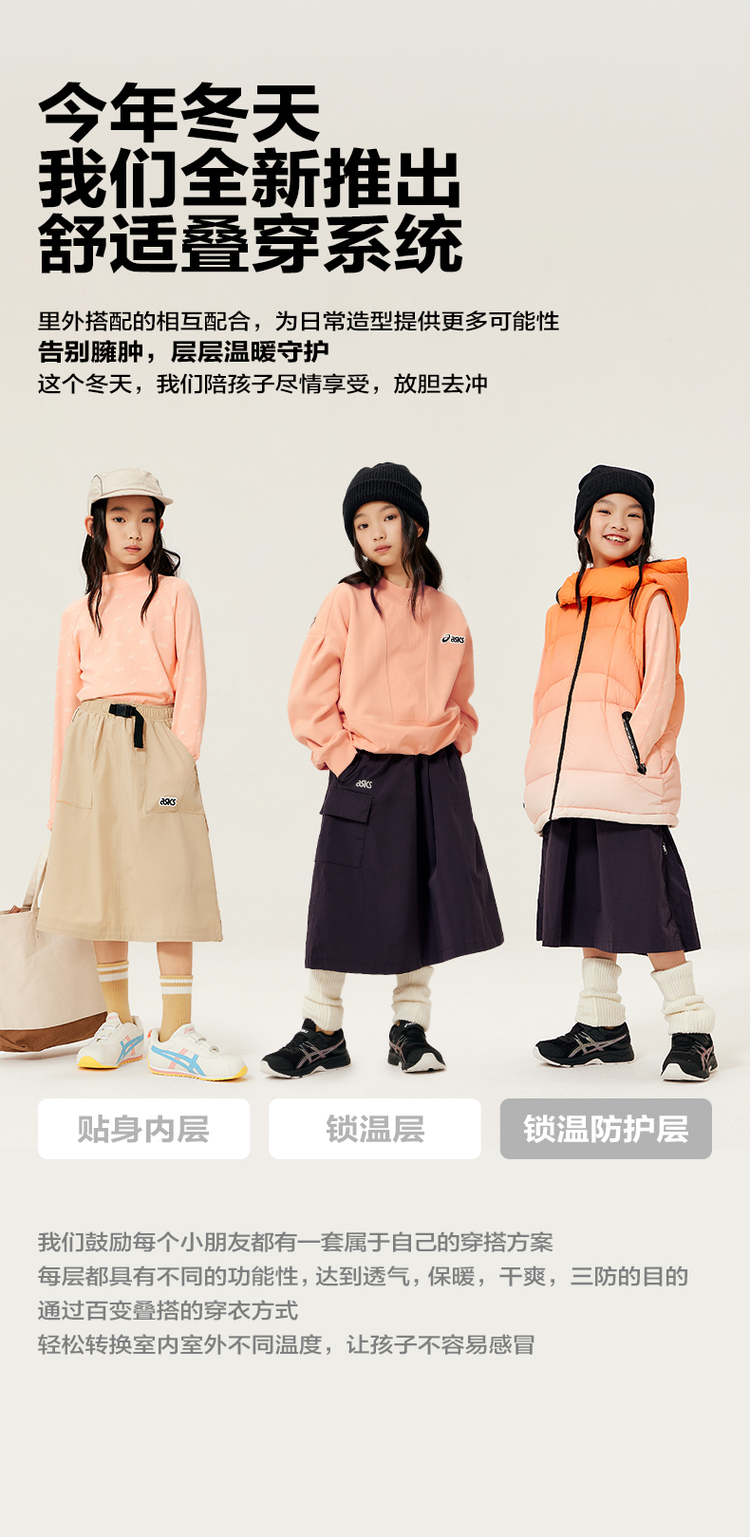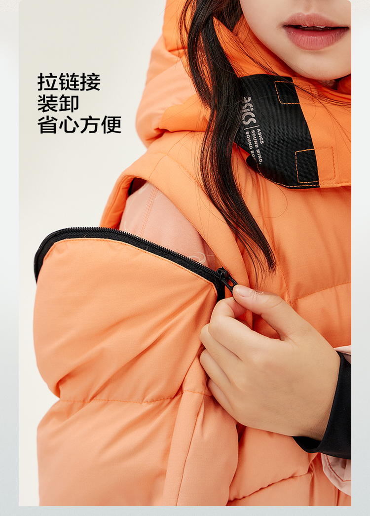 ASICS/亚瑟士童装2023年秋冬男女儿童宽松时尚设计感梭织羽绒服
