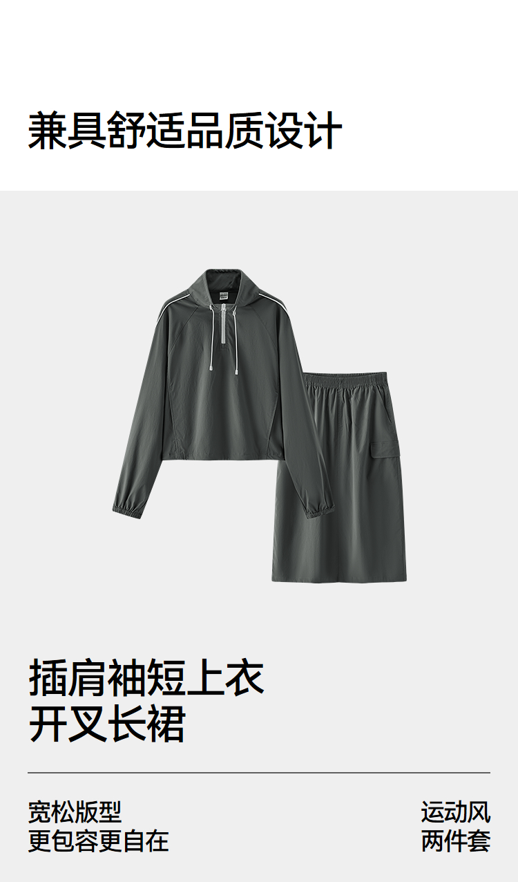商场同款|森马套装女春插肩袖短上衣开叉长裙2026新款户外两件套