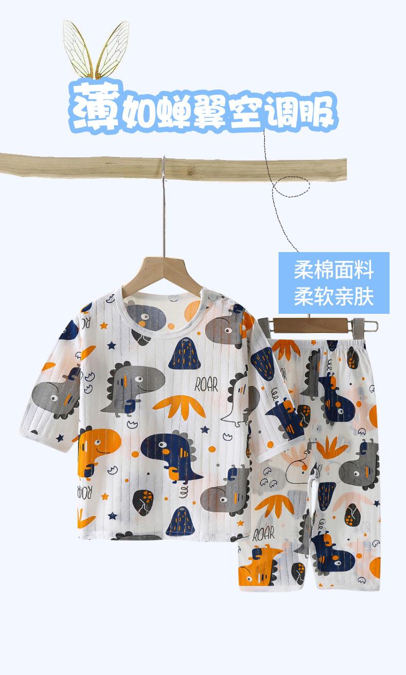 2023新款儿童纯棉家居服套装夏季长袖睡衣薄款空调服男女童装