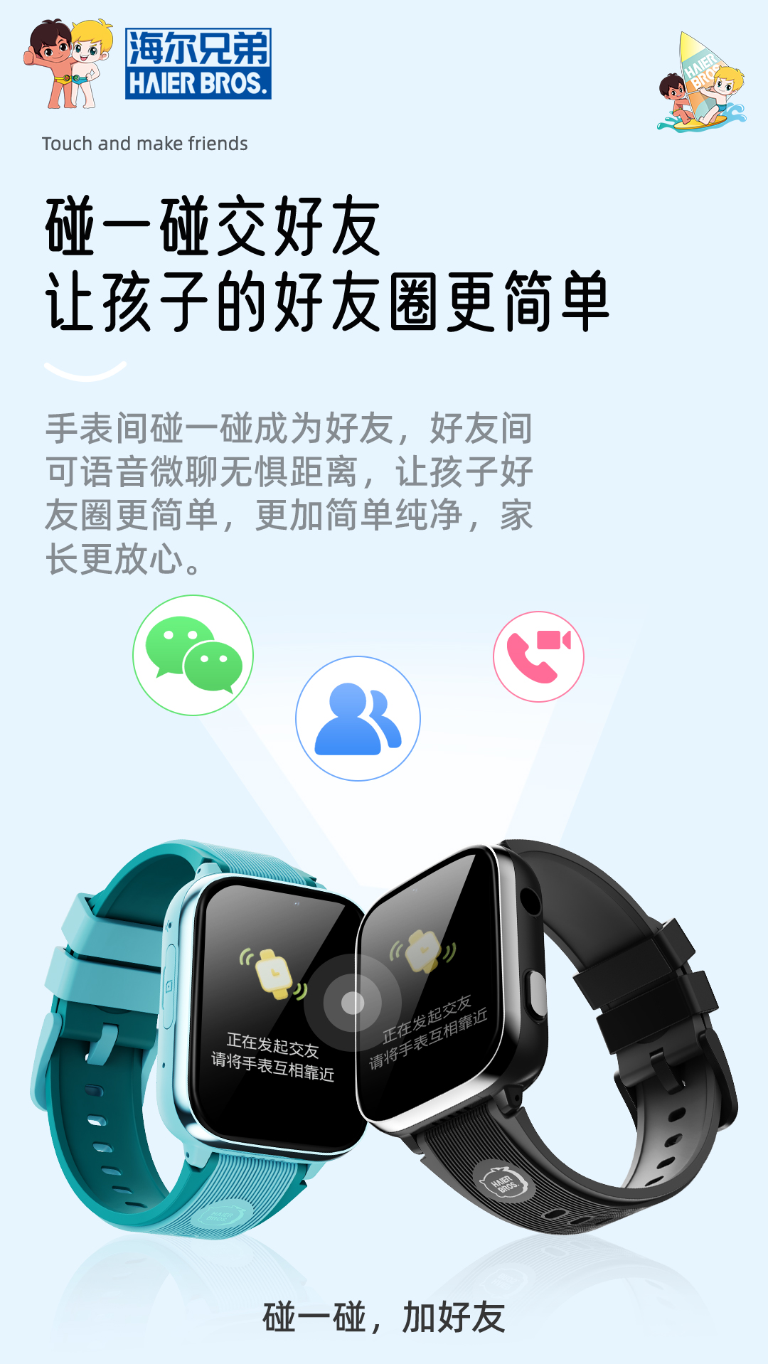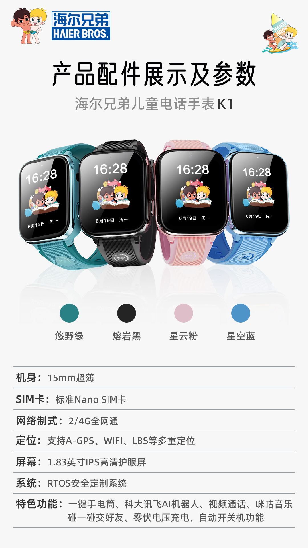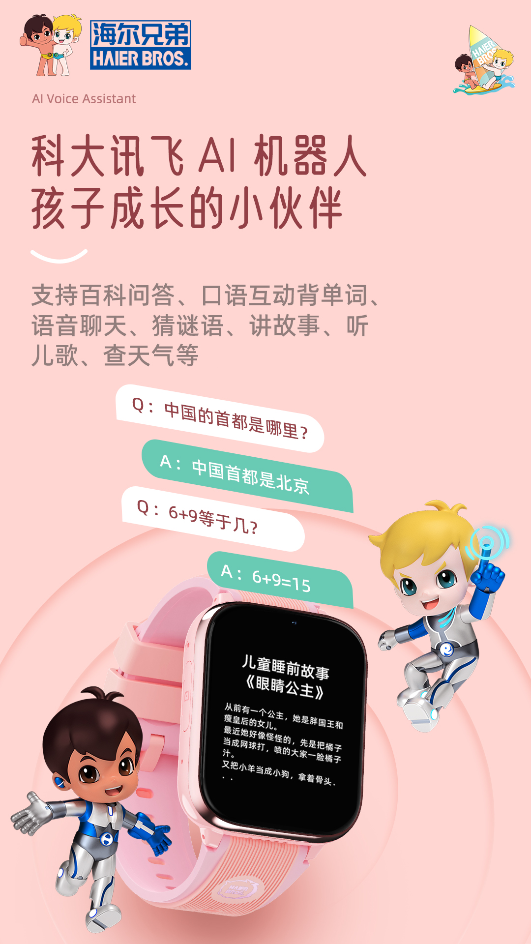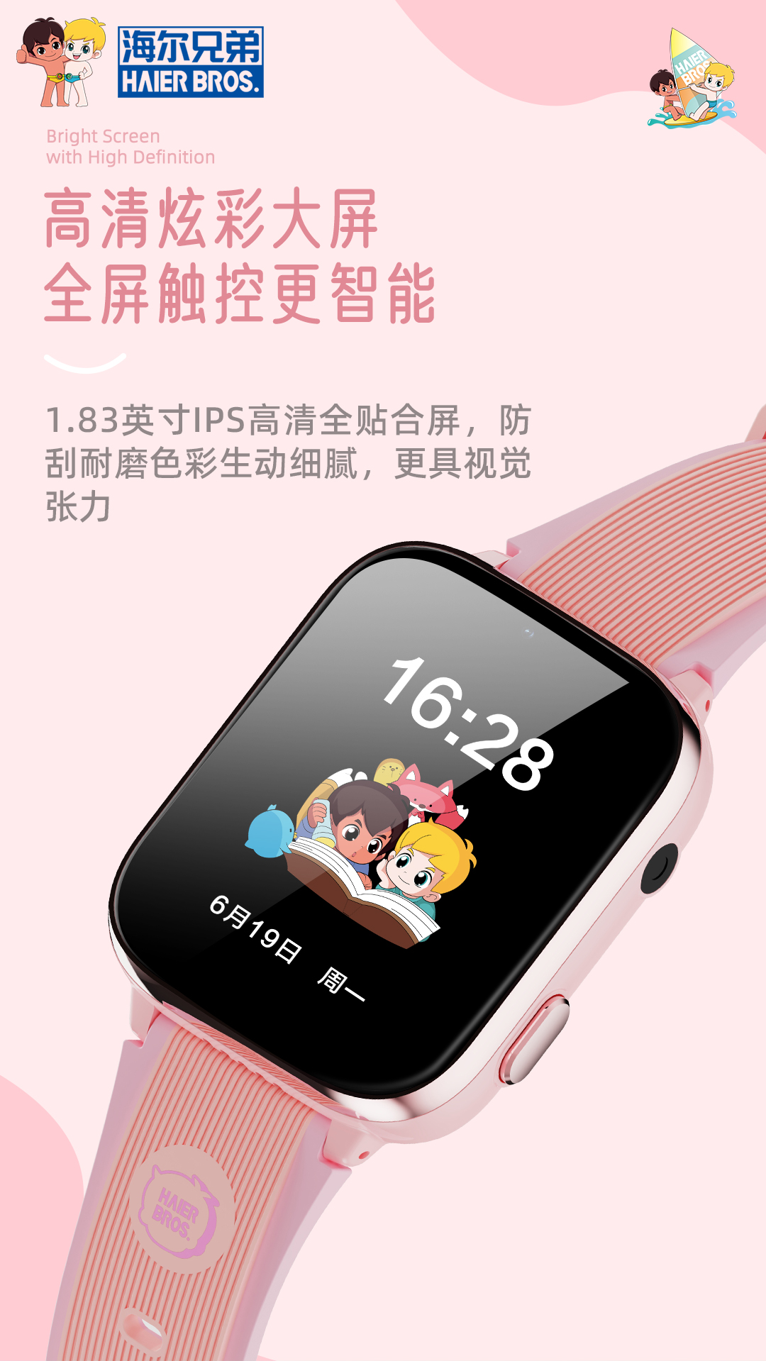 海尔兄弟儿童手表1.83英寸IPS高清护眼屏 科大讯飞AI机器人、视频通话、咪咕音乐 碰一碰交好友、零伏电压充电、一键手电筒、自动开关机功能