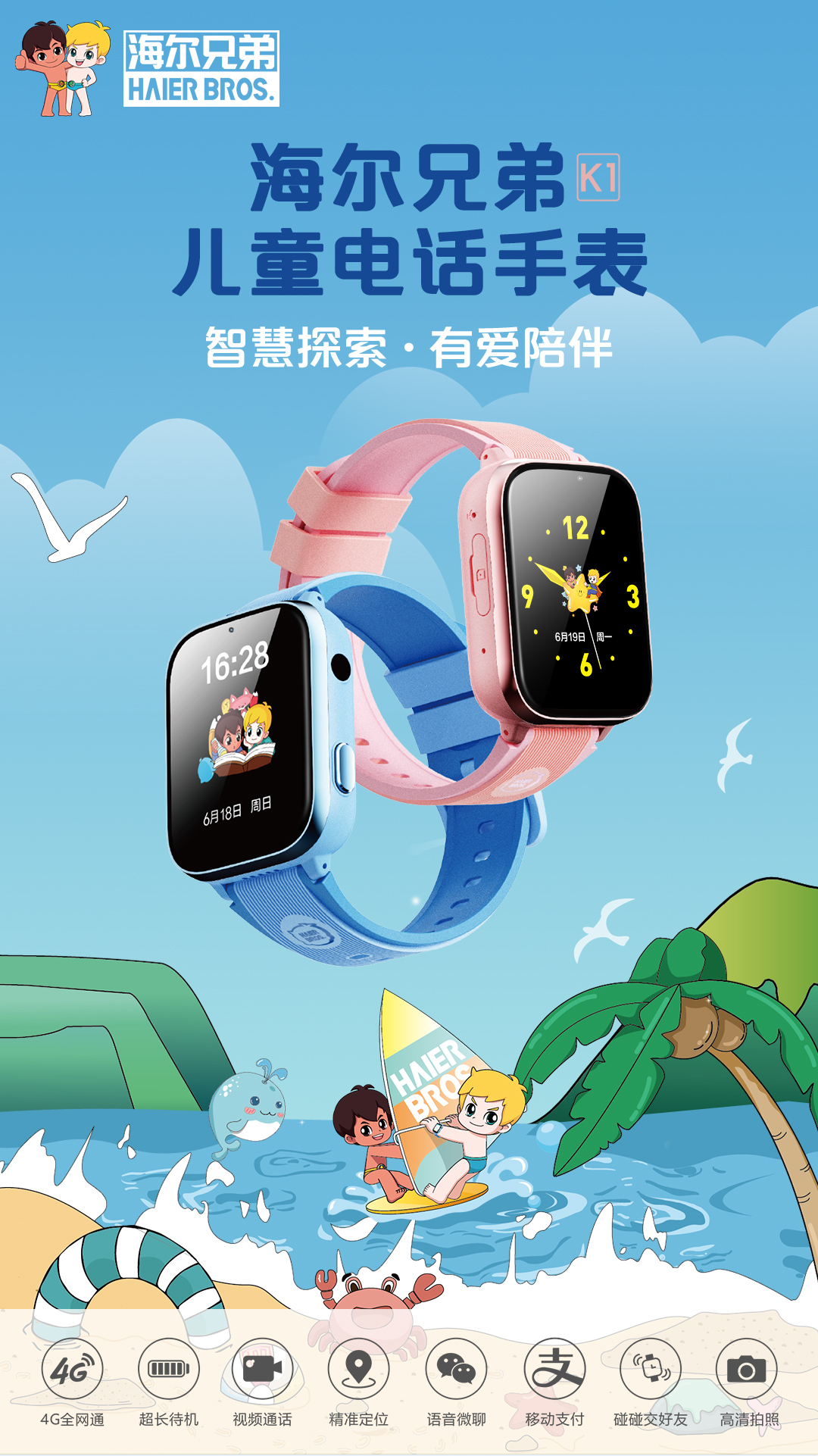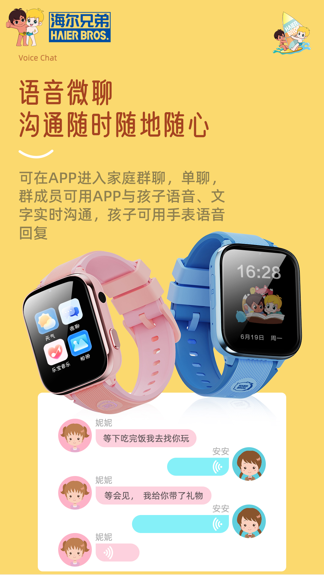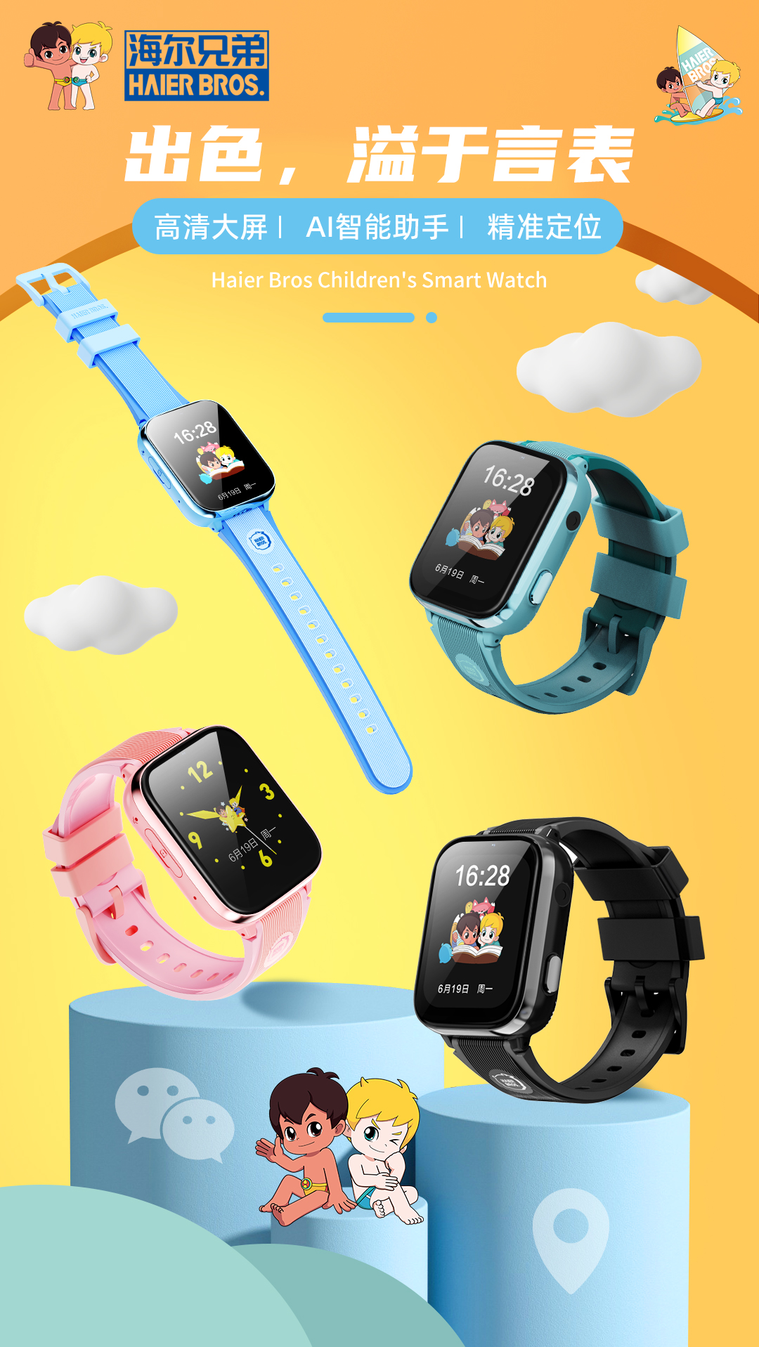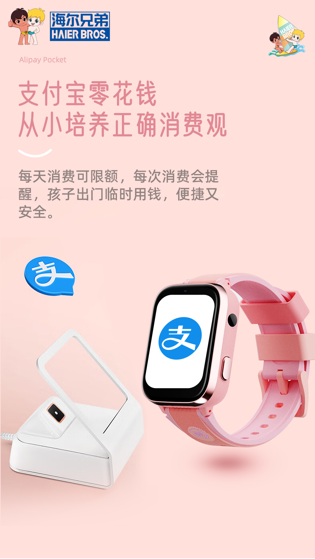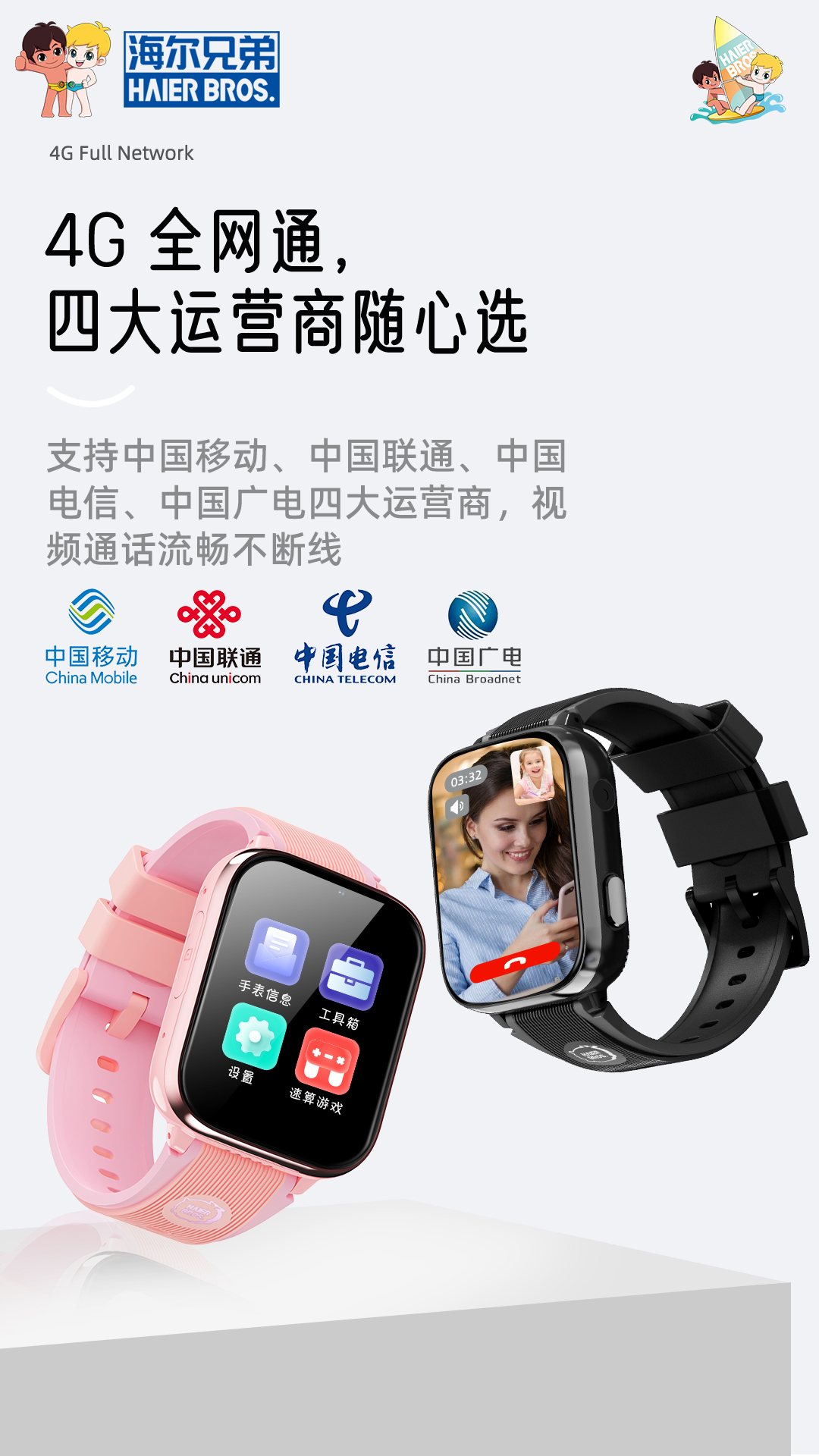 海尔兄弟儿童手表1.83英寸IPS高清护眼屏 科大讯飞AI机器人、视频通话、咪咕音乐 碰一碰交好友、零伏电压充电、一键手电筒、自动开关机功能