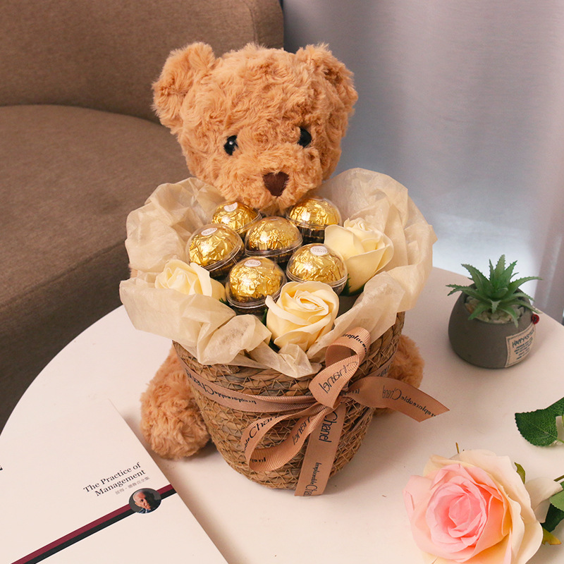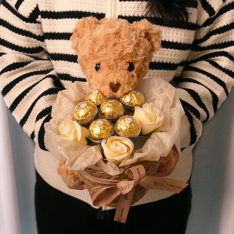 七夕好礼!【小熊抱抱桶公仔,萌翻朋友圈!】费列罗榛仁巧克力 七夕情人节生日礼物 送女生闺蜜 小熊抱抱桶公仔-QB