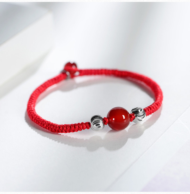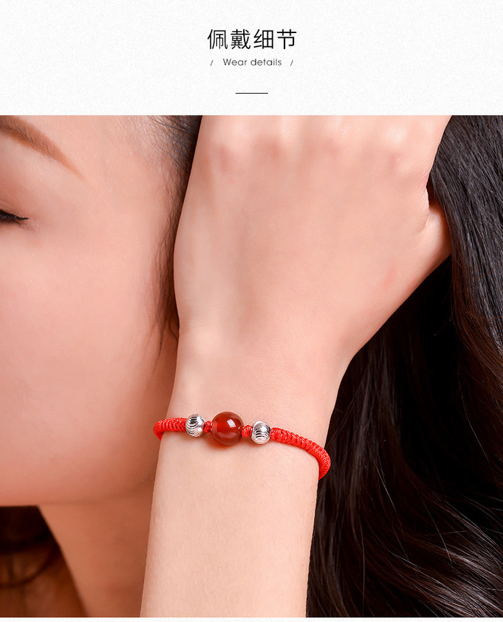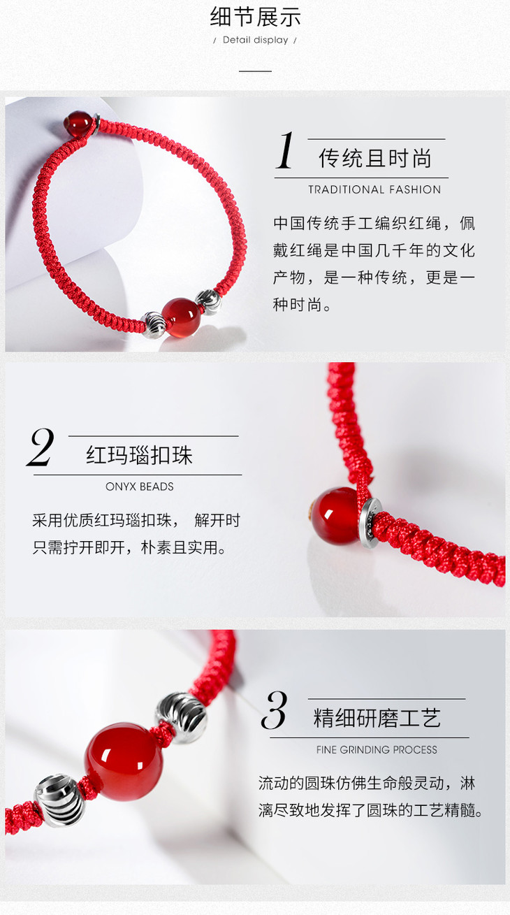 石头记 红绳手链女 水晶玛瑙手链 红色编织手链