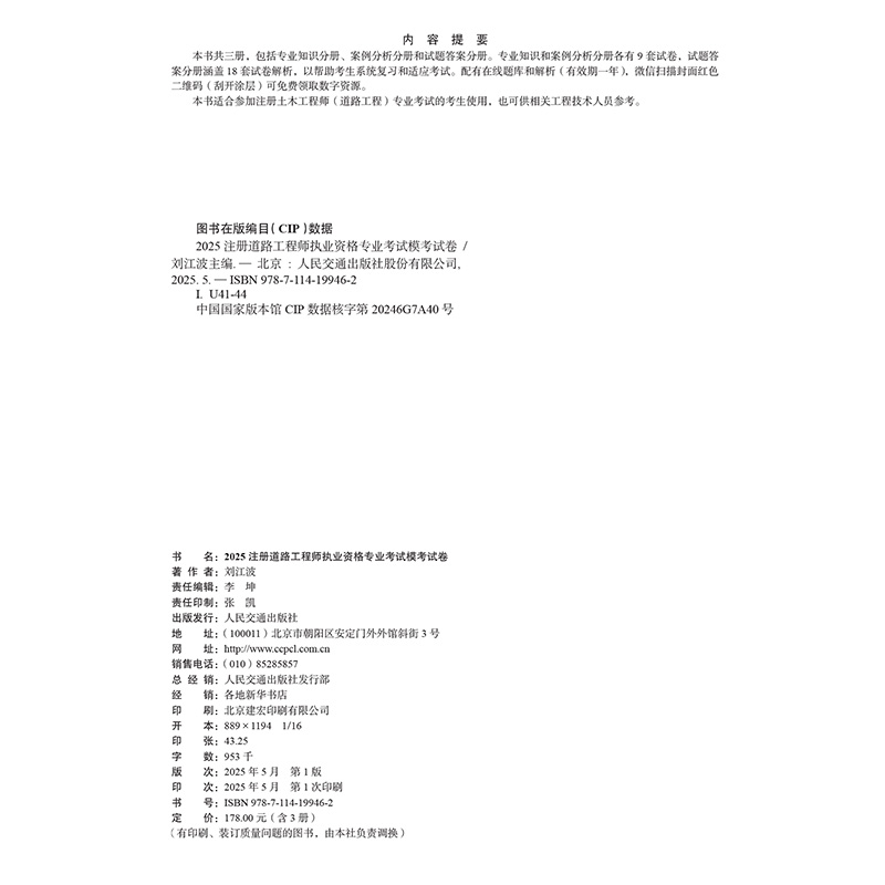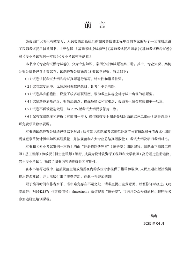 书名:2025注册道路工程师执业资格专业考试模考试卷