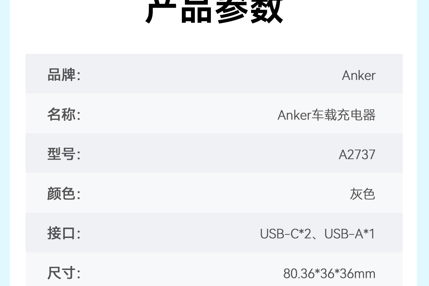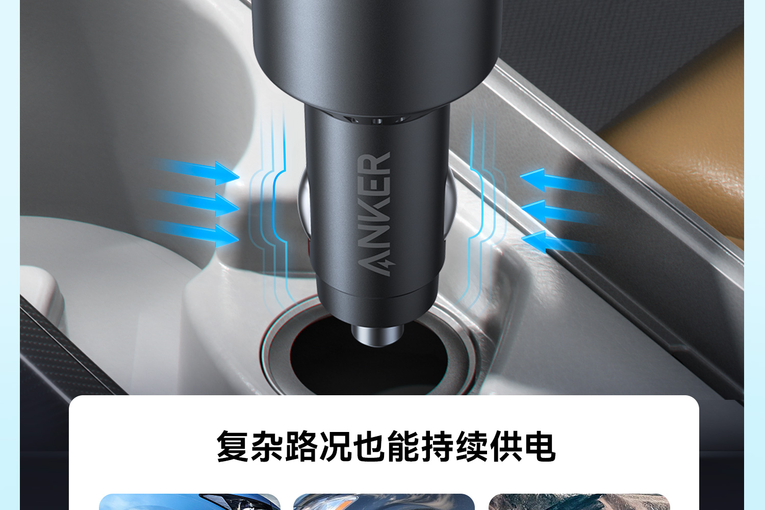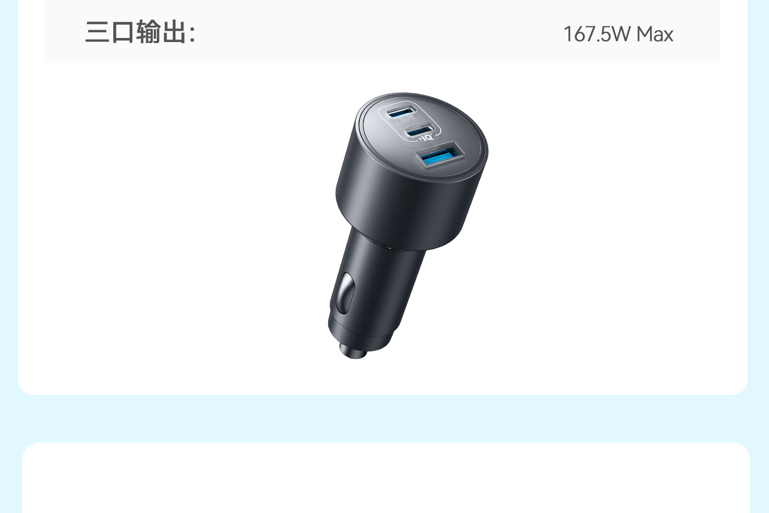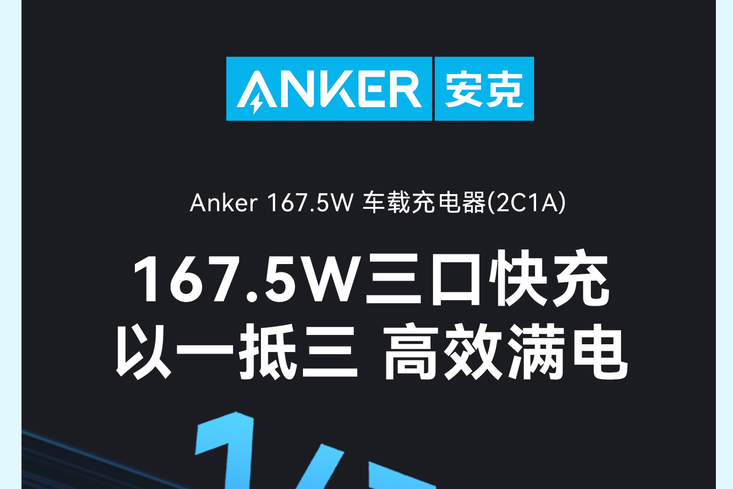 【热销】Anker安克167.5W车载充电器三口车充高效散热智能兼容多设备2C1A车载充电器 A2737