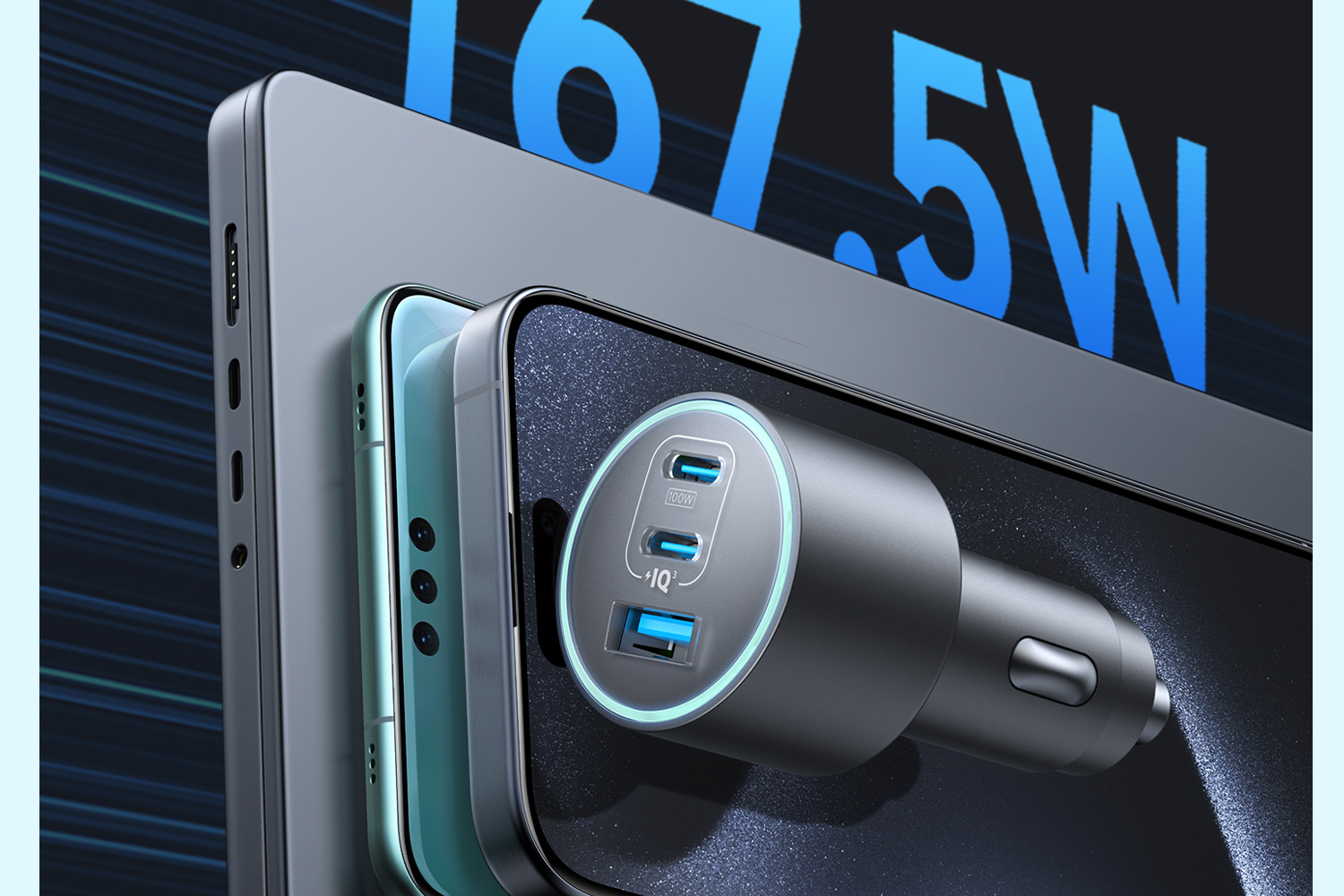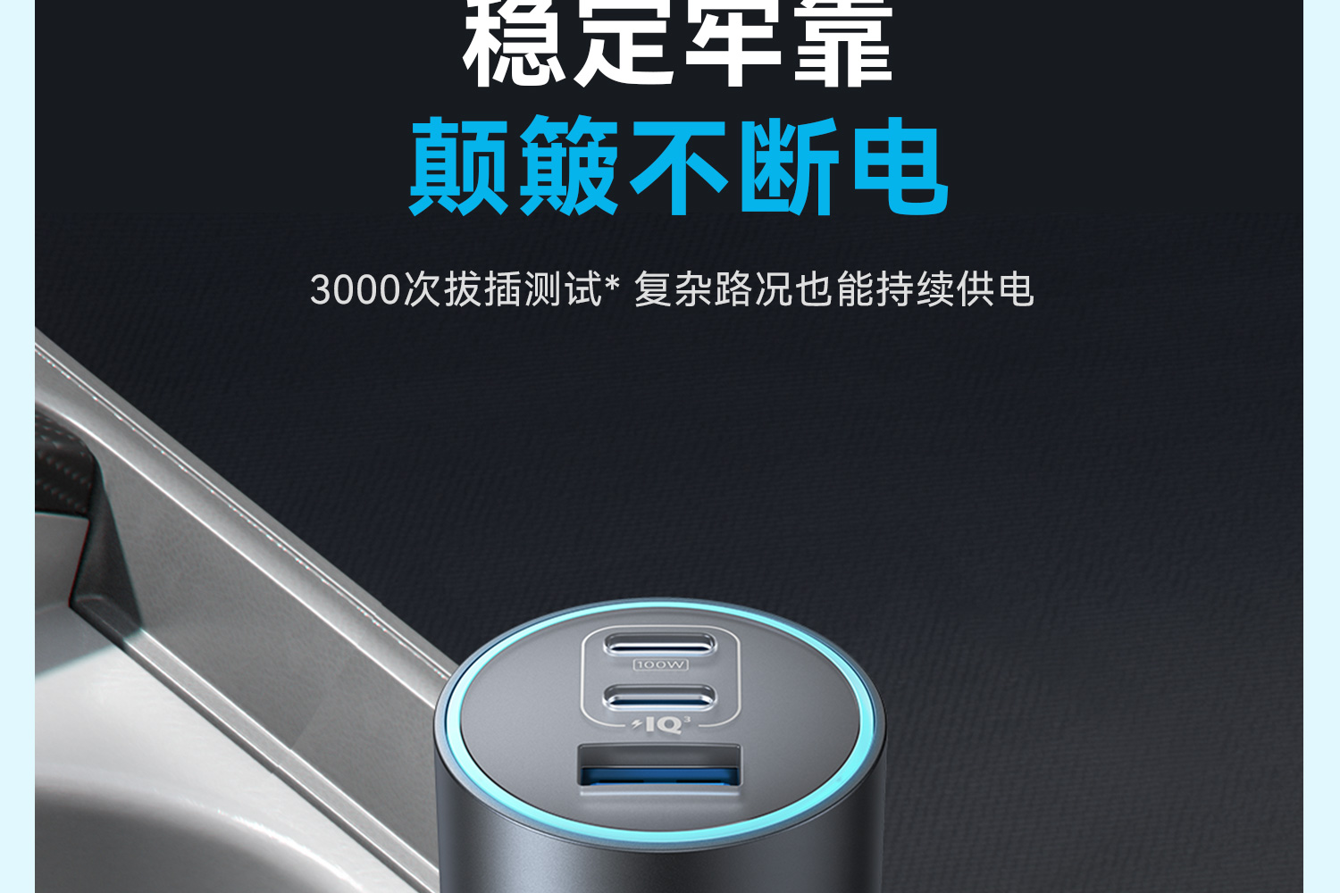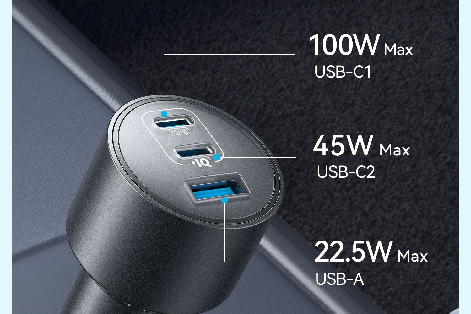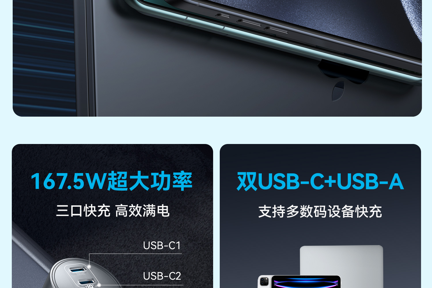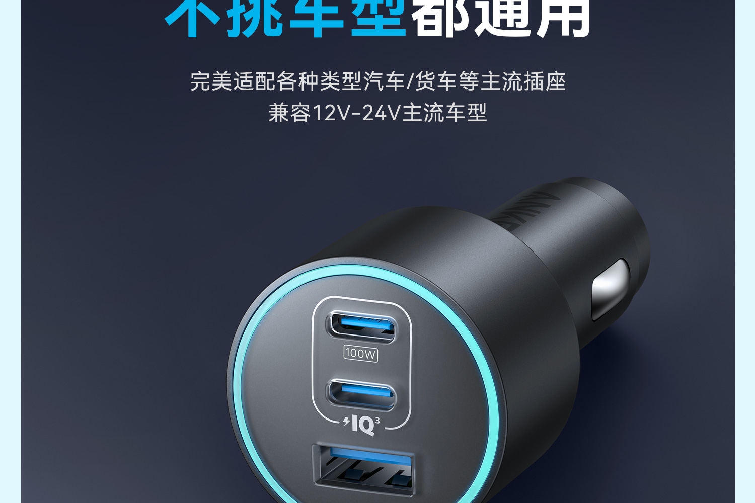 【热销】Anker安克167.5W车载充电器三口车充高效散热智能兼容多设备2C1A车载充电器 A2737