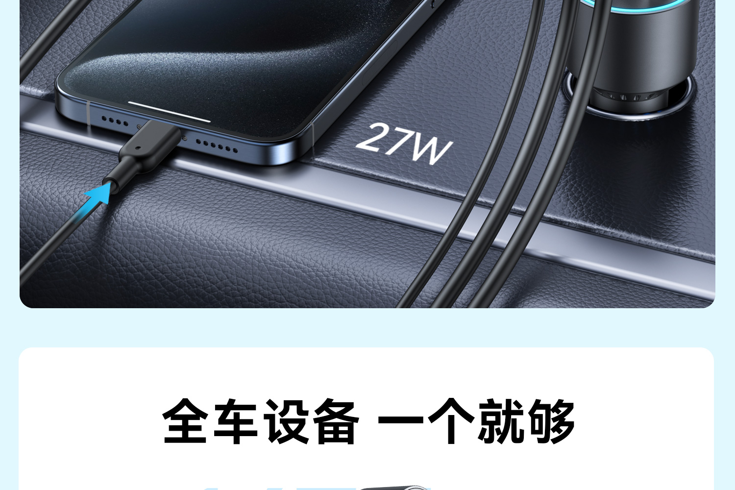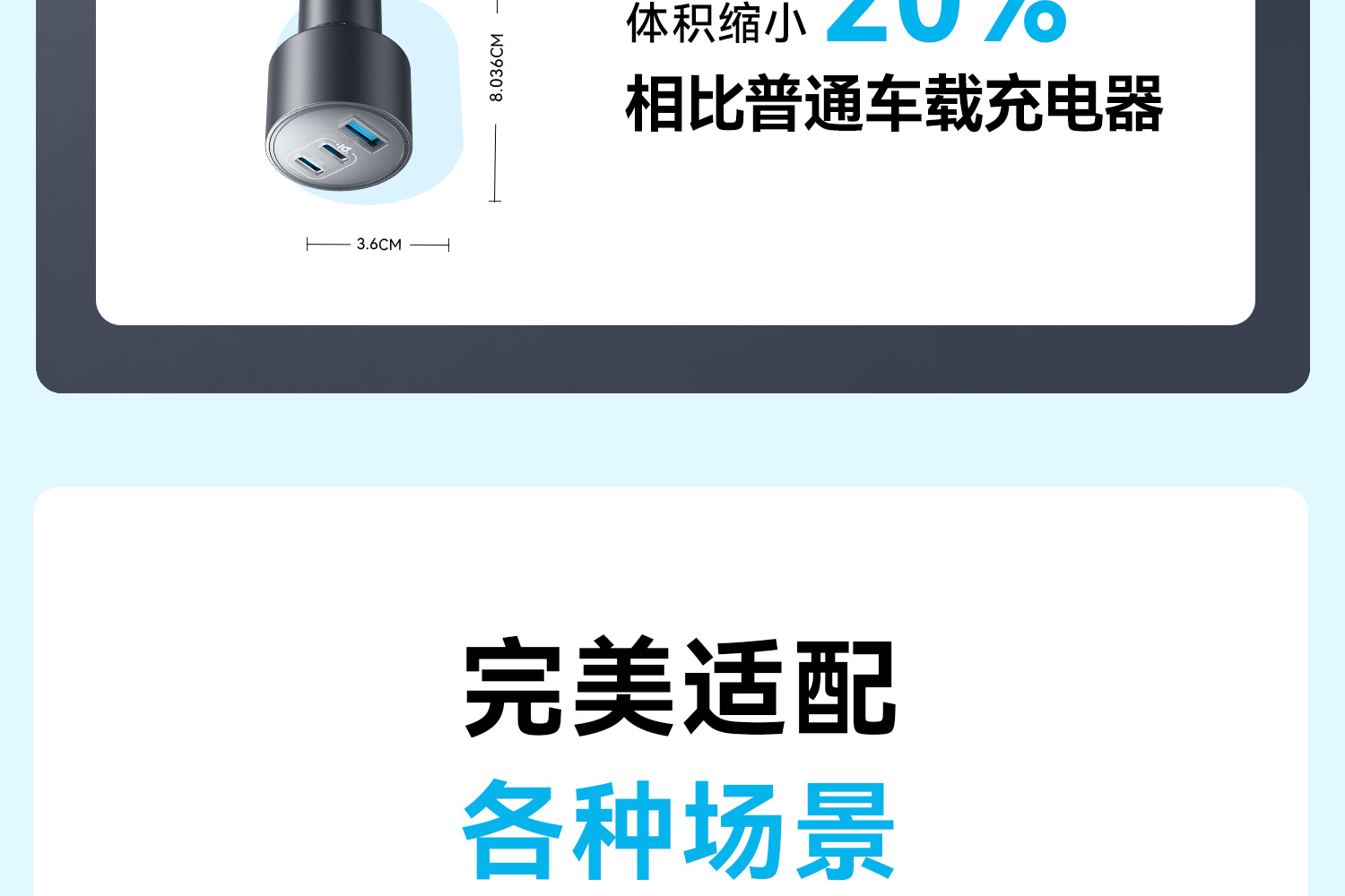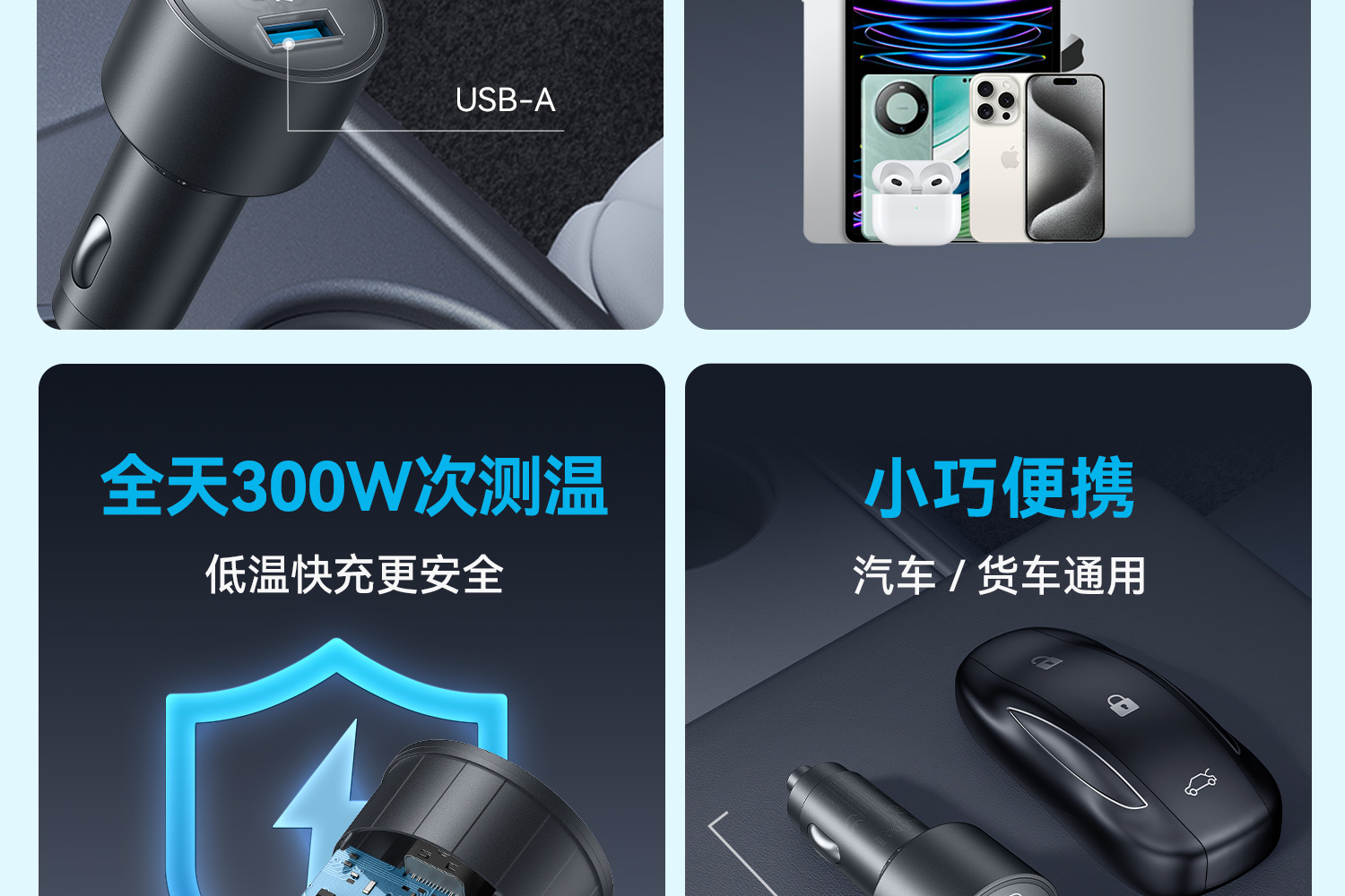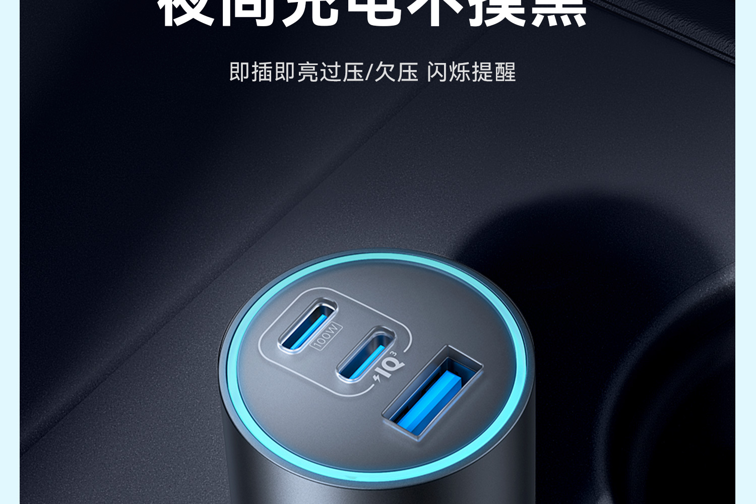【热销】Anker安克167.5W车载充电器三口车充高效散热智能兼容多设备2C1A车载充电器 A2737