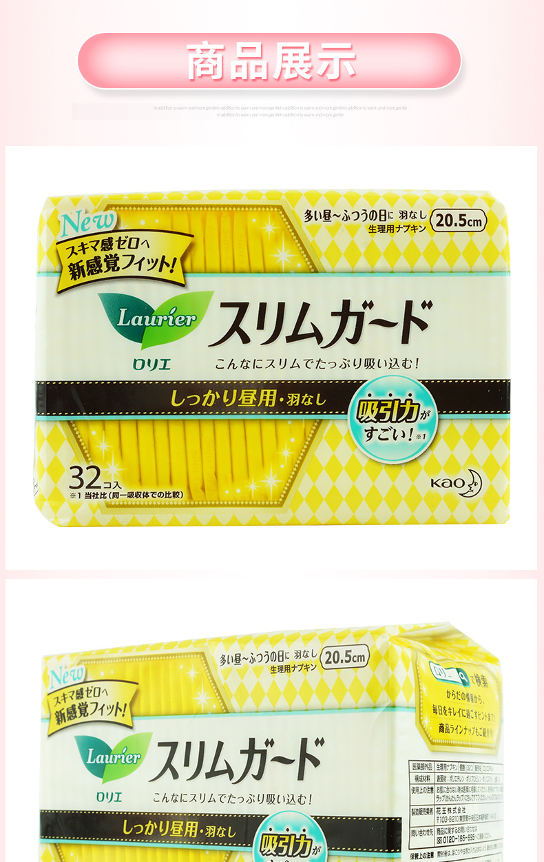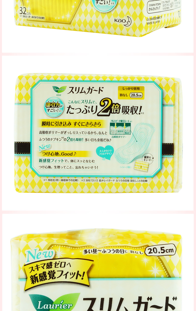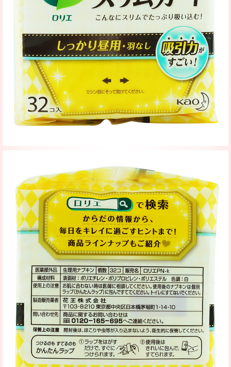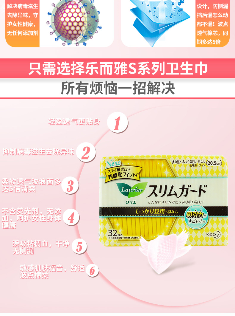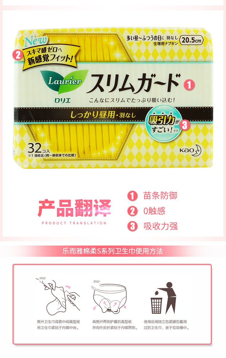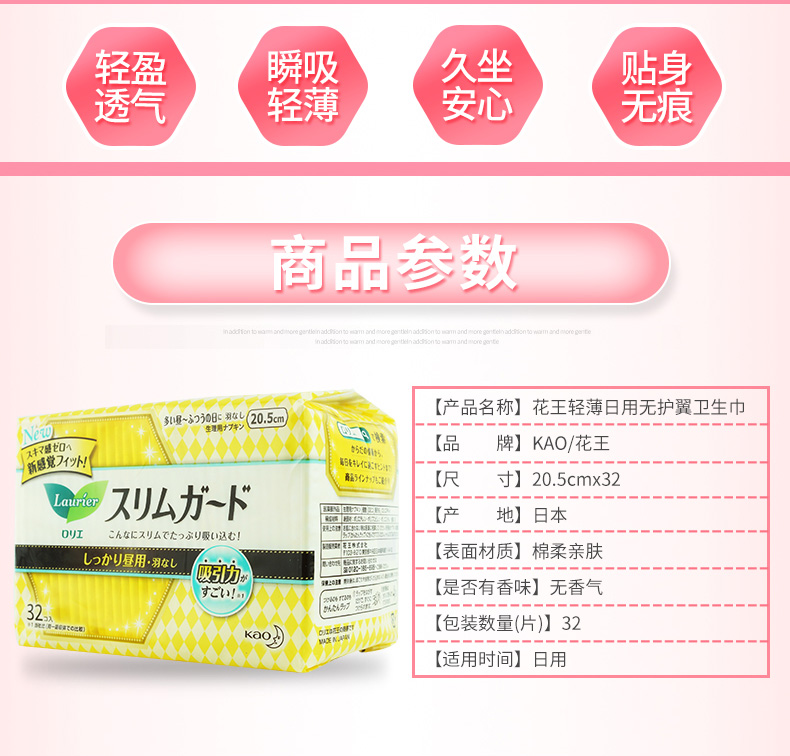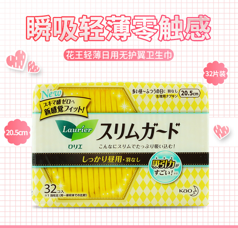 花王卫生巾进口乐而雅零触感日用20.5cm32片 1包