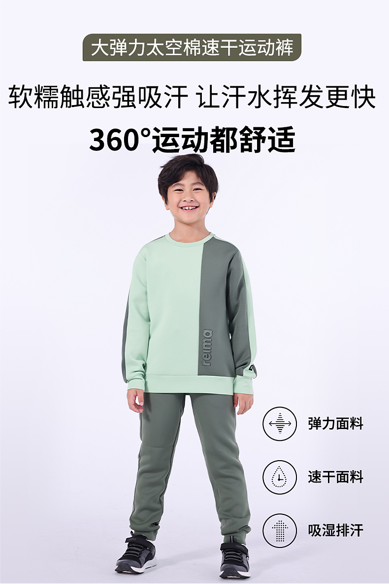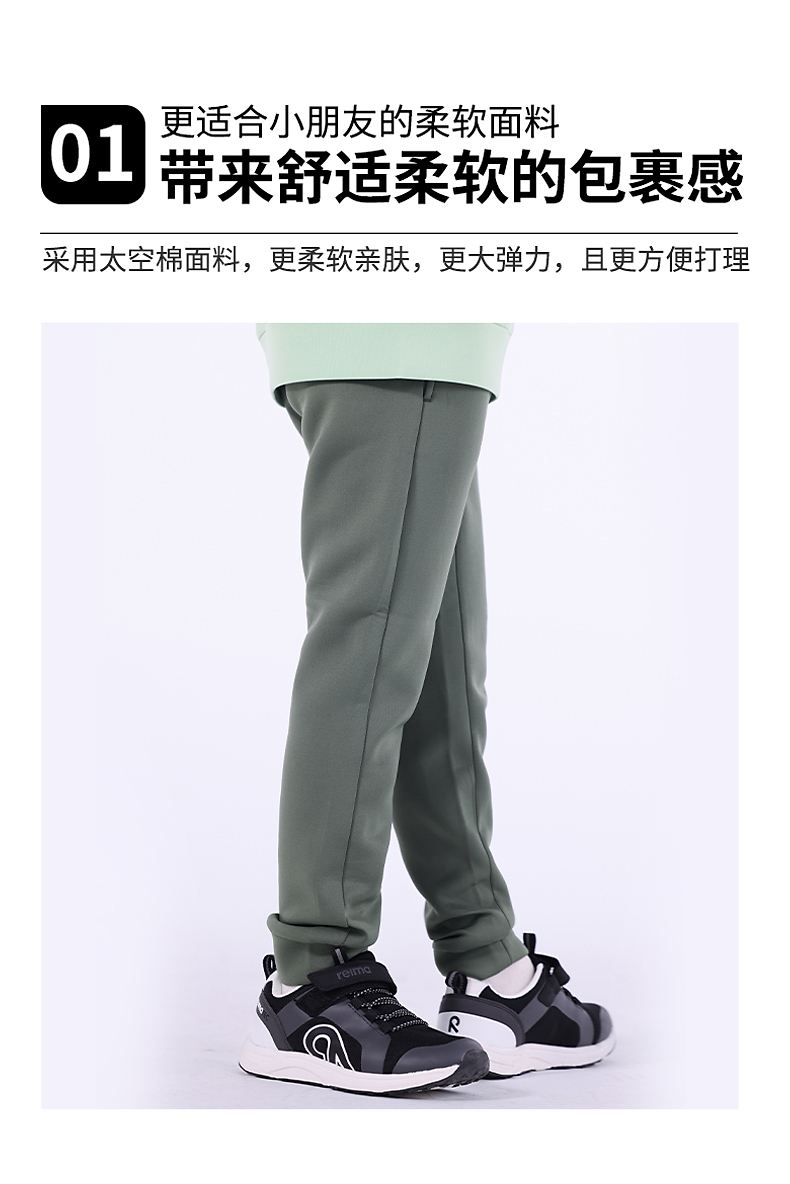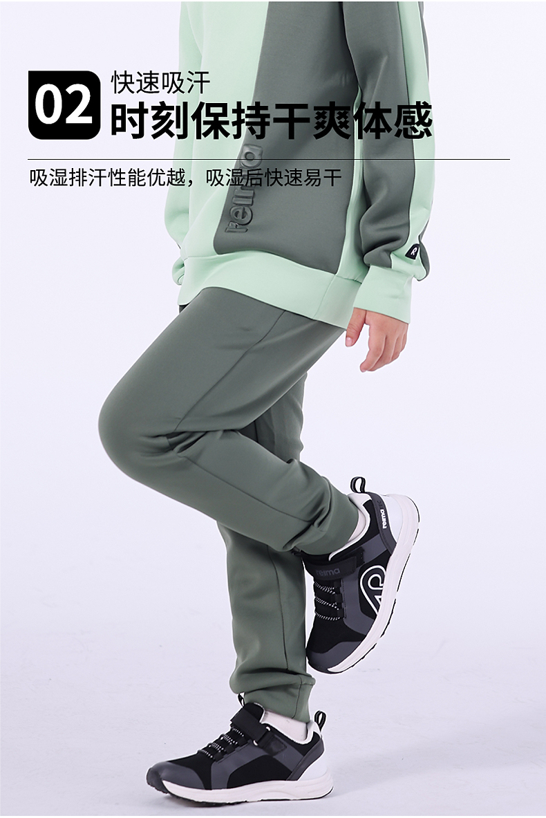 reima儿童大童吸湿速干束脚长裤子秋款太空棉弹力运动裤