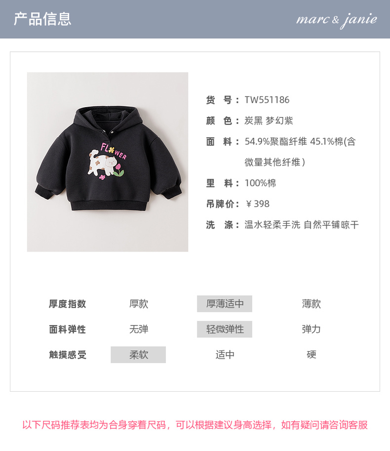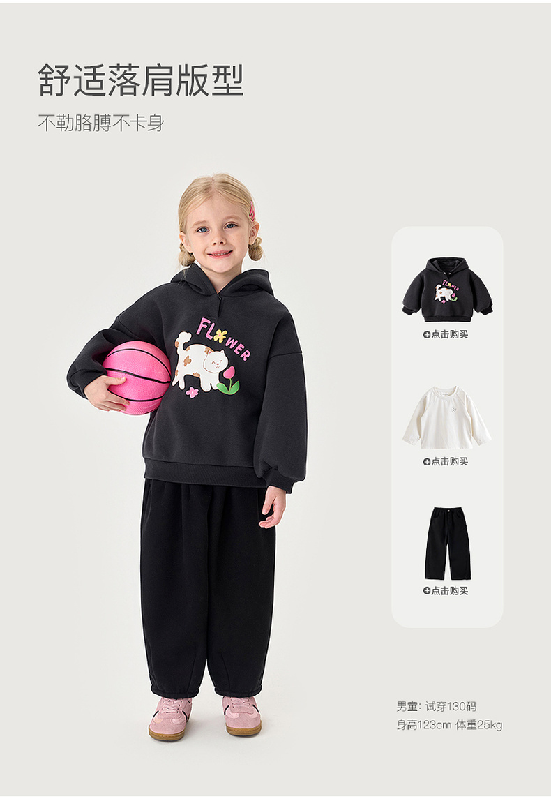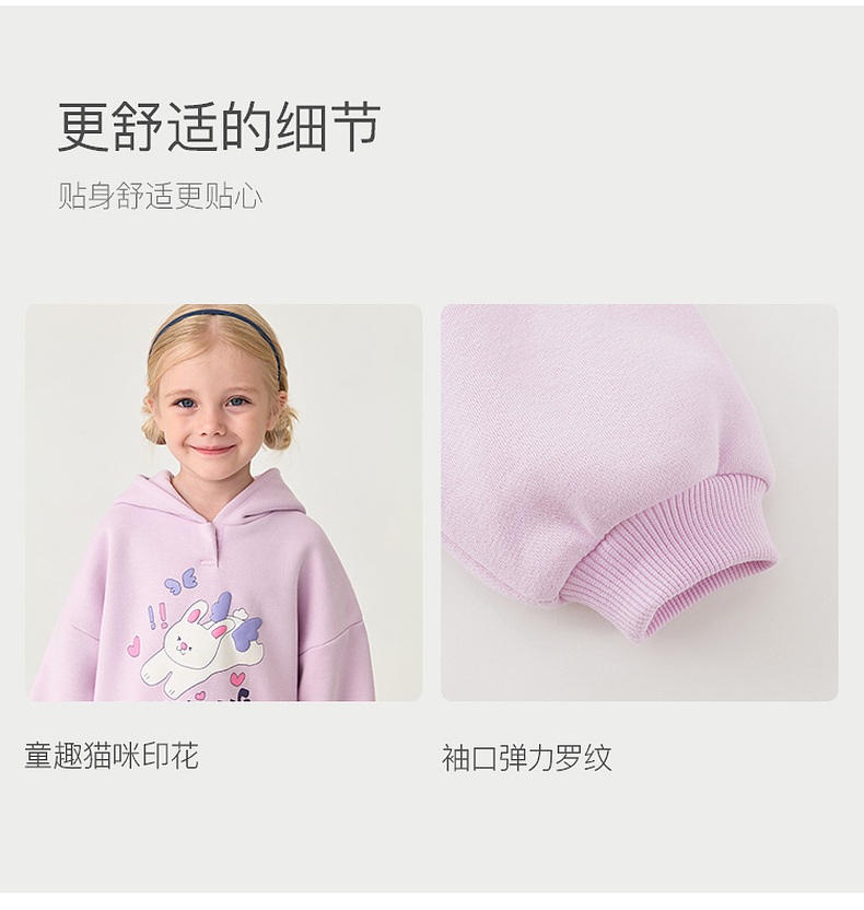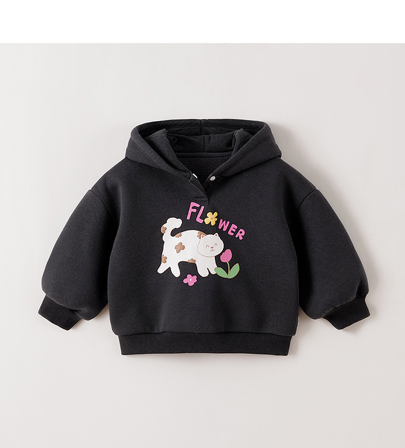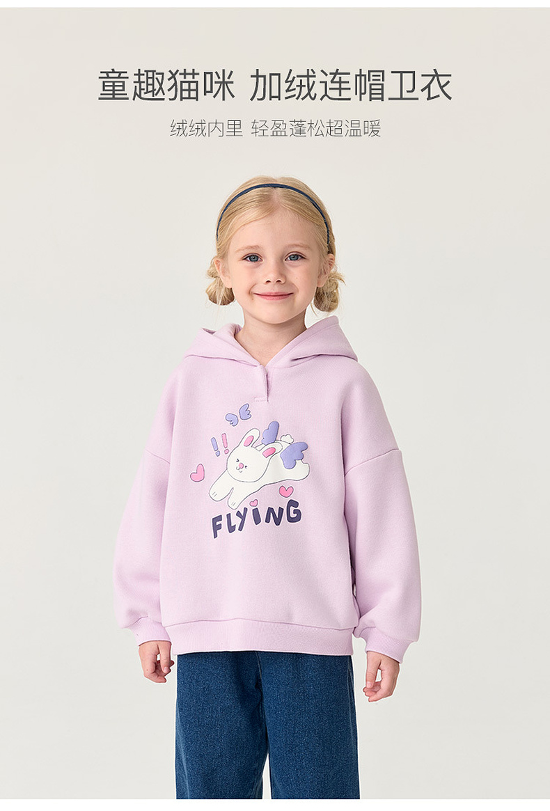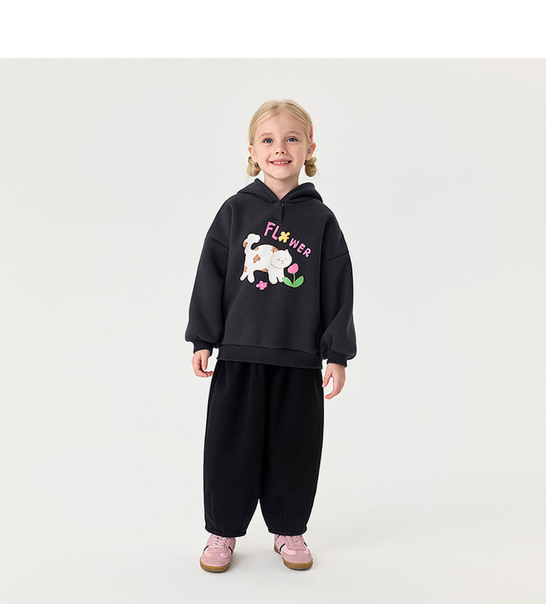 马克珍妮女童趣味猫咪加绒连帽卫衣2025年秋冬新款551186