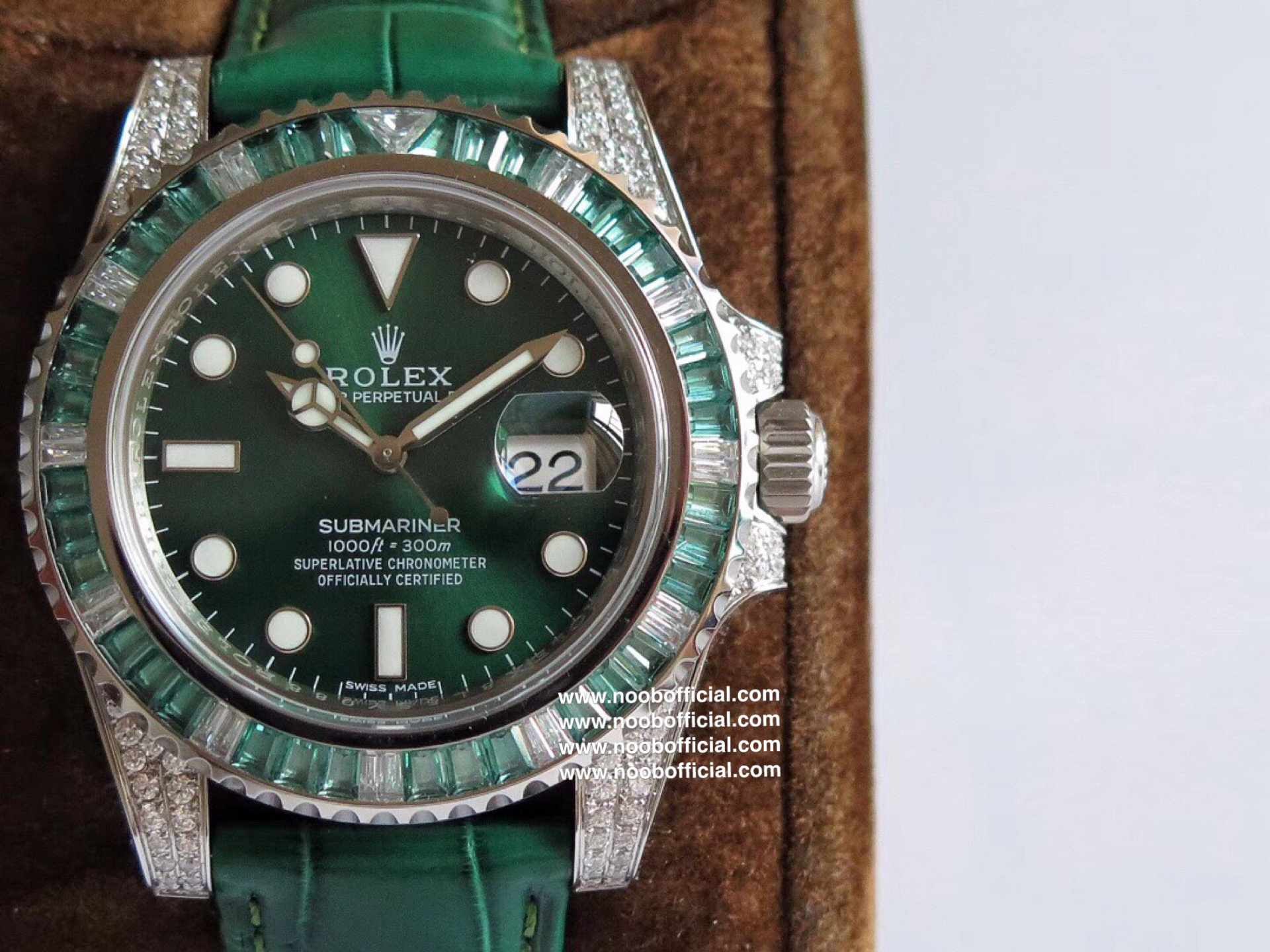 N厂欧洲订制版 绿钻彩圈 2836机和3135机到货,史上最精湛的绿彩钻腕表,和正品一致的定制级彩钻,纯手工独立镶嵌,三角钻石采用明亮式切割最接近正品的切割方式,N厂史上第二款欧洲高端彩钻圈产品。“奢华无法改变时光,但时光可以重新演绎新的奢华”N厂劳力士中真正的旗舰型副本“糖豆”,”绿钻“,副本劳力士中的皇帝版,全面升级为904L不锈钢,更加经久耐用,表圈改造为搭载真正高净度彩色宝石表圈,原厂水准,不损坏任何原始功能和旋转方式。彩色宝石副本的标杆腕表。N厂出品
