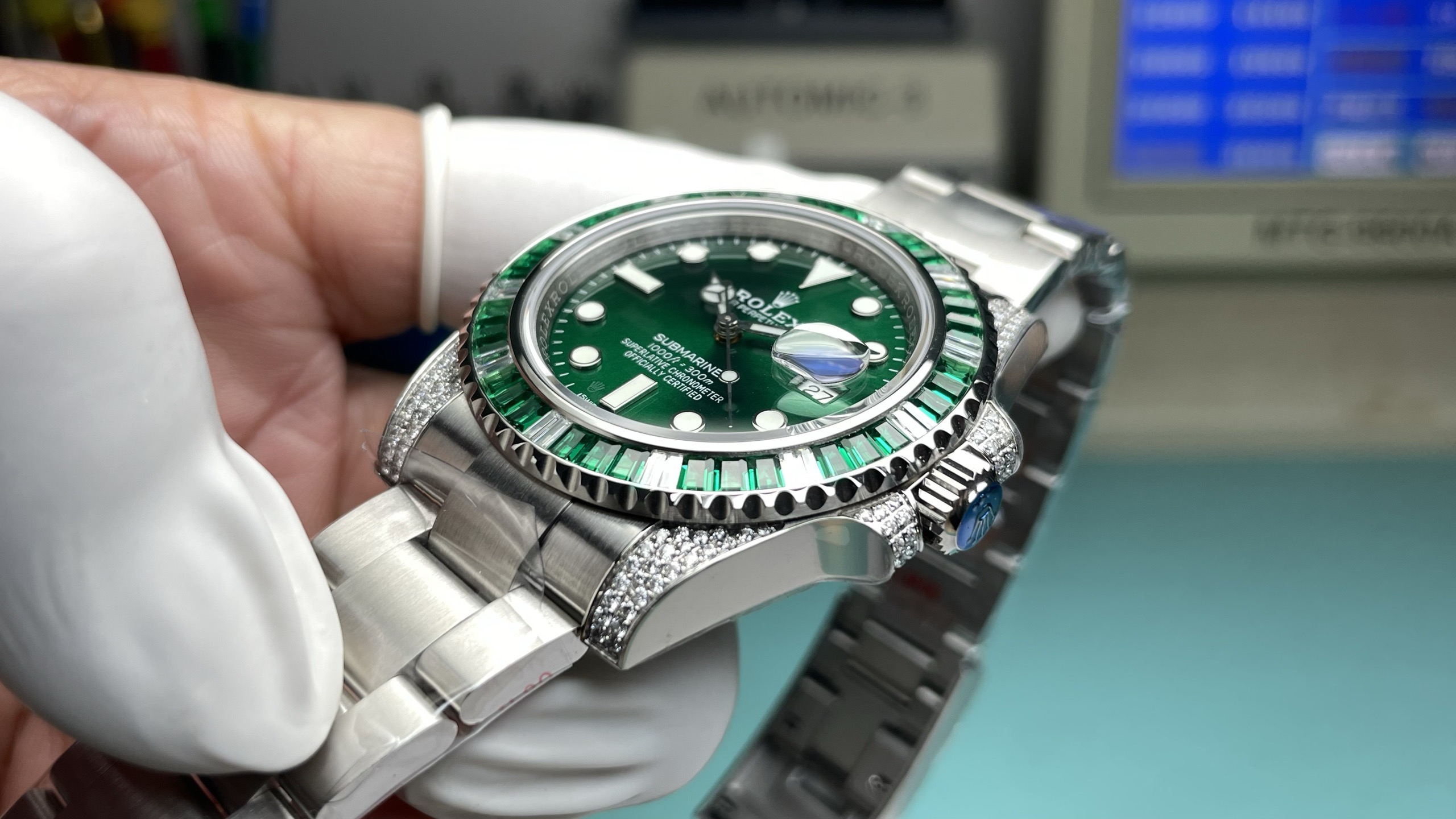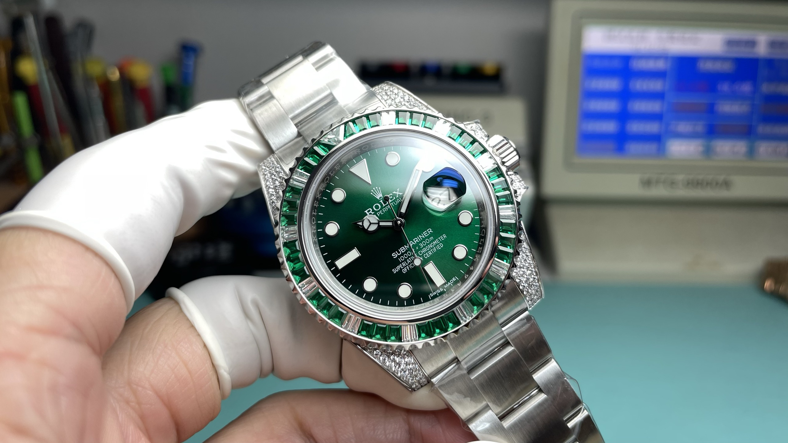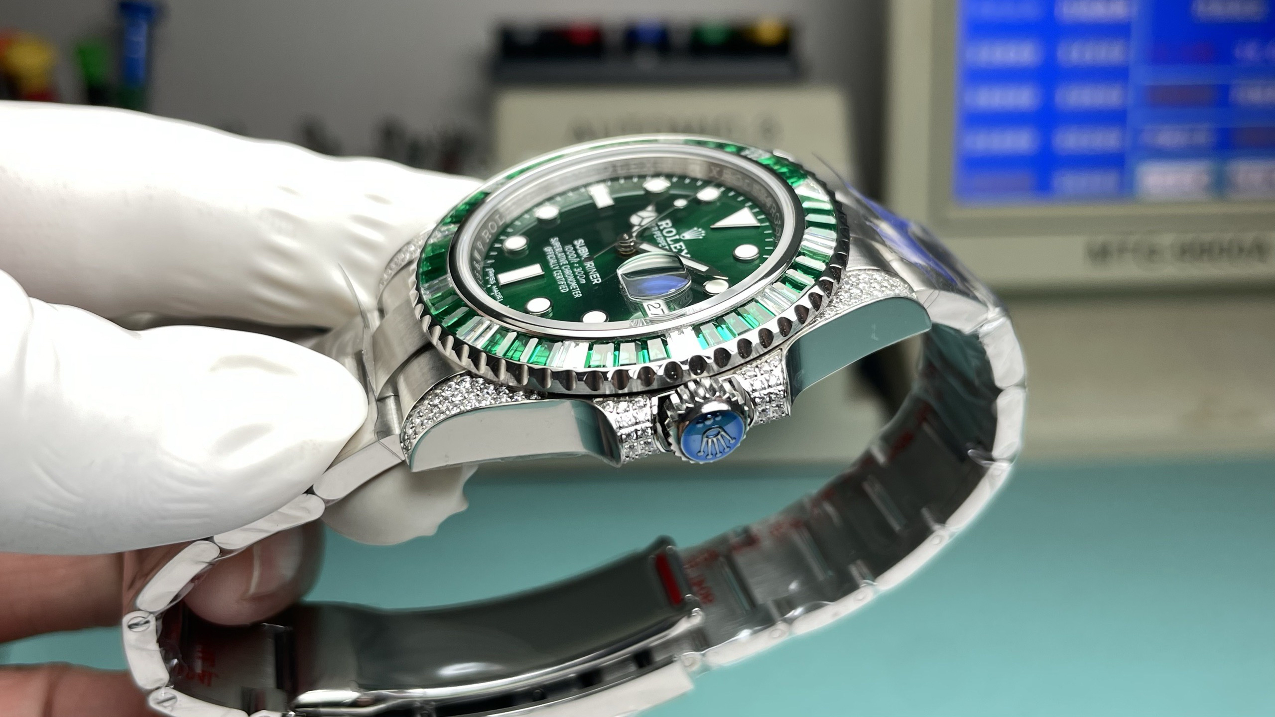 Noob official➕正品original原版开模的super copy乃精品中的精品劳li士欧洲订制版绿钻彩圈潜航者绿水鬼,定制级彩钻,纯手工独立镶嵌,精钢表带,密底,男士腕表,自动机械机芯❕