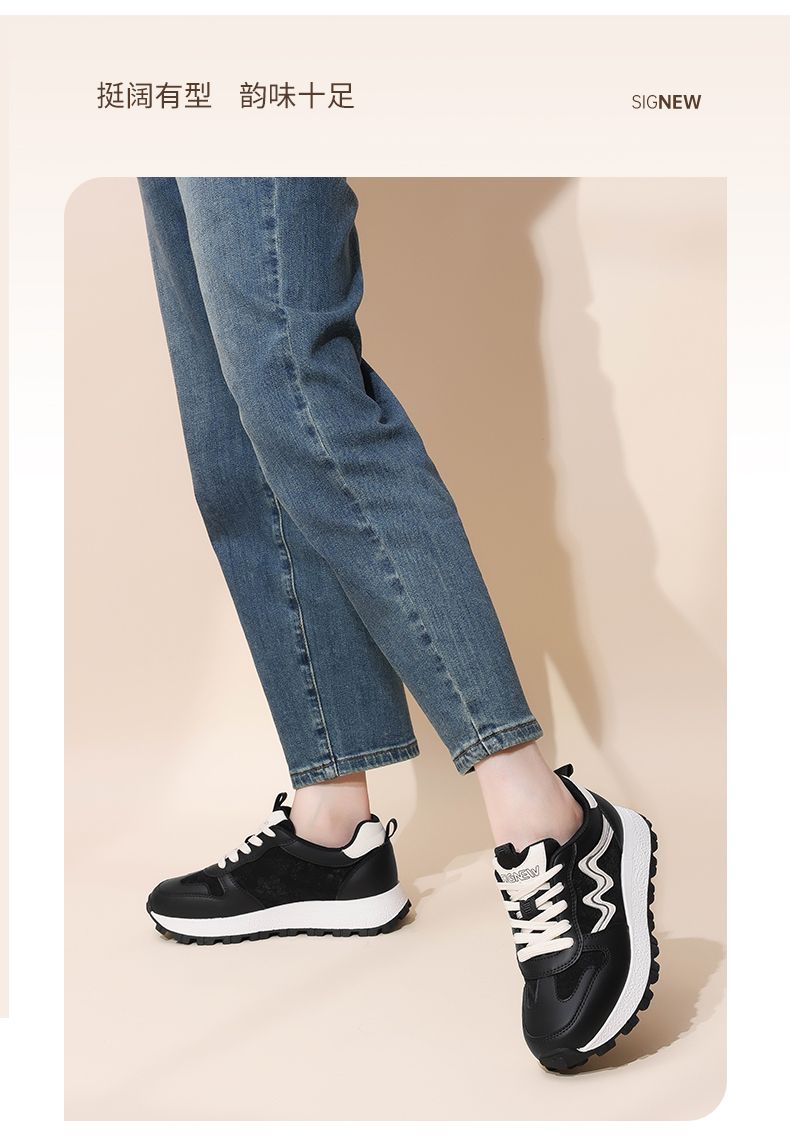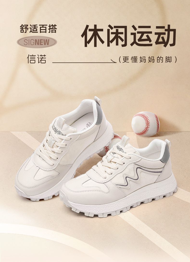 信诺新中式复古休闲鞋2024新款运动厚底舒适软底透气中年女德训鞋Q5063-2