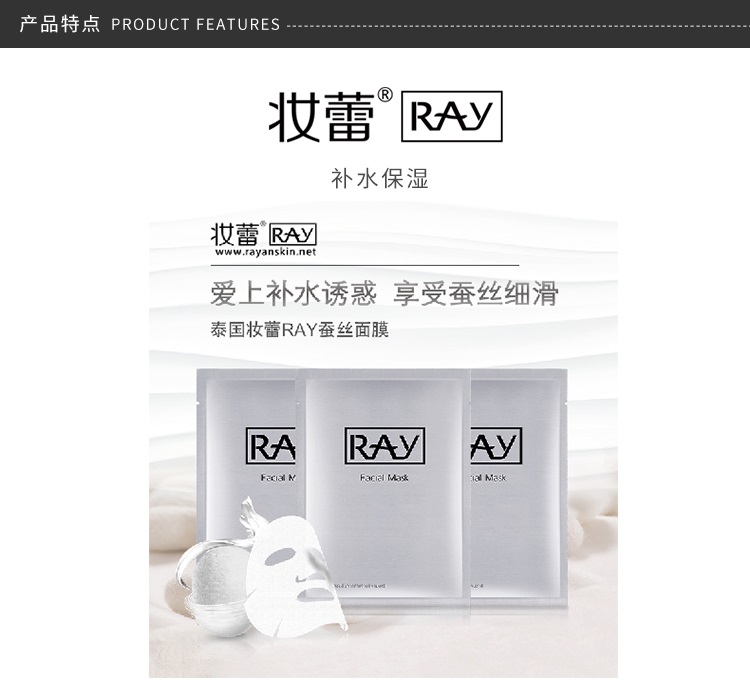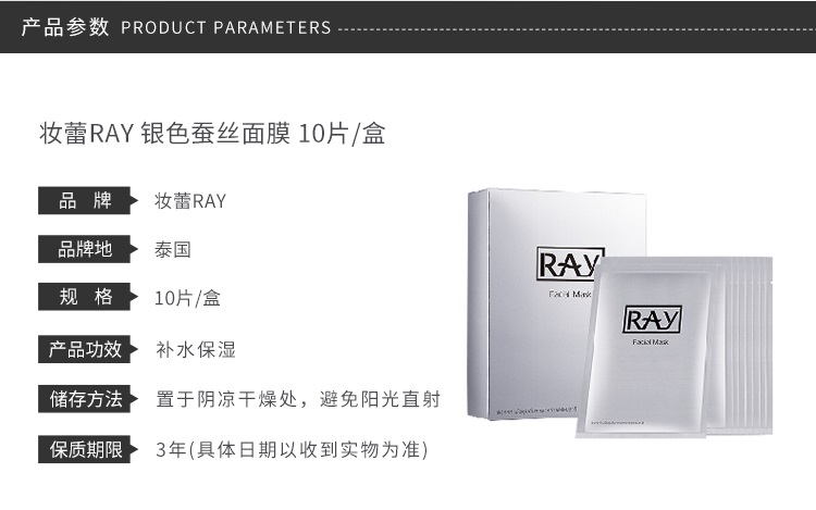 【一般贸易】泰国妆蕾ray 银色蚕丝面膜 35ml*10片/盒