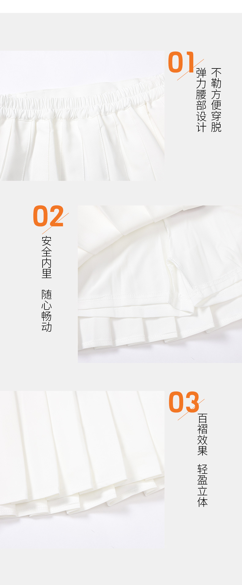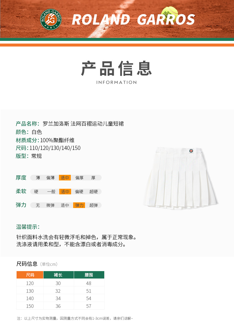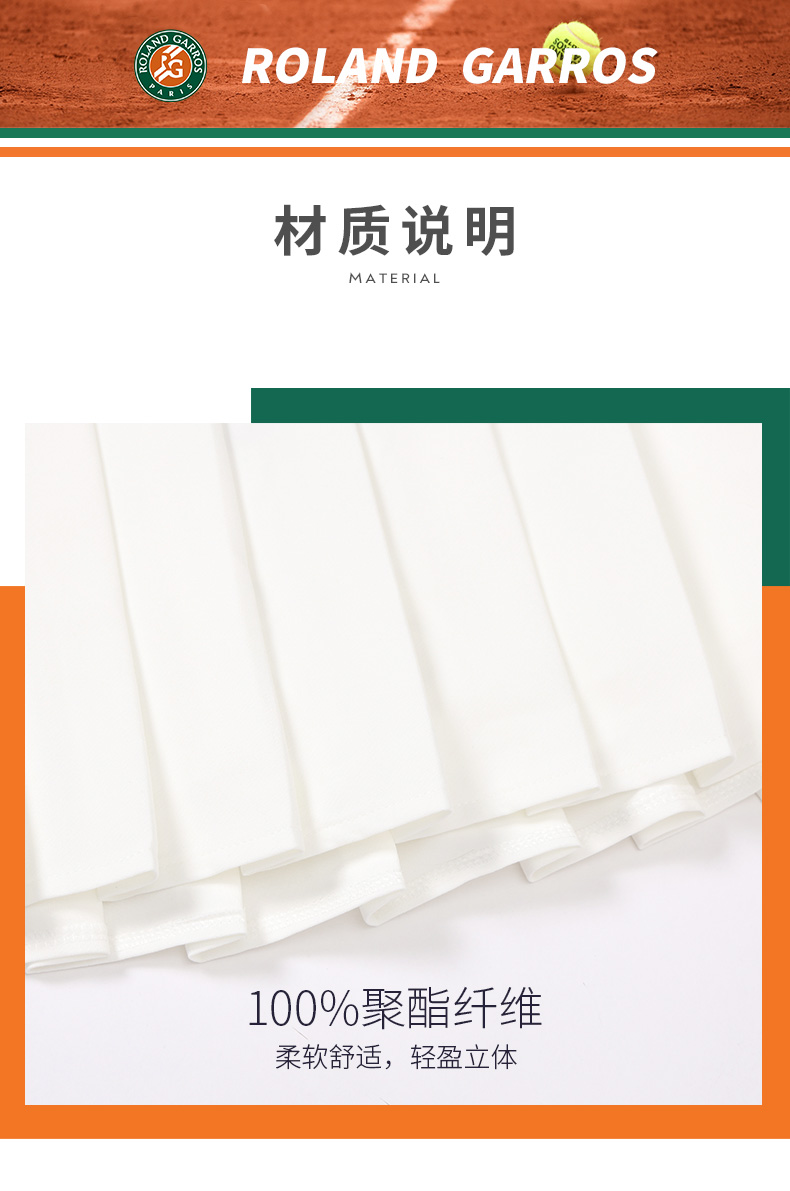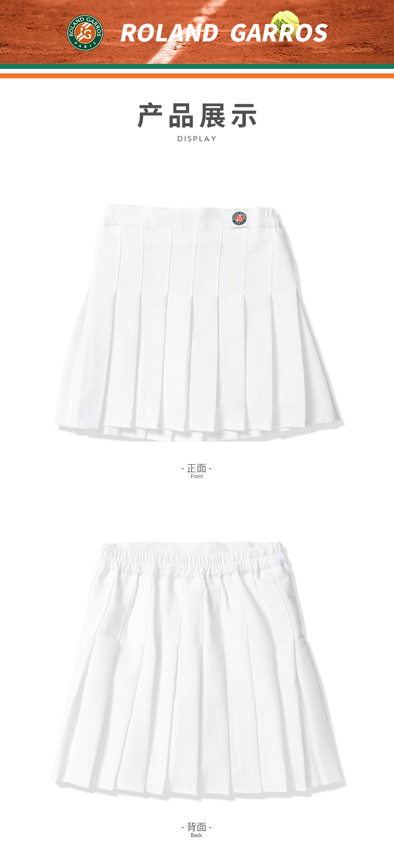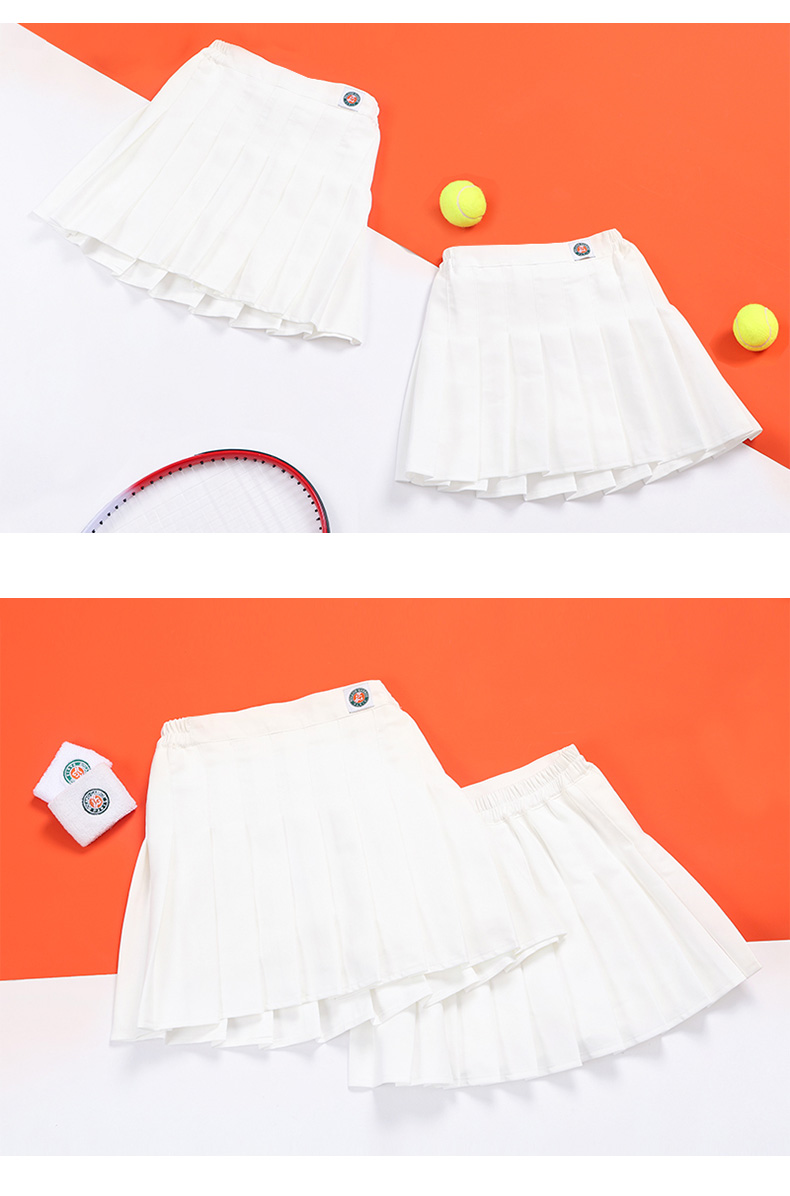 罗兰加洛斯法网新款女童半身裙网球裙儿童白色透气运动大童百褶裙