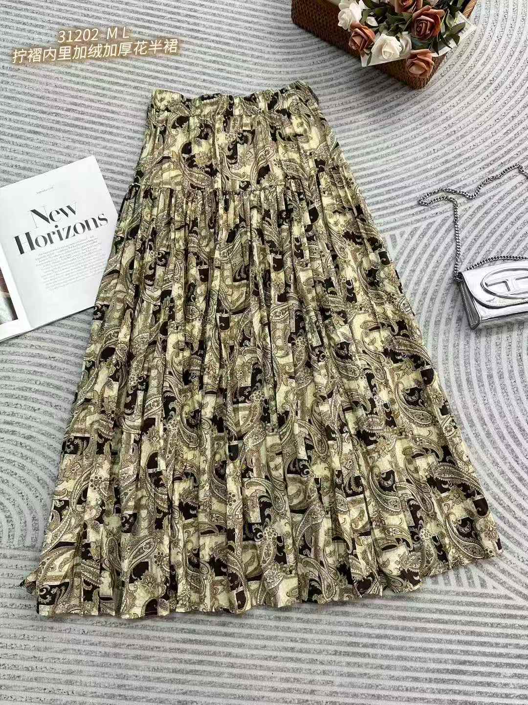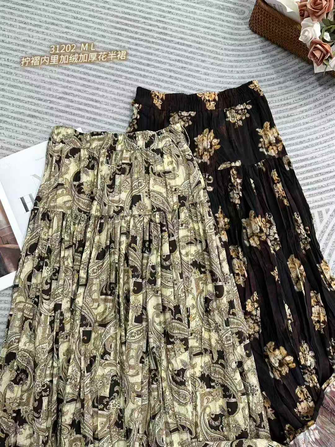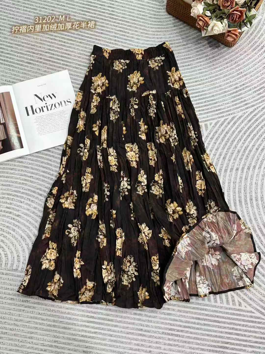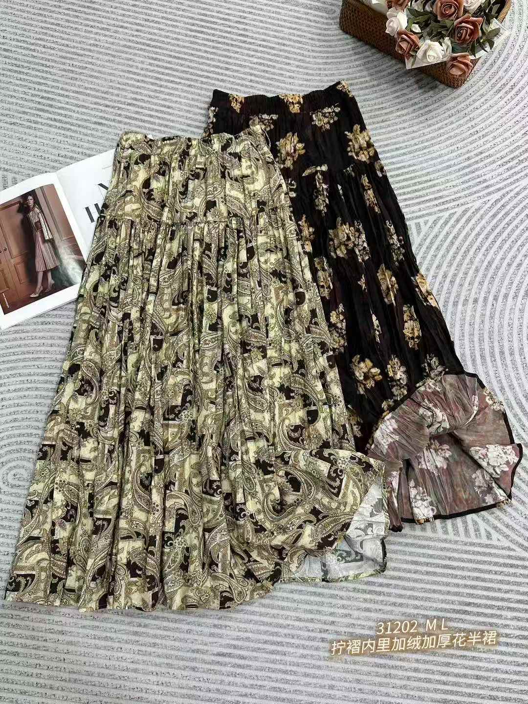 G5BQ31202#拧褶内里加绒加厚花半裙