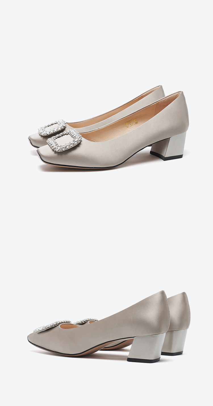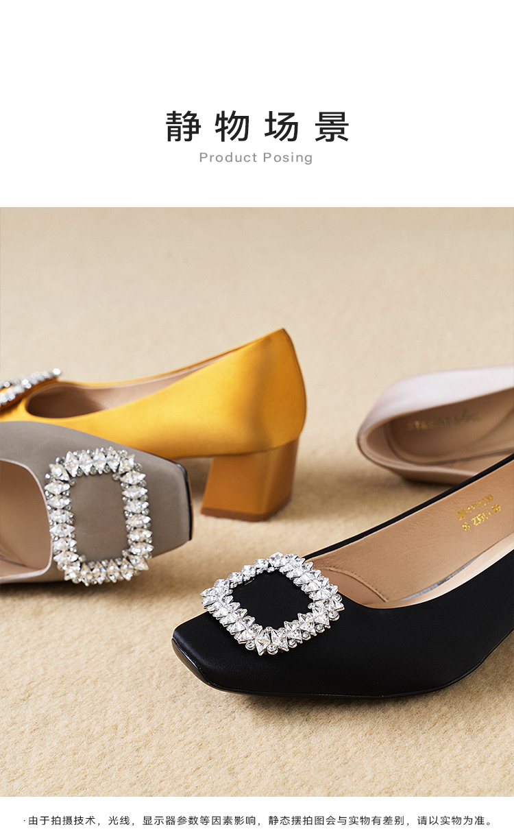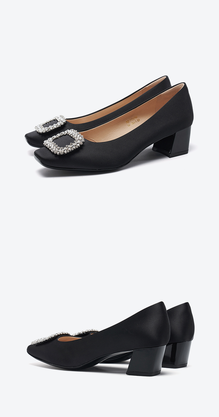 【小方镜系列】星期六26春新款优雅风缎面晶扣中低跟单鞋SSE1111030/SSE1111035