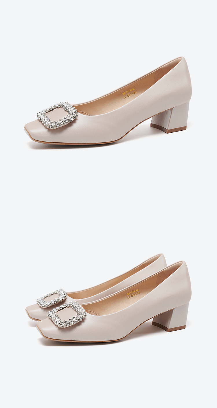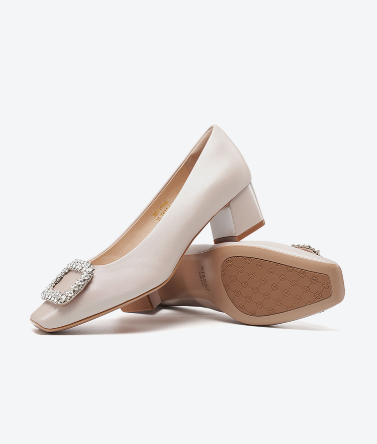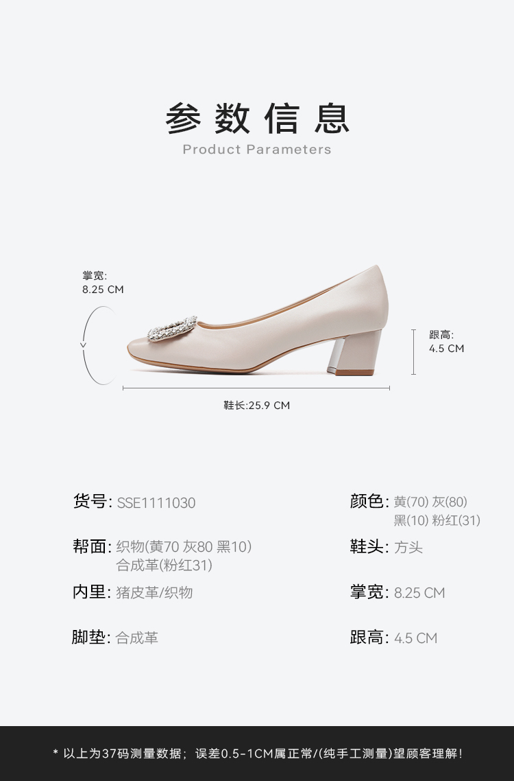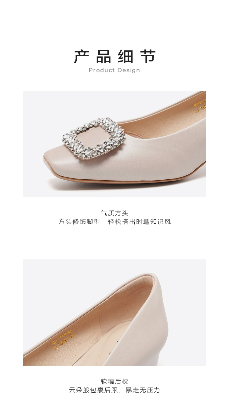 【小方镜系列】星期六26春新款优雅风缎面晶扣中低跟单鞋SSE1111030/SSE1111035